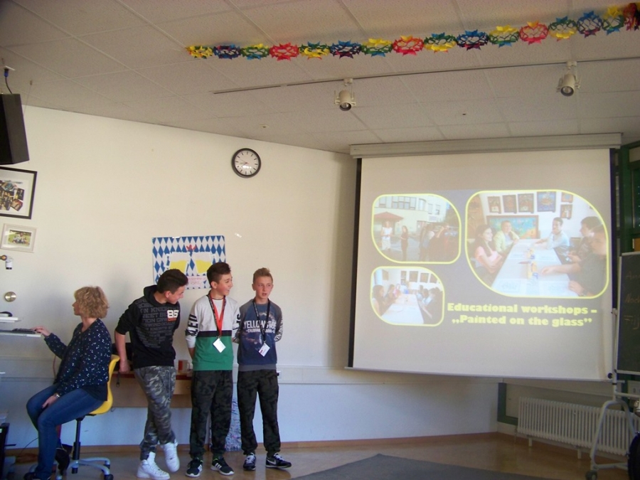 Kolejne dni rozpoczynały się od przedstawienia produktów działań realizowanych w ramach projektu w każdej ze szkół i wymiany doświadczeń z tym związanych. Produkty te zaprezentowane zostały w formie sprawozdań, tekstów czy krótkich filmów, w których młodzież przybliżała swoją ojczyznę, region i szkołę.