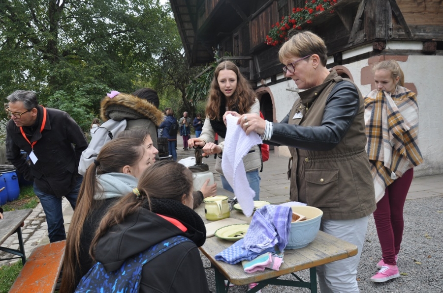 Na pierwszą wycieczkę wybraliśmy się do miejscowości Gutach, gdzie zwiedzaliśmy szwarcwaldzki skansen, w którego centrum znajdują się budynki pochodzące z 1612 roku. Wsłuchując się w wypowiedzi przewodnika, mogliśmy dowiedzieć się, jak ludzie żyli i pracowali w tym regionie ponad 400 lat temu. Kolejnego dnia wszyscy udali się na całodniową wycieczkę do Stuttgartu, gdzie zwiedzaliśmy Muzeum Mercedesa, ażeby poznać historię przemysłu motoryzacyjnego Niemiec oraz zobaczyć najstarsze i najnowsze modele samochodów tej marki. Ponadto rozwiązywaliśmy quiz przygotowany przez niemieckich nauczycieli. Nowych wrażeń dostarczyła nam również wycieczka do archeologicznego skansenu nad Jeziorem Bodeńskim w Unteruhldingen, składającym się z rekonstrukcji domów na palach sięgających czasów epoki kamienia i brązu. Z Unteruhldingen przeprawiliśmy się promem do Konstancji. Niestety mglista pogoda nie pozwoliła nam na podziwianie Alp. W Konstancji uczniowie zostali podzieleni na międzynarodowe grupy, w których poznawali ruchliwe uliczki tego uniwersyteckiego miasta. Podczas wycieczek był również czas na rozrywkę (tor saneczkowy i park trampolin). Ostatni dzień pobytu upłynął na obserwowaniu lekcji w szkole, dokonaniu podsumowań i wymianie wrażeń. Wieczór poświęcono ceremonii pożegnalnej połączonej z dyskoteką pod hasłem „Oktoberfest”, podczas której mogliśmy podziwiać uczniów i nauczycieli ubranych w tradycyjne ludowe stroje zwane „dirndl” i „lederhosen”.