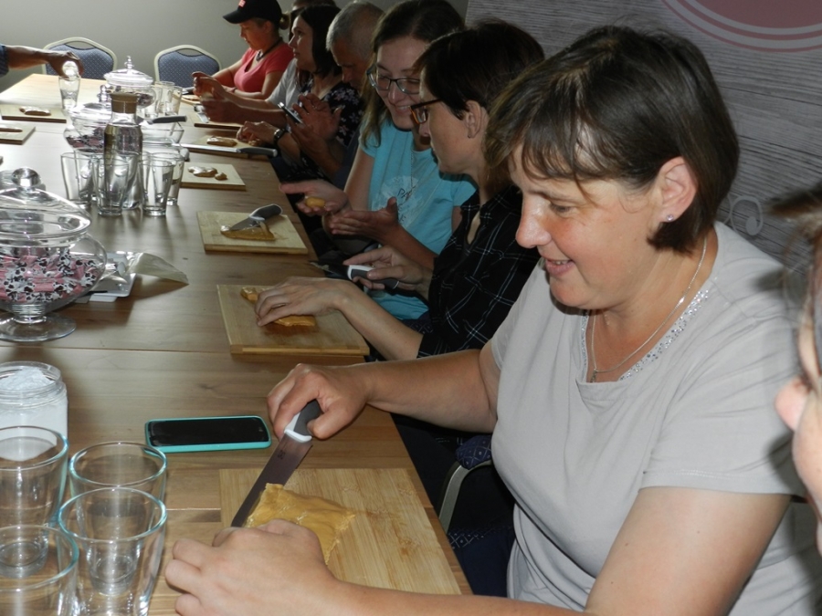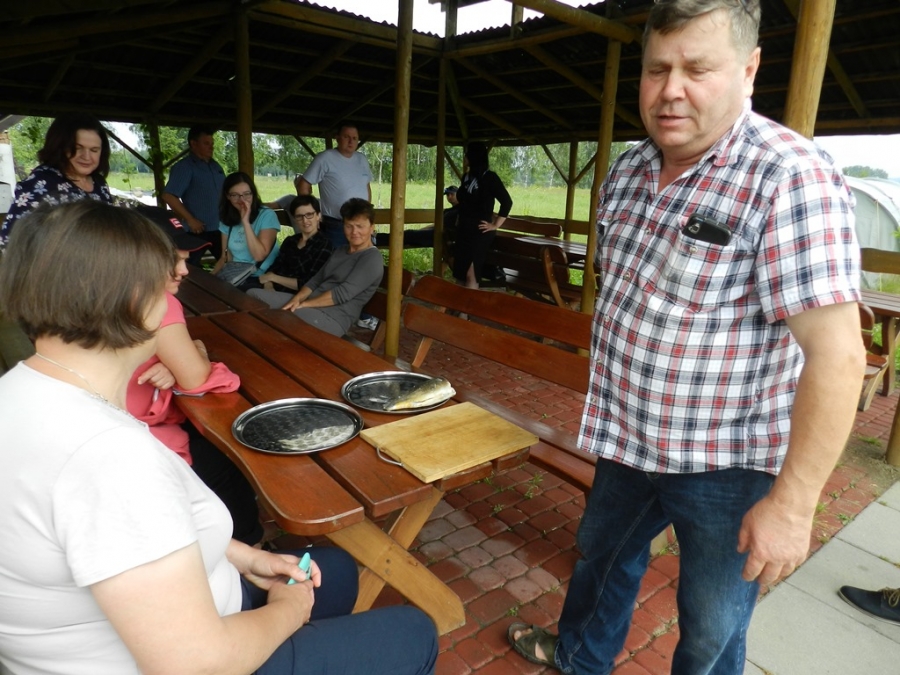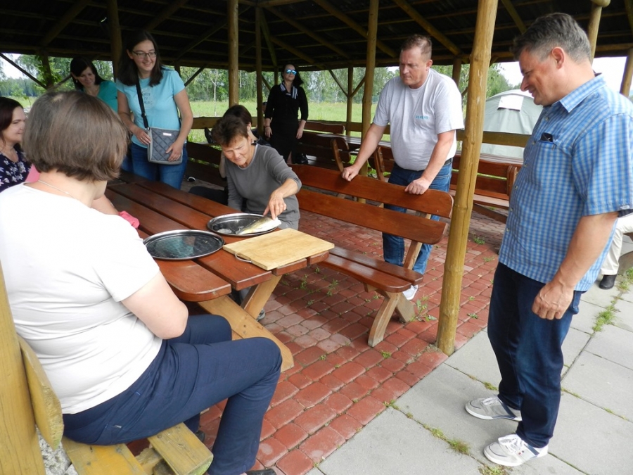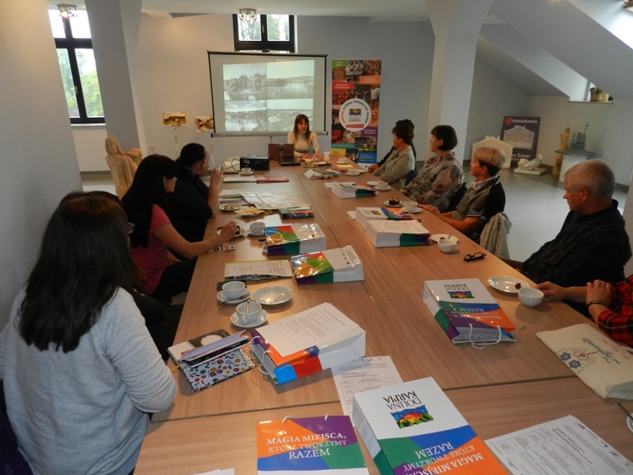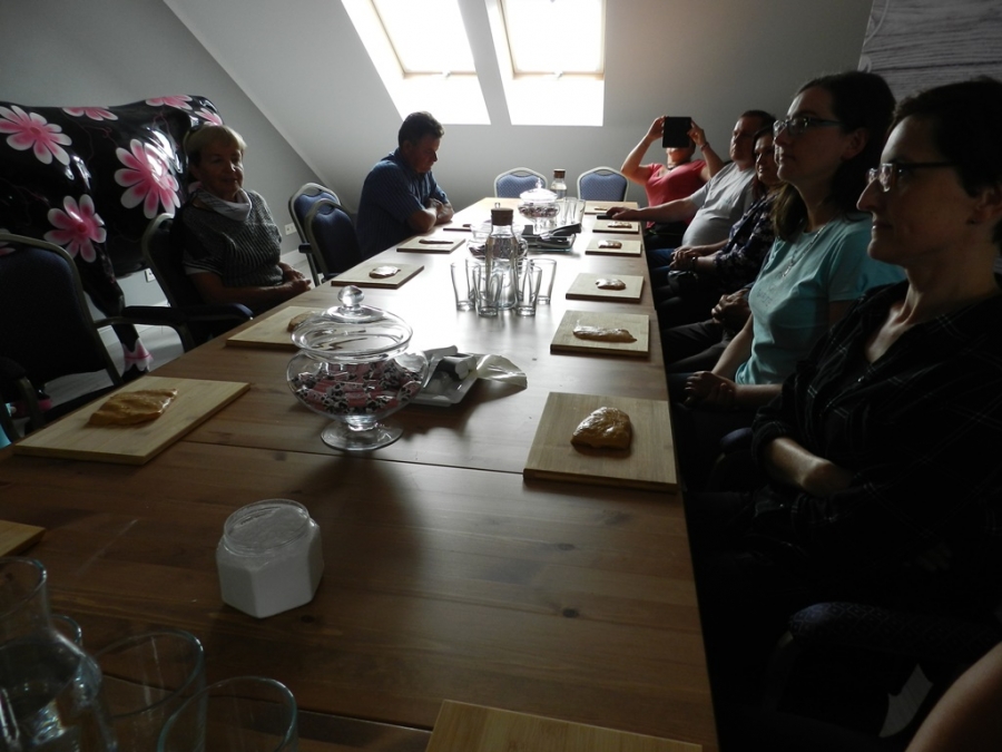 Zagórzanie w praktyce mogli się przekonać jakie korzyści dla społeczności lokalnej i promocji regionu przynosi marka miejsca, jak i kto może ją stworzyć, na jakie przeszkody można napotkać „po drodze”, a przede wszystkim czy to się naprawdę opłaca. Tworzenie uznanej już dzisiaj marki „Dolina Karpia” w szczegółach przedstawiła swoim gościom Anna Świątek ze stowarzyszenia o tej samej nazwie – inicjatora i koordynatora „markowych” działań. Mieszkańcy Gminy Mszana Dolna odwiedzili również Izbę Regionalną w Osieku działająca w ramach Ekomuzeum Doliny Karpia – miejscowej atrakcji turystyczno – edukacyjnej. Z zachwytem obejrzeli tam bogatą kolekcję przedmiotów użytkowych, rękodzieła i sztuki związanych m. in. z hodowlą karpia osieckiego oraz przedmiotów związanych z kulturą materialną wsi i najbliższych okolic. Spotkali się również z producentem miodu z „Pasieki na Zastawiu” – użytkownikiem Znaku Promocyjnego Dolina Karpia. Podczas ciekawej prelekcji skosztowali słodkiego efektu pracy pszczół i zgłębili jego właściwości. Zagórzanie skorzystali również z gościny Restauracji REVEL (obiekt Ekomuzeum Doliny Karpia) – użytkownika znaku promocyjnego Dolina Karpia. Smakując obiad przygotowany w oparciu o produkty ze znakiem promocyjnym Dolina Karpia uczestnicy mieli również okazję zapoznać się z usługą, która otrzymała znak promocyjny Dolina Karolina „MENU Doliny Karpia”. Degustowano również „Chleb Revel z Doliny Karpia” – produkt ze znakiem promocyjnym Dolina Karpia. Wspaniałym doświadczeniem – fascynującą podróżą do świata pszczół - okazała się wizyta w gospodarstwie pasiecznym „Pasieka u Wojtka” – obiektu Ekumuzeum Dolina Karpia, potencjalnego użytkownika Znaku Promocyjnego Dolina Karpia. Swoją osobowością i fachową wiedzą zauroczył wszystkich sympatyczny właściciel, Wojciech. Kolejnym obiektem Ekomuzeum Doliny Karpia posiadającym Znak Promocyjny Doliny Karpia odwiedzonym przez mieszkańców Gminy Mszana Dolna była przetwórnia ryb „Skarby Doliny Karpia”, w której pokaz wędzenia karpia połączony był z jego degustacją. Podczas pobytu w Zatorze goście z Beskidu Wyspowego przekonali się, że znak promocyjny może otrzymać również firma działająca w innej branży niż rybołówstwo. W Cukierni „URBAŃSCY” w Zatorze (potencjalny użytkownik Znaku Promocyjnego Dolina Karpia) uczestnicząc w krótkich warsztatach wysłuchali prelekcji na temat procesu technologicznego „Krówki Zatorskiej”. Ich podniebienia osłodziła krówka i lody, wytwarzane na miejscu z lokalnych surowców. Prawdziwym zaskoczeniem dla gości z Beskidu Wyspowego był zakres działania spółdzielni socjalnej działającej w ramach Inkubatora przetwórstwa lokalnego „Smaki Gościńca”, która oprócz produktów wytwarzanych na sprzedaż świadczy również usługi dla lokalnej społeczności np. udostępnienie pomieszczeń czy tłoczenia soku lub wytwarzanie pierogów wedle wymogów Sanepidu. Przysłowiową wisienką na torcie, a przede wszystkim wspaniałą ucztą dla artystycznych zmysłów Zagórzan, była wizyta w Galerii Produktu Lokalnego w Stryszowie. Prawdziwa feeria barw i różnorodność prezentowanych wyrobów sprawiły, że trudno było się pożegnać bez zakupu kilku drobiazgów.