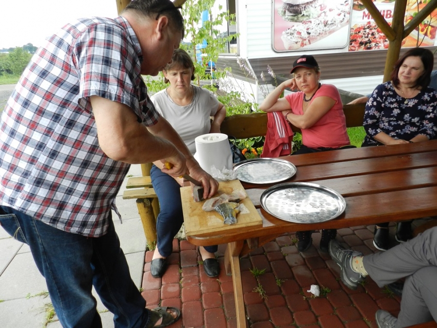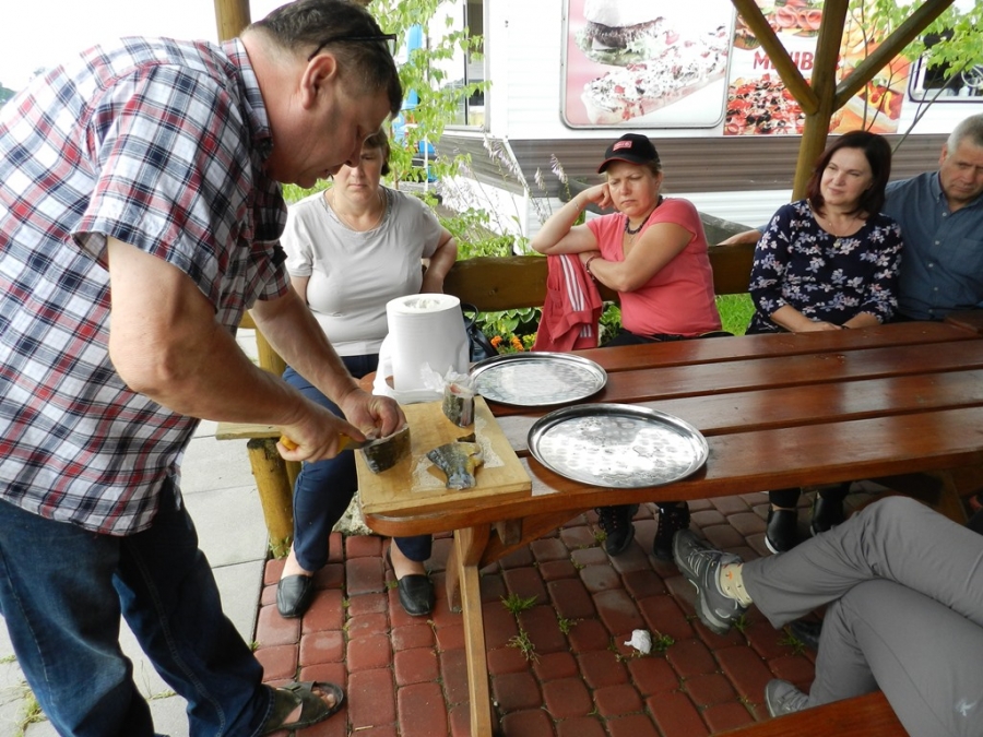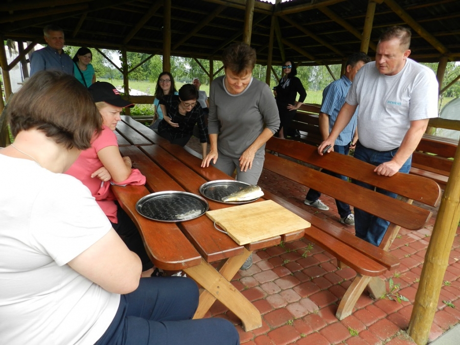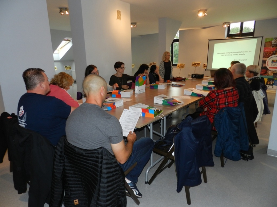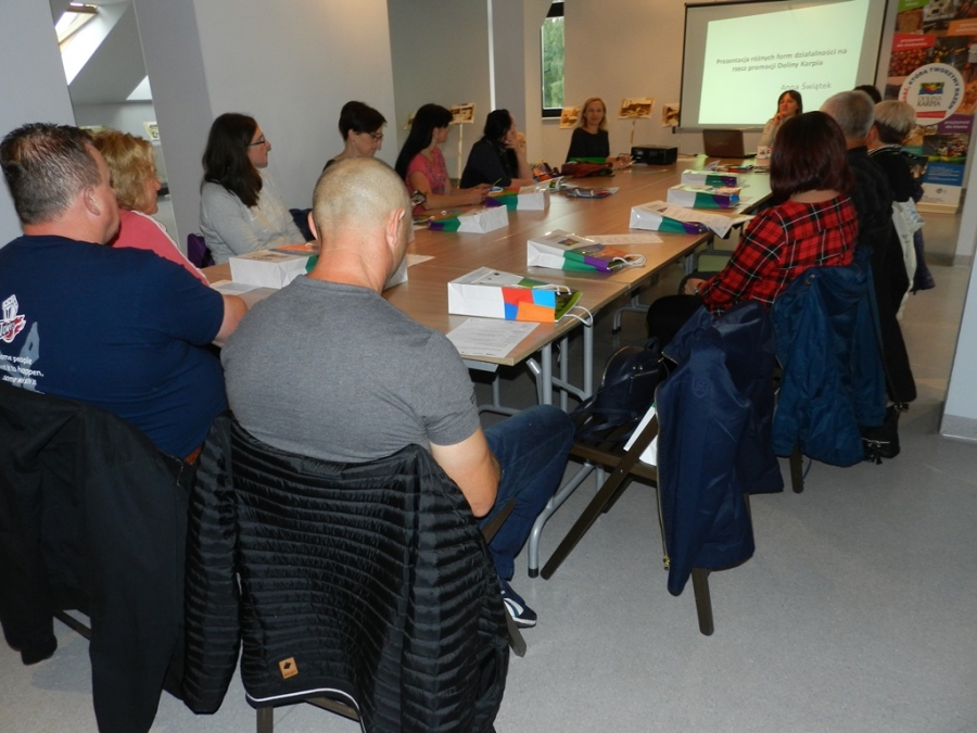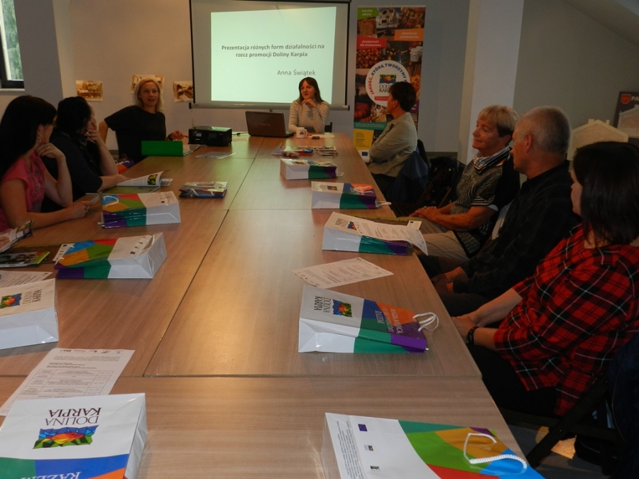 Zagórzanie w praktyce mogli się przekonać jakie korzyści dla społeczności lokalnej i promocji regionu przynosi marka miejsca, jak i kto może ją stworzyć, na jakie przeszkody można napotkać „po drodze”, a przede wszystkim czy to się naprawdę opłaca. Tworzenie uznanej już dzisiaj marki „Dolina Karpia” w szczegółach przedstawiła swoim gościom Anna Świątek ze stowarzyszenia o tej samej nazwie – inicjatora i koordynatora „markowych” działań. Mieszkańcy Gminy Mszana Dolna odwiedzili również Izbę Regionalną w Osieku działająca w ramach Ekomuzeum Doliny Karpia – miejscowej atrakcji turystyczno – edukacyjnej. Z zachwytem obejrzeli tam bogatą kolekcję przedmiotów użytkowych, rękodzieła i sztuki związanych m. in. z hodowlą karpia osieckiego oraz przedmiotów związanych z kulturą materialną wsi i najbliższych okolic. Spotkali się również z producentem miodu z „Pasieki na Zastawiu” – użytkownikiem Znaku Promocyjnego Dolina Karpia. Podczas ciekawej prelekcji skosztowali słodkiego efektu pracy pszczół i zgłębili jego właściwości. Zagórzanie skorzystali również z gościny Restauracji REVEL (obiekt Ekomuzeum Doliny Karpia) – użytkownika znaku promocyjnego Dolina Karpia. Smakując obiad przygotowany w oparciu o produkty ze znakiem promocyjnym Dolina Karpia uczestnicy mieli również okazję zapoznać się z usługą, która otrzymała znak promocyjny Dolina Karolina „MENU Doliny Karpia”. Degustowano również „Chleb Revel z Doliny Karpia” – produkt ze znakiem promocyjnym Dolina Karpia. Wspaniałym doświadczeniem – fascynującą podróżą do świata pszczół - okazała się wizyta w gospodarstwie pasiecznym „Pasieka u Wojtka” – obiektu Ekumuzeum Dolina Karpia, potencjalnego użytkownika Znaku Promocyjnego Dolina Karpia. Swoją osobowością i fachową wiedzą zauroczył wszystkich sympatyczny właściciel, Wojciech. Kolejnym obiektem Ekomuzeum Doliny Karpia posiadającym Znak Promocyjny Doliny Karpia odwiedzonym przez mieszkańców Gminy Mszana Dolna była przetwórnia ryb „Skarby Doliny Karpia”, w której pokaz wędzenia karpia połączony był z jego degustacją. Podczas pobytu w Zatorze goście z Beskidu Wyspowego przekonali się, że znak promocyjny może otrzymać również firma działająca w innej branży niż rybołówstwo. W Cukierni „URBAŃSCY” w Zatorze (potencjalny użytkownik Znaku Promocyjnego Dolina Karpia) uczestnicząc w krótkich warsztatach wysłuchali prelekcji na temat procesu technologicznego „Krówki Zatorskiej”. Ich podniebienia osłodziła krówka i lody, wytwarzane na miejscu z lokalnych surowców. Prawdziwym zaskoczeniem dla gości z Beskidu Wyspowego był zakres działania spółdzielni socjalnej działającej w ramach Inkubatora przetwórstwa lokalnego „Smaki Gościńca”, która oprócz produktów wytwarzanych na sprzedaż świadczy również usługi dla lokalnej społeczności np. udostępnienie pomieszczeń czy tłoczenia soku lub wytwarzanie pierogów wedle wymogów Sanepidu. Przysłowiową wisienką na torcie, a przede wszystkim wspaniałą ucztą dla artystycznych zmysłów Zagórzan, była wizyta w Galerii Produktu Lokalnego w Stryszowie. Prawdziwa feeria barw i różnorodność prezentowanych wyrobów sprawiły, że trudno było się pożegnać bez zakupu kilku drobiazgów.
