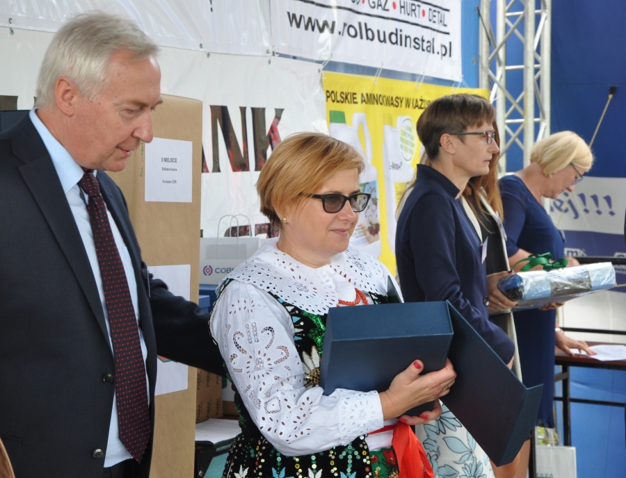 Gospodarstwo Państwa Kochniarczyków oprócz tego, że posiada uprawnienia Rolniczego Handlu Detalicznego, jest również gospodarstwem ekologicznym z certyfikatem. To właśnie w tej kategorii - Gospodarstwo Ekologiczne - Janina i Zbigniew Kochniarczykowie odebrali nagrodę za III miejsce. Janina gościła jednak na agropromocyjnej scenie dwa razy – jej „Zawijaniec z powidłem śliwkowym” skradł podniebienia komisji konkursowej na tyle skutecznie, że jego autorce przyznano I miejsce! Gratulacje i nagrody odebrała z rąk Dominika Paska, Dyrektora Małopolskiego Ośrodka Doradztwa Rolniczego.