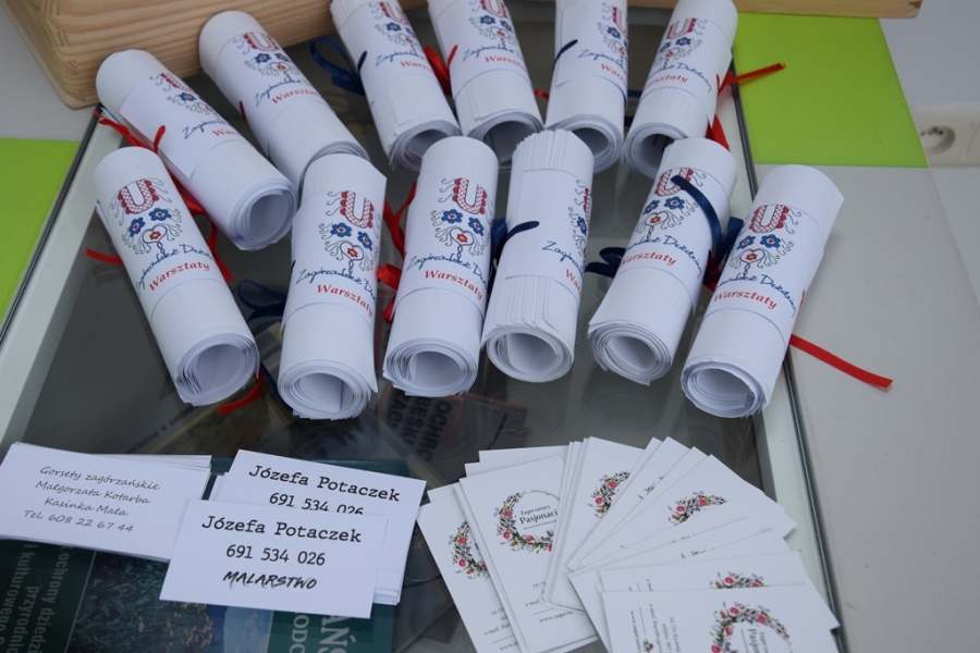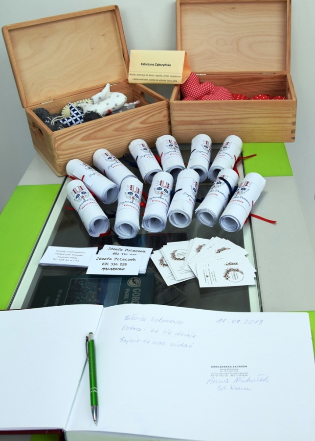 Barwne dzieła zagórzańskich rękodzielników (zrzeszonych w Stowarzyszeniu Rękodzielników „Zagórzańscy Pasjonaci”, przedstawicieli Koła Tradycji Ludowej z Raby Niżnej oraz mieszkańców Kasinki Małej) można było oglądać w limanowskim Buzodromie przez cały wrzesień. A oglądać było co: wszystkimi kolorami mieniły się piękne prace malarskie pędzla Józefy Potaczek; nie ustępowały im w barwach i kunszcie bibułkowe kwiaty wykonane przez Annę Kozak i Koło Tradycji Ludowej z Raby Niżnej. Pani Anna na wystawę przekazała również koszyczki wykonane techniką origami, a Baby z Raby obrazy wypalane na desce oraz przedmioty codziennego użytku ozdobione metodą decoupage’u; zachwycały zrobione przez rabianki ozdoby świąteczne wydziergane na szydełku oraz takie, które po świętach można skonsumować – szopki z piernika, czy baranki wielkanocne z ciasta. Właściwą dla siebie siłą wzrok przyciągały magnesy - zwierzątka, robaczki i kwiatuszki – wszystko, co możemy spotkać na beskidzkich łąkach. Ciekawym elementem wyposażenia wnętrza, jakie zaproponowały gospodynie z Raby Niżnej były zegary, których cyferblaty i tło wypalono w misterne wzory. Ściany galerii zdobiły mieniące się cekinami i różnobarwnymi koralikami gorsety wyszyte w zagórzańskie wzory przez Małgorzatę Kotarbę oraz zaproponowane przez nią torebki z motywami regionalnymi zdobione jednak z lekką nutą stylizacji folkowej. Szymon Skolarus wykonał figurki i ozdoby z modeliny (wszystkie miały zagórzańskie akcenty), a Agnieszka Kozak – Stożek i Zofia Filipiak – obrazki i przedmioty codziennego użytku oraz elementy wystroju wnętrz ozdobione metodą decoupage’u. Pani Zofia pochwaliła się również elementami biżuterii wykonanymi z makramy, a Agnieszka – kwiatami z krepiny. Koszyczki i ozdoby zrobione z papierowej wikliny, łapacze snów, piękne koronkowe serwety oraz maskotki wydziergane za pomocą szydełka – to konik Elżbiety Ząbczyńskiej. Spod ręki Katarzyny Ząbczyńskiej wyszły zaś kolorowe wianki i wianuszki oraz materiałowe kwiaty i maskotki. Całej wystawy pilnie przez cały wrzesień strzegł baca wykonany metodą korzeniopalstyki przez Józefa Kościelniaka.