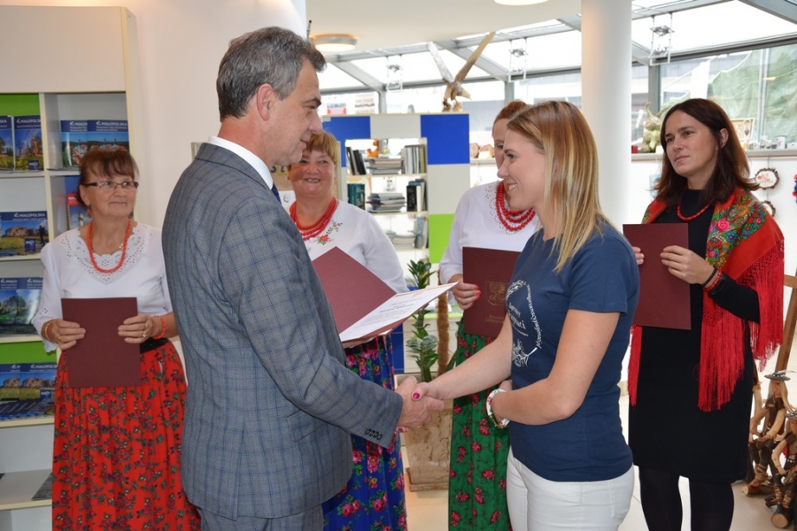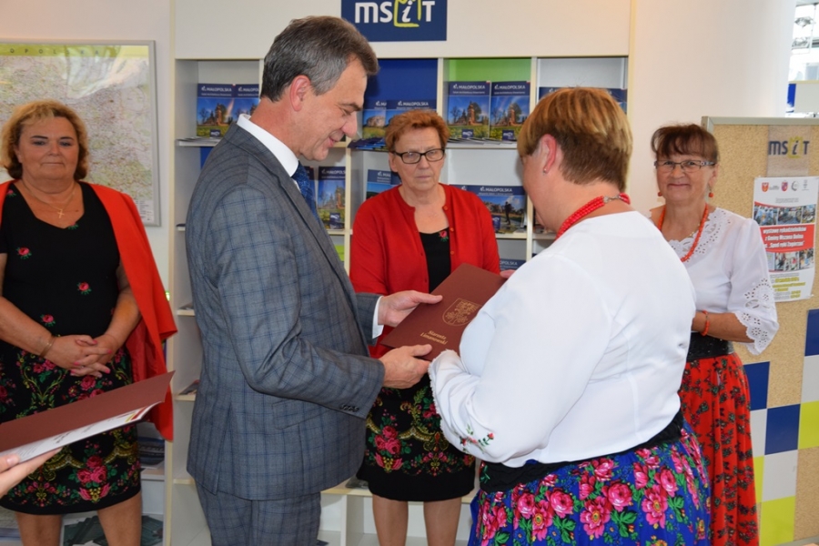 Uroczyste zakończenie wystawy stało się okazją do osobistego spotkania z zagórzańskimi twórcami. Skorzystali z niej: Mieczysław Uryga – Starosta Limanowski, Bolesław Żaba – Wójt Gminy Mszana Dolna, Rafał Kubowicz – gminny radny, Mateusz Pietrzak – Kierownik Biura Promocji, Kultury i Turystyki Starostwa Powiatowego w Limanowej oraz kurator tej wystawy - Joanna Zawada. Na spotkanie przybyli Jakub Puchal – rzeźbiarz ze Żmiącej, Przemysław Bieda – fotograf, malarz i rzeźbiarz z Limanowej oraz Józef Budacz – redaktor Gazety Krakowskiej. Nie zbrakło też mieszkańców stolicy powiatu. Gospodarze Gminy Mszana Dolna i Powiatu Limanowskiego w swoich wystąpieniach podkreślili ogromną rolę, jaką w dzisiejszych czasach pełni rękodzieło oraz jak ważne jest kultywowanie tradycji regionalnych. Podziękowali zagórzańskim twórcom za ich pracę i zaangażowanie; pogratulowali dotychczasowych sukcesów. Nie zabrakło życzeń wytrwałości i rozwoju własnych pasji. Mateusz Pietrzak w podsumowaniu wystawy zwrócił uwagę na duże zainteresowanie przedstawionym w Galerii PCIT rękodziełem mieszkańców całego powiatu, turystów odwiedzających Limanową oraz wychowanków miejscowych szkół podstawowych. Słodkim poczęstunkiem wszystkich obecnych ugościły Baby z Raby.