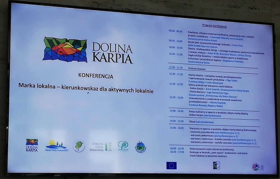 Gospodarze konferencji honorowo podjęli swoich gości w obiekcie MOLO Resort posiadający znak marki lokalnej Dolina Karpia. Praktyczne przykłady produktów wyróżnionych tym znakiem uczestnicy konferencji poznali w ramach warsztatów kreatywnych: pszczelarskich, piekarniczych i cukierniczych. Niespodzianką dla gości Doliny Karpia był pokaz kulinarny wykonany w oparciu o produkty objęte marką lokalną Dolina Karpia przez członków jej Kapituły: Ewę Wachowicz i Marcina Polusa, Prezesa Stowarzyszenia Małopolskich Kucharzy i Cukierników.