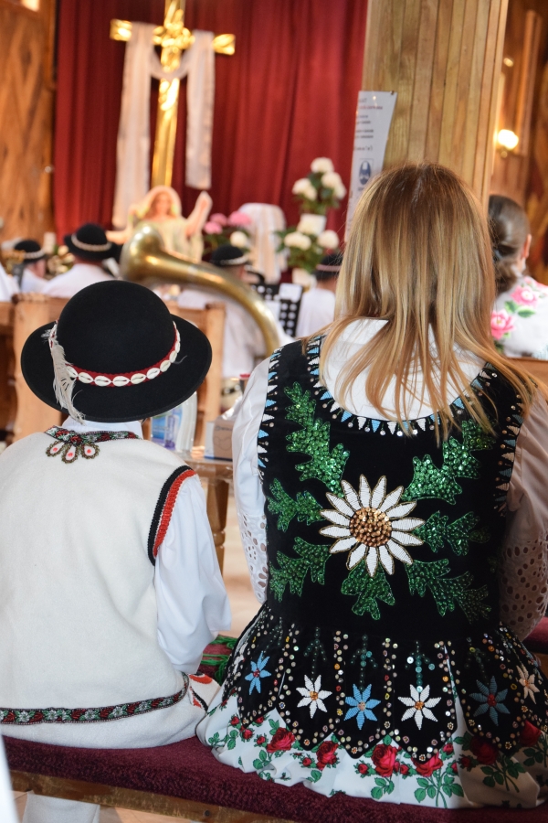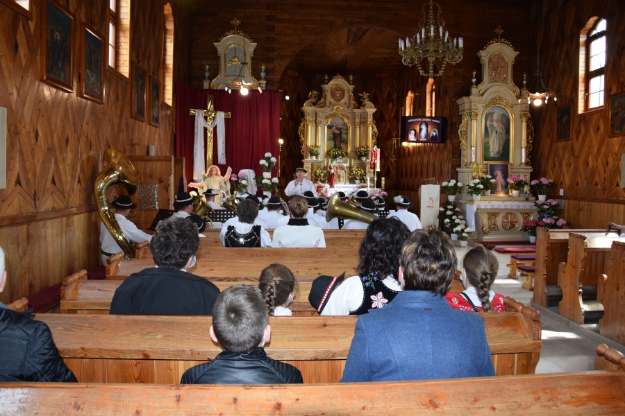 Dla wielu z nich jest to jedyna okazja do ubrania się w to szczególne, odświętne „odzienie” i celebrowania razem z innymi poczucia wspólnoty i dumy z własnej tożsamości. Angażując się w ten sposób w oprawę comiesięcznej, regionalnej Eucharystii, tworzą w kościele nastrój szczególny, trudny do opisania… Uroczysty, podniosły, odświętny… na pewno niecodzienny, szykowny i ważny. Jego dopełnieniem jest czynny udział w liturgii – czytania, śpiewy, modlitwa wiernych – ubogaca to i daje poczucie jedności. Dopełnieniem są dźwięki wygrywane przez kapele, zespoły regionalne i orkiestry dęte z całego Regionu Zagórzańskiego, prezentujące się również w regionalnych strojach. I tym razem pięknie wybrzmiały pieśni wygrywane przez muzyków najmłodszej z orkiestr Gminy Mszana Dolna – „Sami Swoi” z Kasinki Małej – Zagródca.
