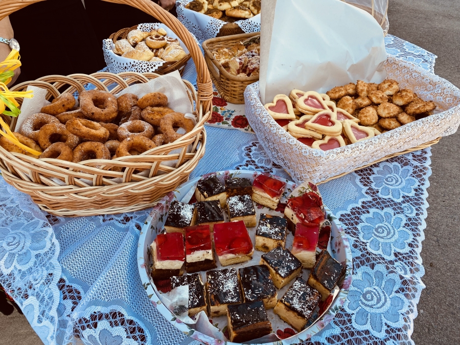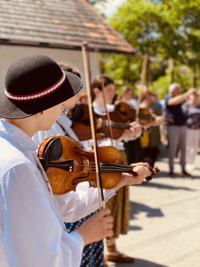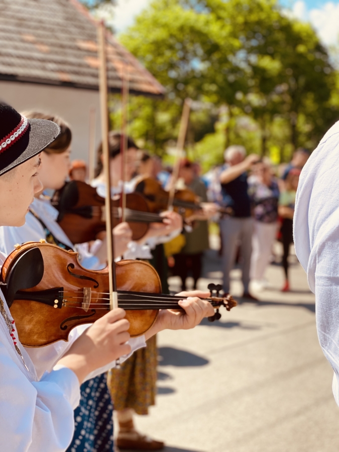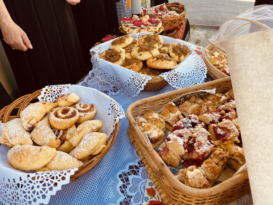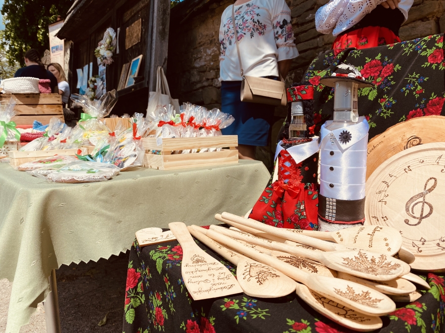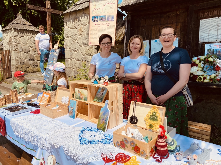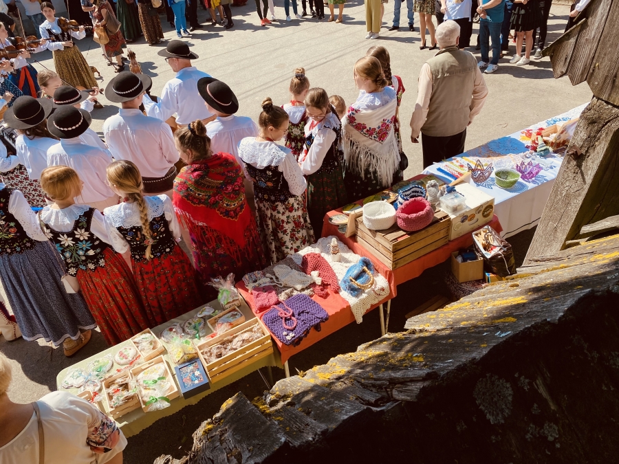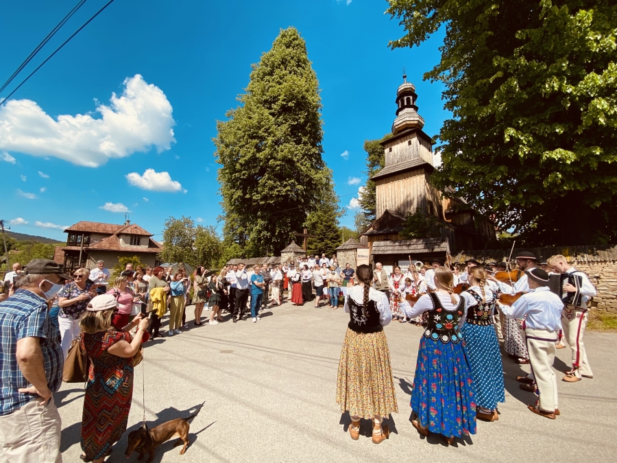 W ciepłe, słoneczne popołudnie, po modlitwie w świątyni, w centrum wsi słychać było dźwięczne, mocne głosy i muzykę Zagórzańskiego Zespołu Regionalnego Dolina Mszanki. Plac przed kościołem mienił się wszystkimi kolorami zagórzańskich strojów regionalnych, które na tę okoliczność mieszkańcy regionu zakładają z coraz większą ochotą. Atmosferę radości i wspólnoty dopełniał kiermasz produktów lokalnych. Na stoiskach wypełnionych po brzegi lokalnym rękodziełem można było zaopatrzyć się w koronki, obrazki, bibeloty, magnesiki, gorsety, ręcznie dziergane zabawki i inne cudeńka wykonane przez Zagórzańskich Pasjonatów Stowarzyszenie Rękodzielników; pierniczki, które w regionalne wzory wprawną ręką zdobi Małgorzata Suder i galanterię drewnianą, na której zagórzańskie akcenty wypala Helena Kuczaik. Niezawodne, jak zwykle, kasińskie gaździny zgromadzone w KGW „Zagórzanki” szczodrze częstowały gości swoimi wypiekami. Na wszystko, jak zwykle, „oko” miał sołtys, który wraz z całym sołectwem dba o to, aby w Kasinie Wielkiej goście czuli się godnie.