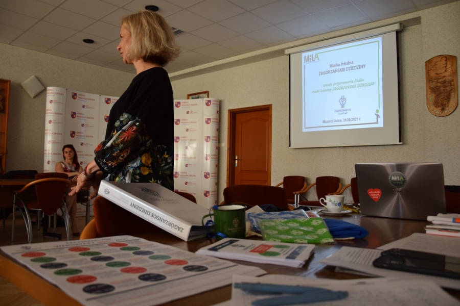 Olga Gałek, Wiceprezes Fundacji Miejsc i Ludzi Aktywnych MILA, animator Zagórzańskich Dziedzin, przedstawiła zebranym ideę marki lokalnej i zaprezentowała dobre przykłady promocji wybitnych produktów pod marką parasolową z Polski i Unii Europejskiej.