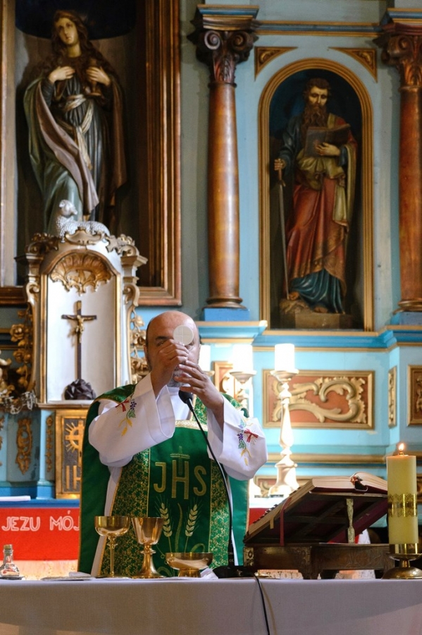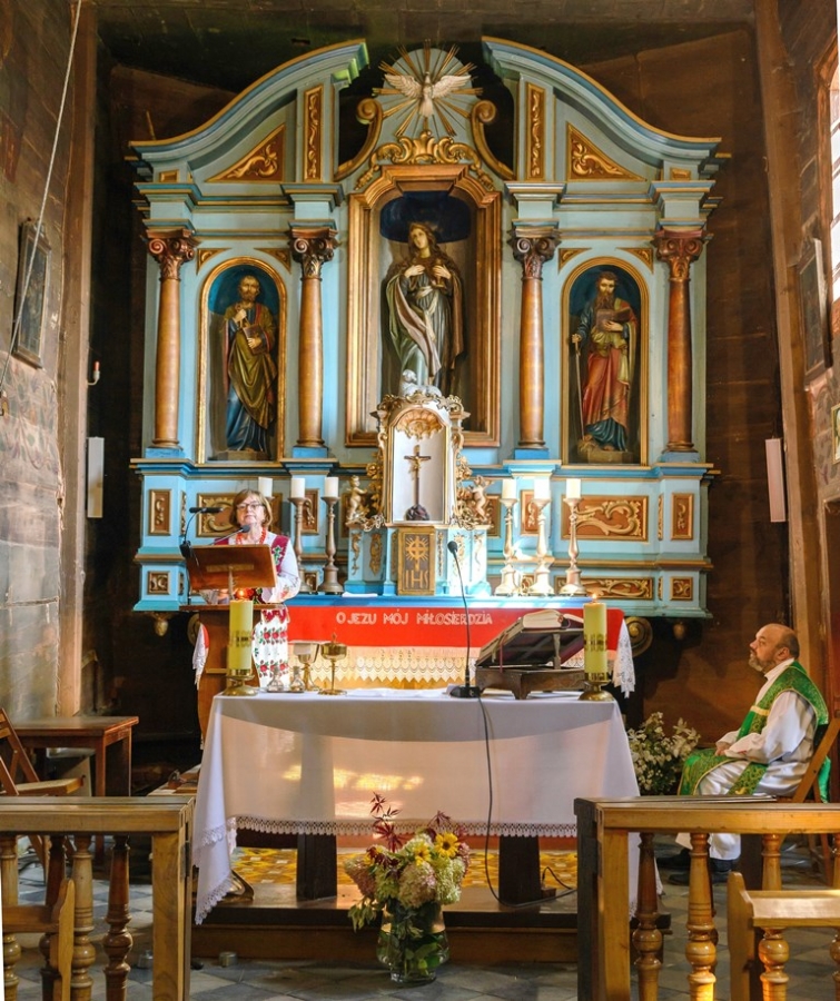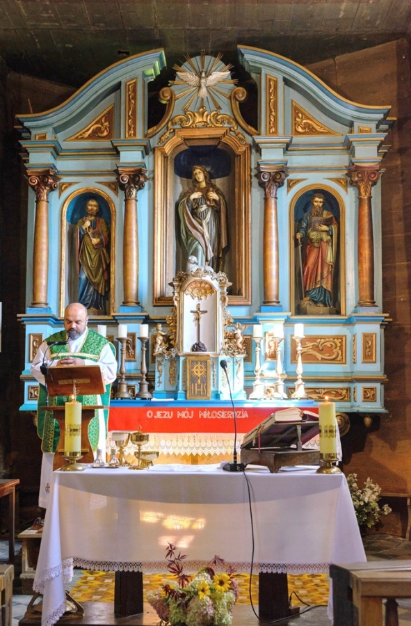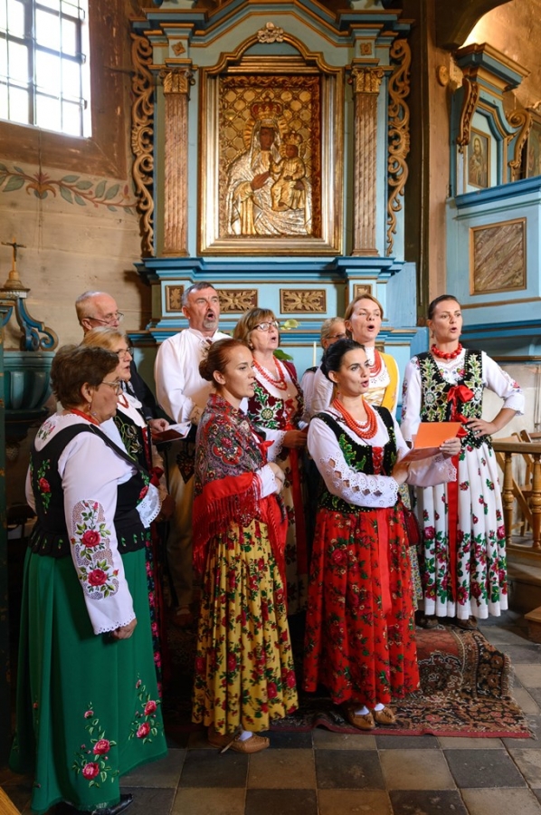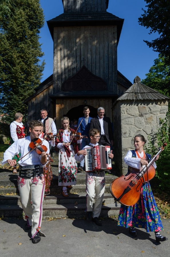 Nie inaczej było 5 września b.r. Już od wejścia rozkoszować się można było pięknymi melodiami wygrywanymi i śpiewanymi przez członków zespołu „Spod Turbaca” z Poręby Wielkiej. Klimatyczne wnętrza siedemnastowiecznego kościoła p.w. św. Marii Magdaleny w Kasinie Wielkiej wypełniły się modlitwą, muzyką, feerią barw zagórzańskich strojów…
