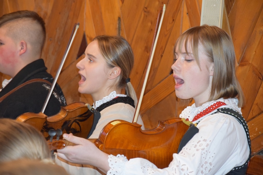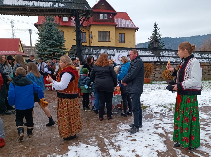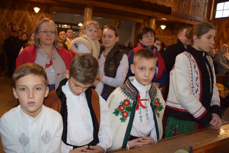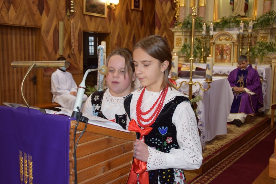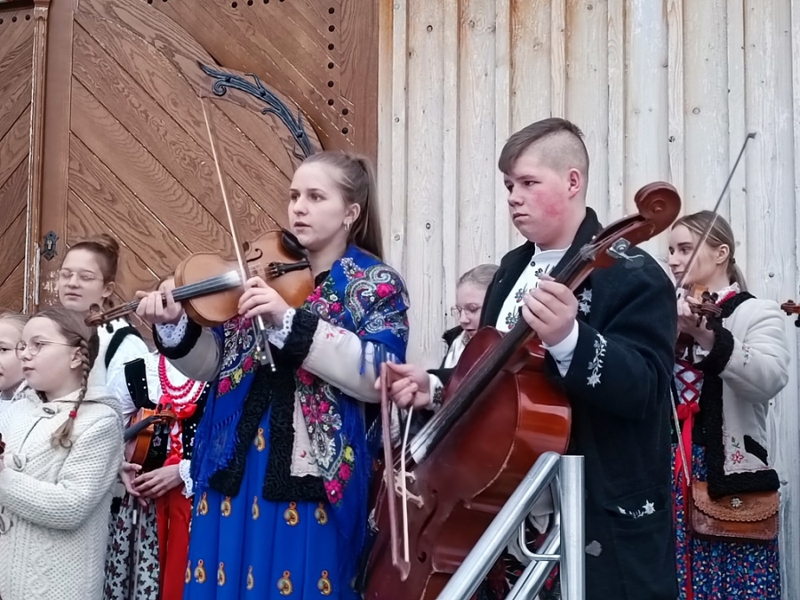 To właśnie ich najmłodsze pokolenie, skupione w zespole Łętowianie, zapewniło piękną oprawę Eucharystii, a po jej zakończeniu, na placu przed kościołem, dało popis swoich biesiadnych talentów. Słuchać i oglądać tych zupełnie małych, wystrojonych w paradne, zagórzańskie stroje, to była prawdziwa rozkosz. Pozytywne doznania gości wydarzenia uzupełniły wyśmienite wypieki serwowane przez Śwarne Babki z KGW Łętowe – prywatnie mamy i babcie małych łętowian - tak, tak, tych z zespołu.