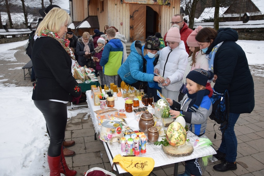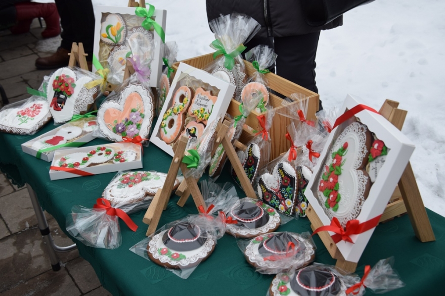 Namiastką nadziei na spokojniejszy czas był kiermasz produktów lokalnych, na którym pojawiły się już pierwsze oznaki wiosny – ozdobne pierniczki od Małgorzaty Suder dedykowane wszystkim paniom z okazji Dnia Kobiet oraz stroiki wielkanocne przygotowane przez Monikę Woźniak i Zagórzańskich Pasjonatów Stowarzyszenie Rękodzielników. Na stoiskach nie zabrakło regionalnych akcentów oraz produktów pszczelich z Pasieki u Piotra Woźniaka z Koniny.
