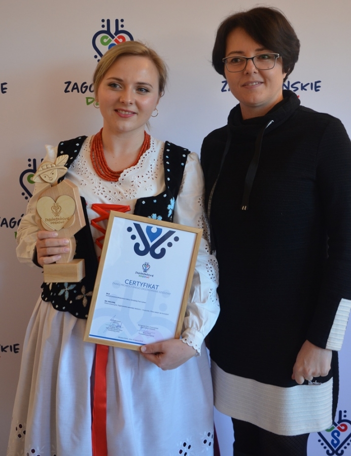 - Monika i Dorota Kościelniak reprezentujące Stowarzyszenie Miłośników Kultury Góralskiej Pod Cyrlom z Olszówki, które Znak Promocyjny ZAGÓRZAŃSKIE DZIEDZINY otrzymało na Ofertę edukacyjną – Zagórzańskie warsztaty taneczno – muzyczne „Pieca zadym nie troncojcie”.