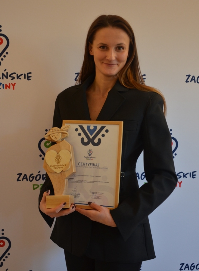 Z rąk Anny Pękały, Burmistrz Miasta Mszana Dolna, odebrała je Dominika Duda, przedstawicielka WPPHU JANDA Janina Duda, którego usługa: Oferta turystyczno – rekreacyjna oraz noclegowo – gastronomiczna z możliwością rehabilitacji w Ośrodku wypoczynkowo – konferencyjno – rehabilitacyjnym JANDA RESORT&CONFERENCE uzyskała Znak Promocyjny ZAGÓRZAŃSKIE DZIEDZINY.