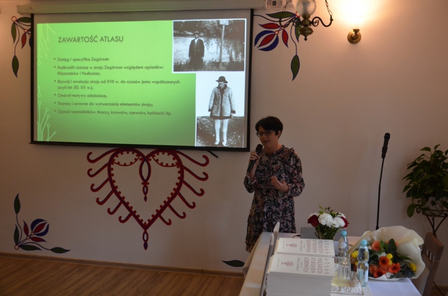 Dr Katarzyna Ceklarz szczegółowo wyjaśniła jak prawidłowo należy odczytywać podział poszczególnych zeszytów na przyporządkowane im makroregiony Polski. 48 skryptów opracowali wybitni badacze wg jednego, ustalonego schematu. Co więcej, jako Małopolanie, możemy być dumni, ponieważ to właśnie Małopolska ma najwięcej wydanych zeszytów, z czego nasz – zagórzański - wydany w 1956 roku zyskał miano „białego kruka”. Przy tej okazji przypomniana została postać dr Sebastiana Flizaka, który jako autor materiału dokonał szczegółowej kwerendy zagórzańskiego stroju, zarówno męskiego, jak i kobiecego. Wymagało to od niego niesamowitego poświęcenia, które często odbijało się na jego zdrowiu i finansach.