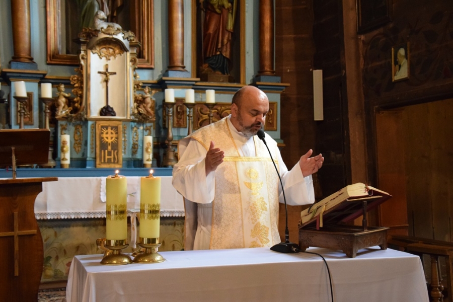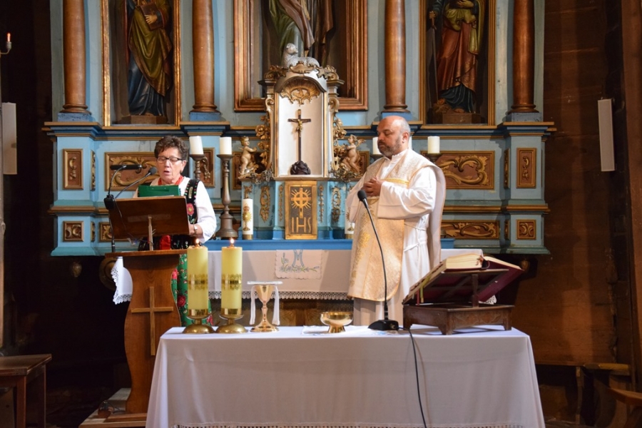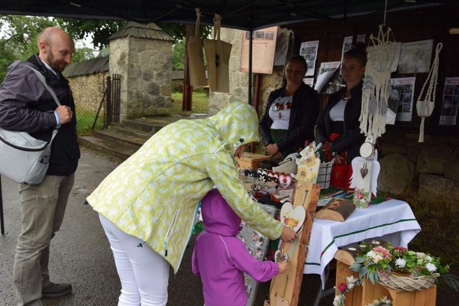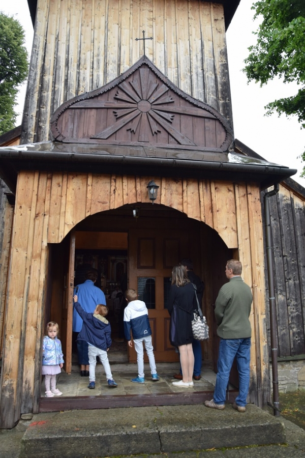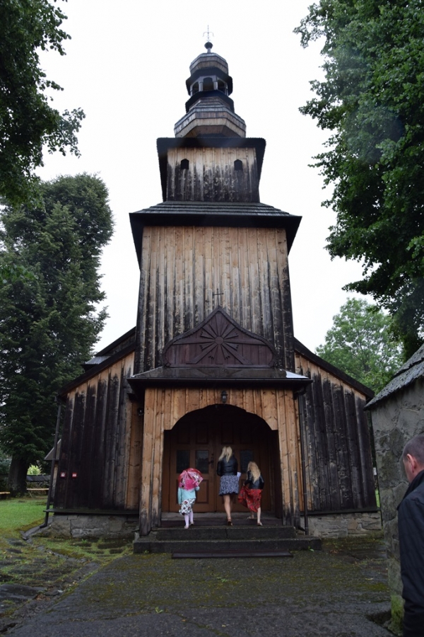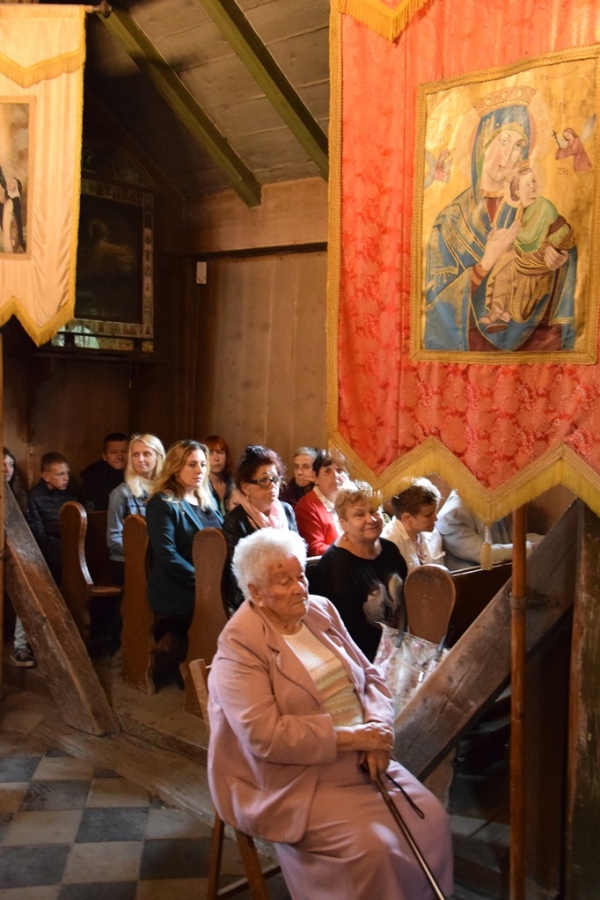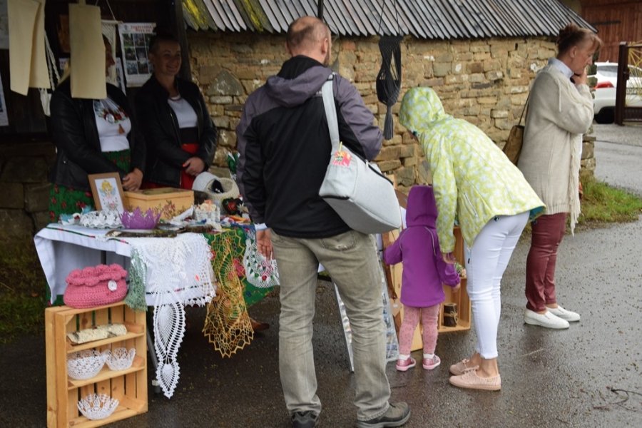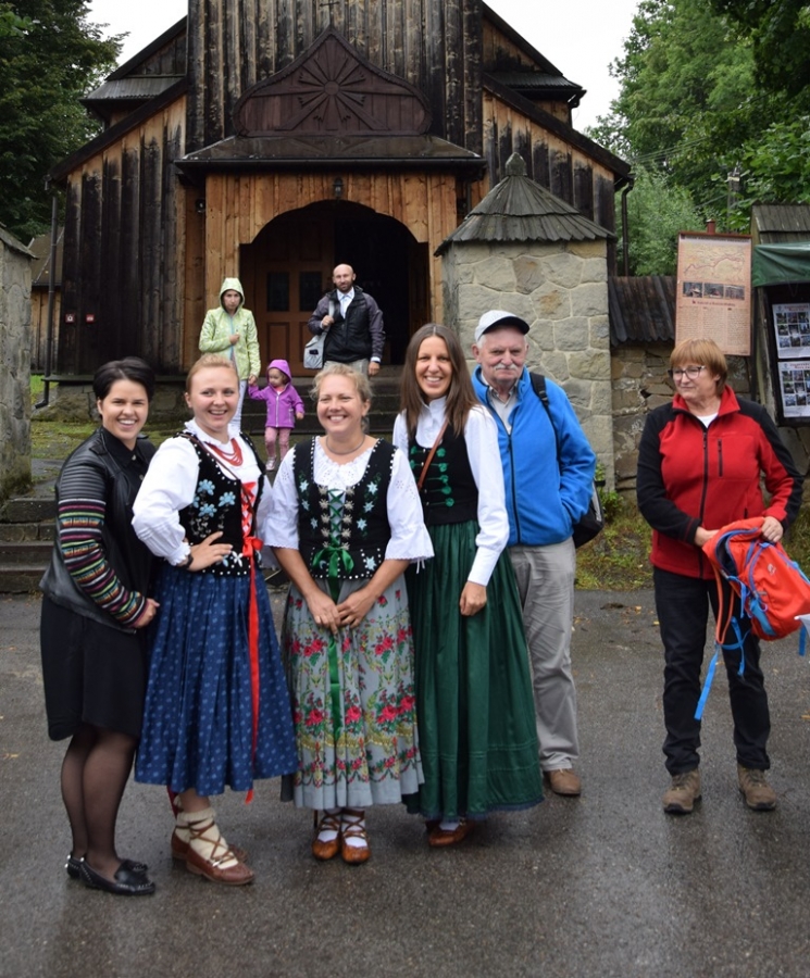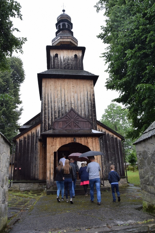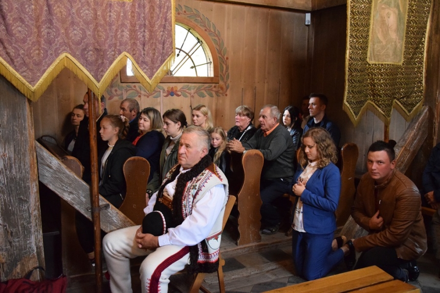 W kościele parasole były niepotrzebne, można więc było do woli rozkoszować się okolicznościowym anturażem. A ten, przyznać trzeba, był zacny. Niezmiennie zachwycają wnętrza siedemnastowiecznej świątyni, a głos zabytkowych również organów zapewnia nastrój jak z innej epoki… Dźwięki zagórzańskich zespołów i orkiestr dętych brzmią tutaj również wyjątkowo! Trzeba wszak przyznać, że akustyka obiektu sprzyja odbiorowi nabożnych pieśni. Tym razem o tę muzyczną oprawę Zagórzańskiej Mszy św. oraz ubogacenie liturgii słowa i śpiewów międzylekcyjnych zadbali muzycy z orkiestry Sami Swoi z Kasinki Małej – Zagródca. Wśród odświętnie przyodzianych w stroje regionalne Zagórzan dostrzec można było sąsiadów z Węglówki. Pociągiem retro z Chabówki na tę szczególną Eucharystię dotarło niezwykle sympatyczne małżeństwo, mieszkańcy Śląska Cieszyńskiego. Jak zwykle, swoim gospodarskim okiem ogarniał wszystko kasiński gazda, Adam Wrzecionek. Opady deszczu nie przeszkodziły również Zagórzańskim Pasjonatom Stowarzyszeniu Rękodzielników w rozstawieniu swojego stoiska z cudeńkami ludzką ręką uczynionymi. Dbają oni zawsze, aby uczestnicy Zagórzańskich Mszy św. z pobytu u Zagórzan wrócili z oryginalną pamiątką.