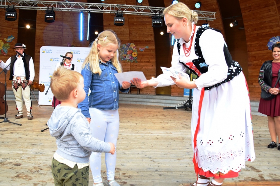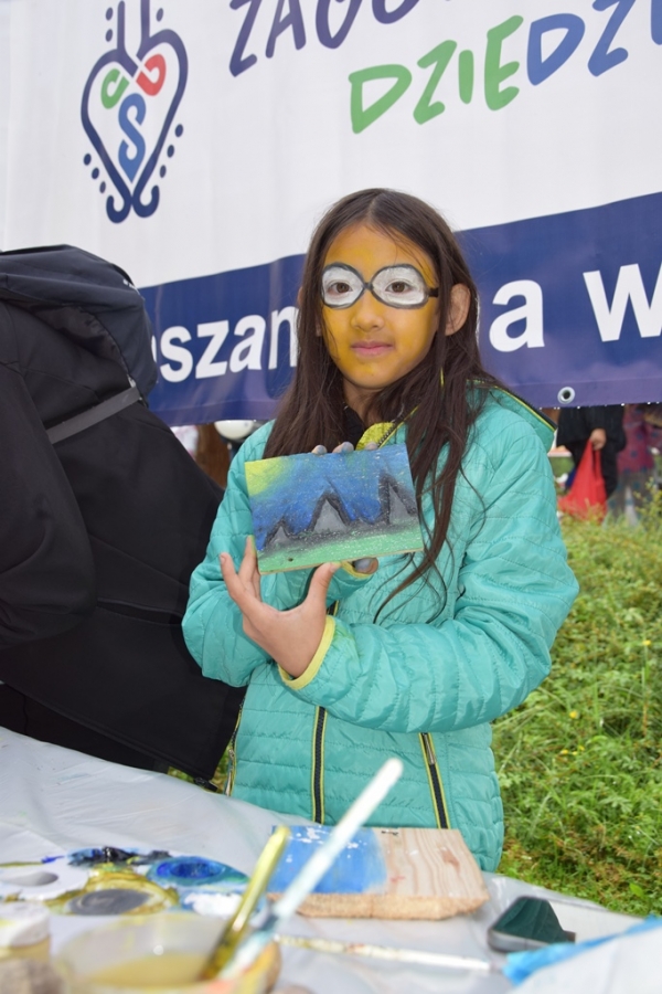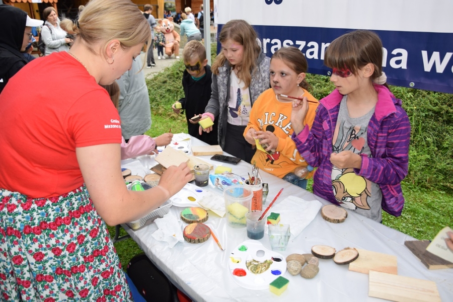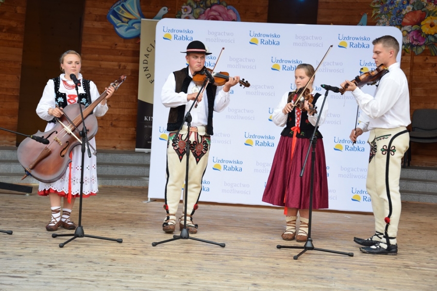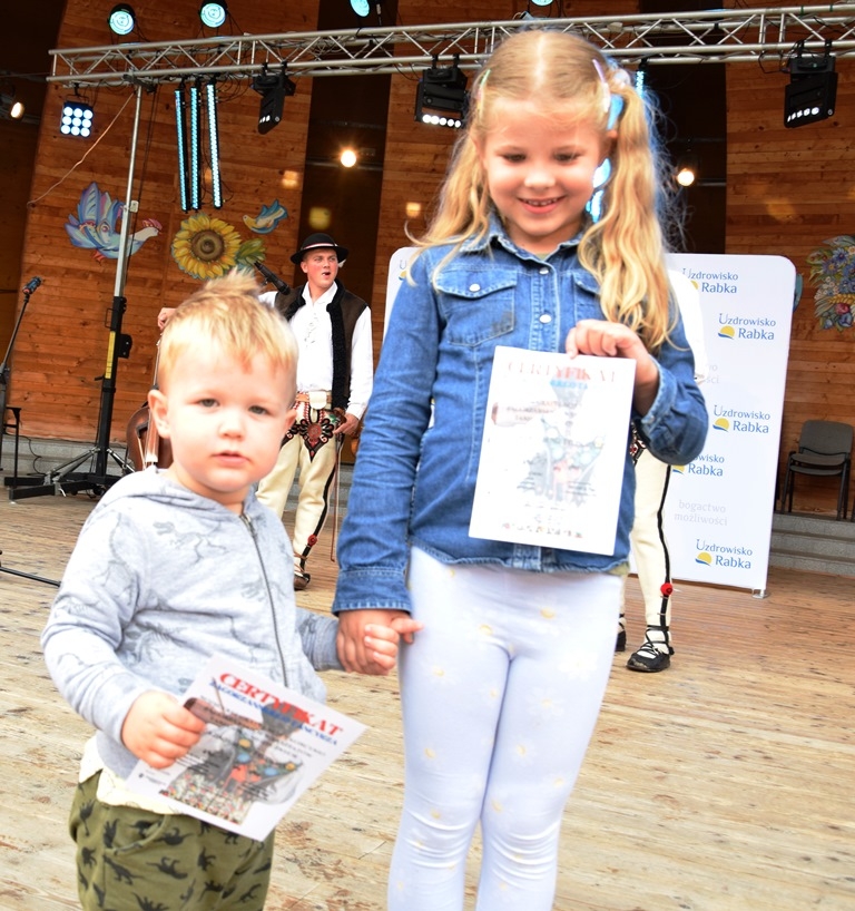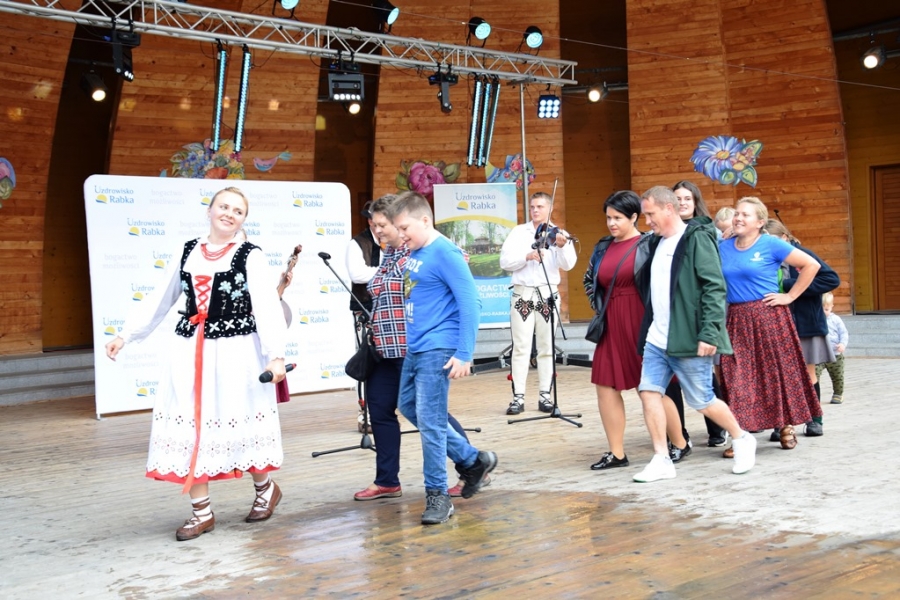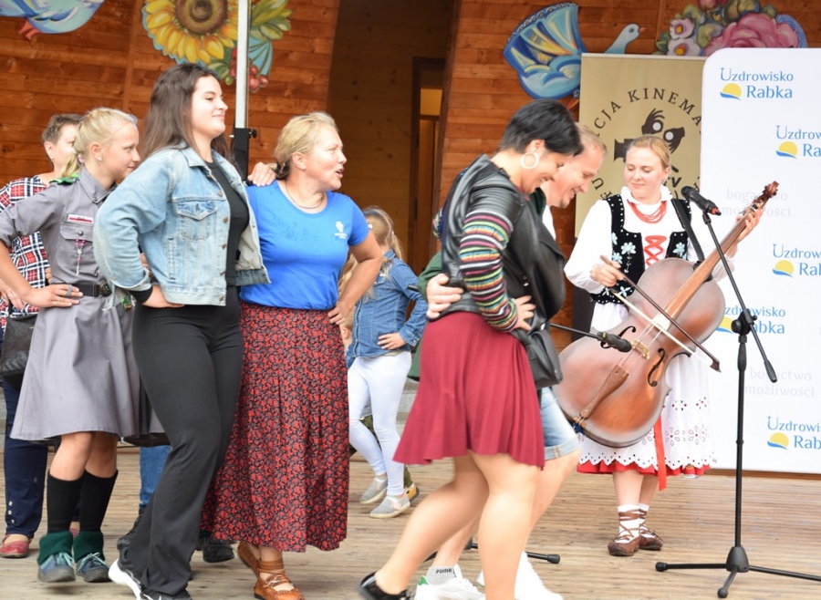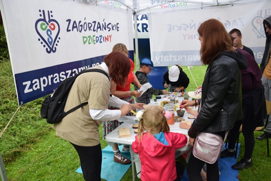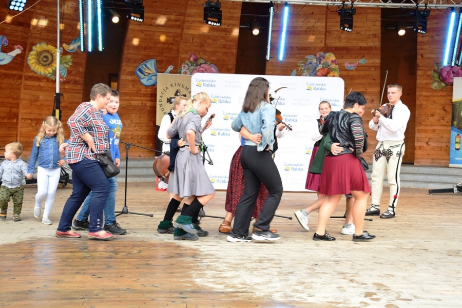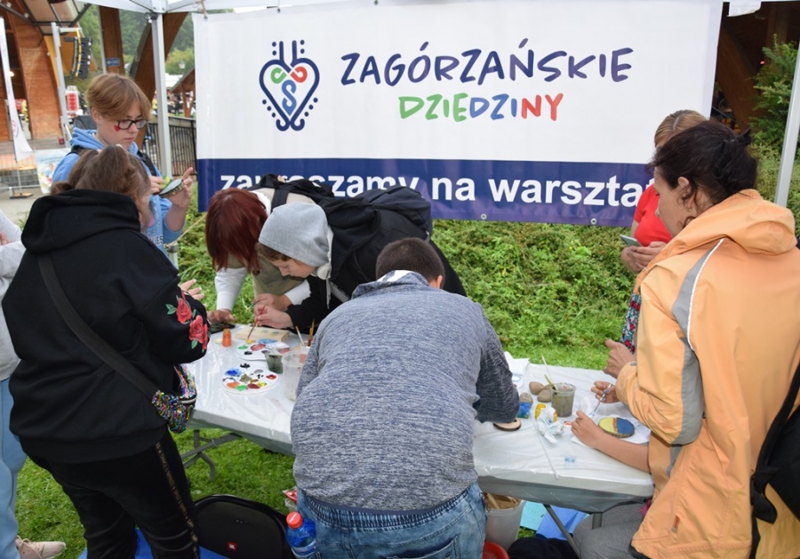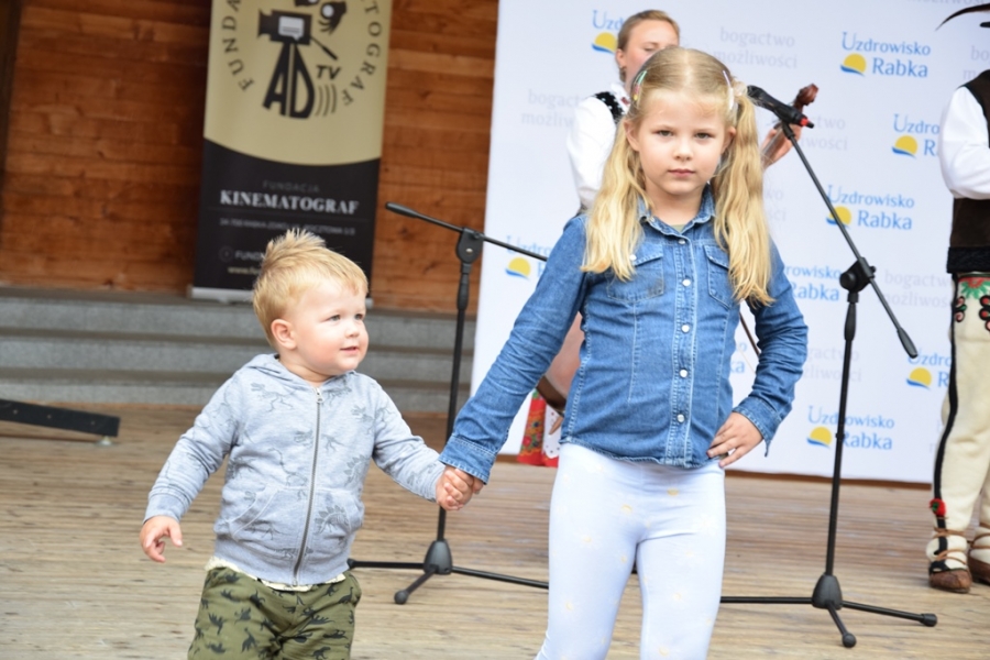 Nie jest dla nikogo zaskoczeniem, że największą popularnością cieszyły się warsztaty „Cosik zmalowane”, podczas których ich uczestnicy własnoręcznie wykonywali sobie pamiątki z pobytu w Rabce. Adepci malowania na desce czy kamieniu tak zaangażowali prowadzącą tę aktywność Dorotkę Kościelniak ze Stowarzyszenia Miłośników Kultury Góralskiej Pod Cyrlom z Olszówki, że jej występ na scenie trzeba było nieco przesunąć…. Tam, w towarzystwie swojego rodzeństwa – całego składu kapeli Kościelnioki - dała popis swoich talentów wokalnych, muzycznych i tanecznych. W amfiteatrze bowiem, w ramach warsztatów „Pieca zadym nie troncojcie” ze Znakiem Promocyjnym ZAGÓRZAŃSKIE DZIEDZINY uczyła kroków „Konia”, regionalnego tańca.