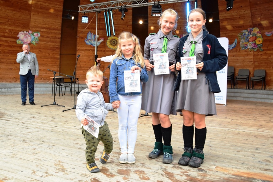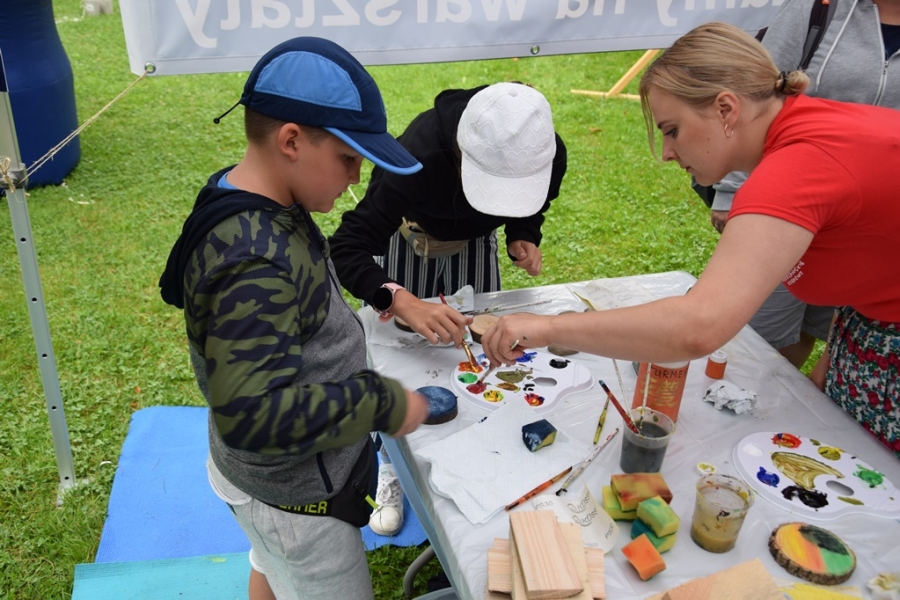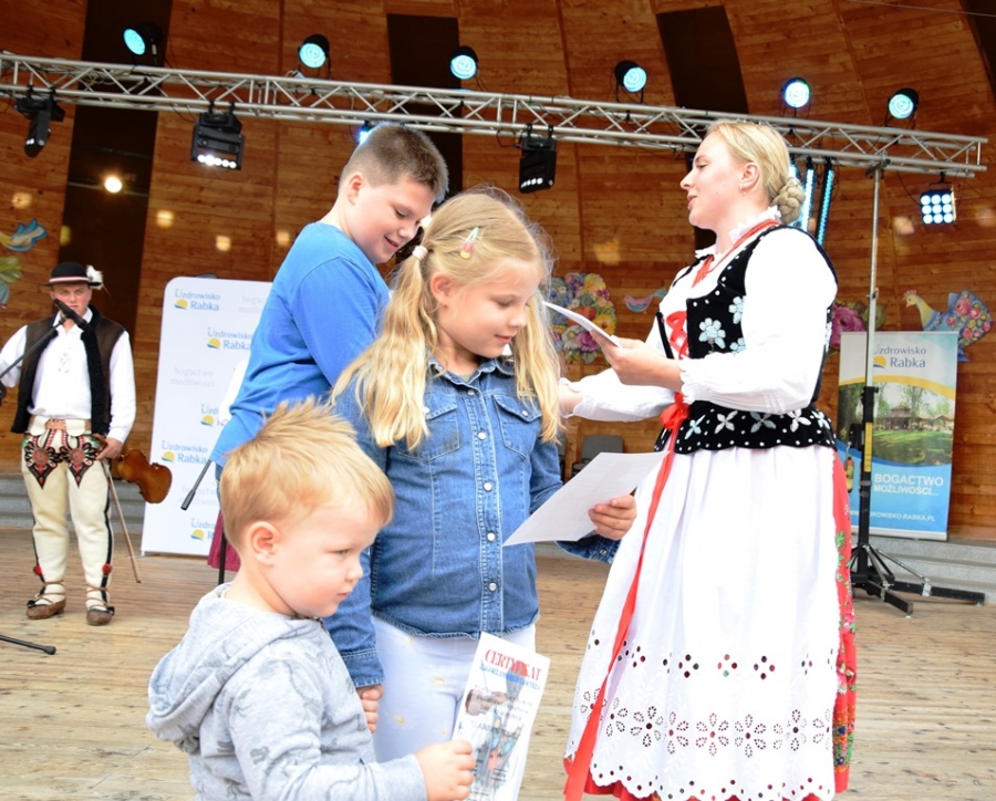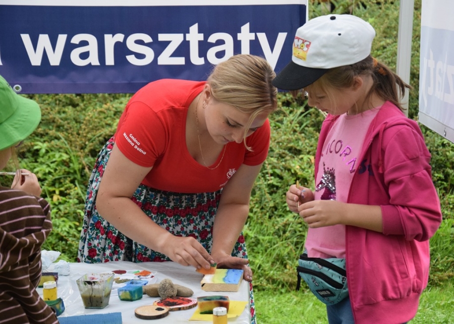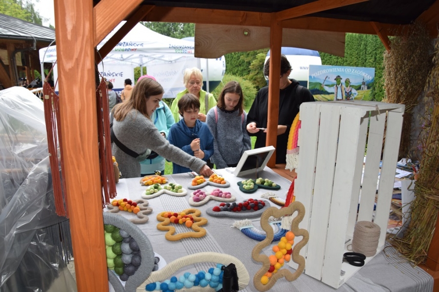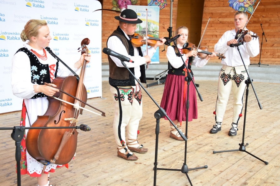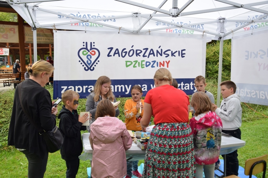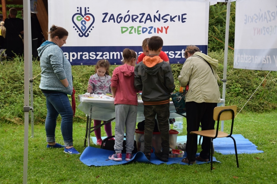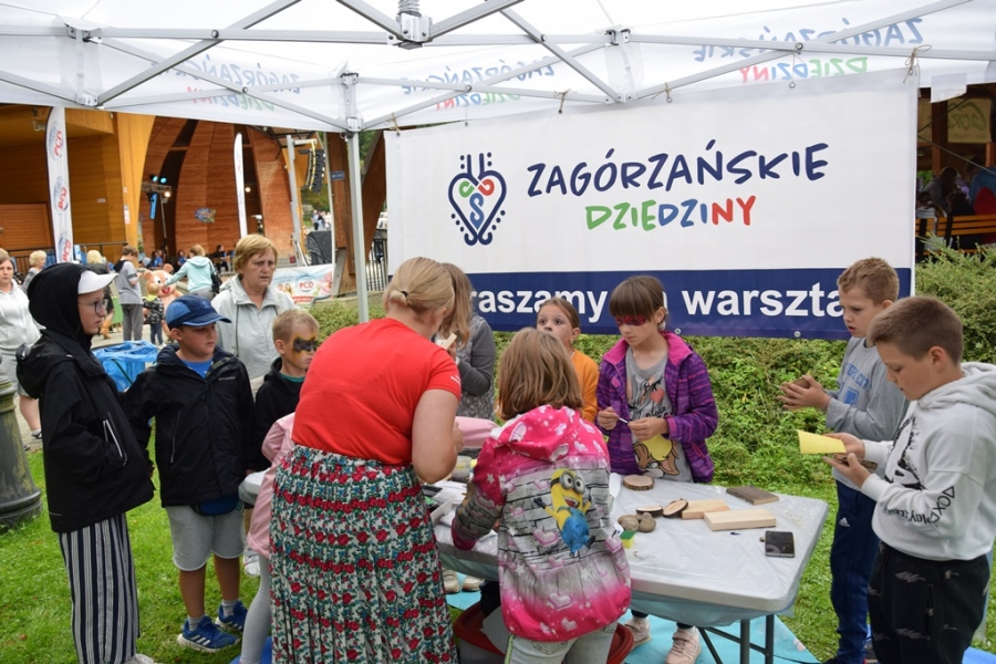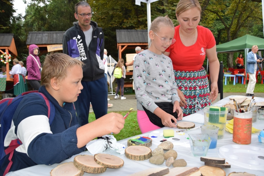 Nie jest dla nikogo zaskoczeniem, że największą popularnością cieszyły się warsztaty „Cosik zmalowane”, podczas których ich uczestnicy własnoręcznie wykonywali sobie pamiątki z pobytu w Rabce. Adepci malowania na desce czy kamieniu tak zaangażowali prowadzącą tę aktywność Dorotkę Kościelniak ze Stowarzyszenia Miłośników Kultury Góralskiej Pod Cyrlom z Olszówki, że jej występ na scenie trzeba było nieco przesunąć…. Tam, w towarzystwie swojego rodzeństwa – całego składu kapeli Kościelnioki - dała popis swoich talentów wokalnych, muzycznych i tanecznych. W amfiteatrze bowiem, w ramach warsztatów „Pieca zadym nie troncojcie” ze Znakiem Promocyjnym ZAGÓRZAŃSKIE DZIEDZINY uczyła kroków „Konia”, regionalnego tańca.