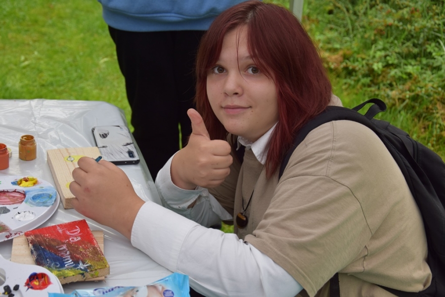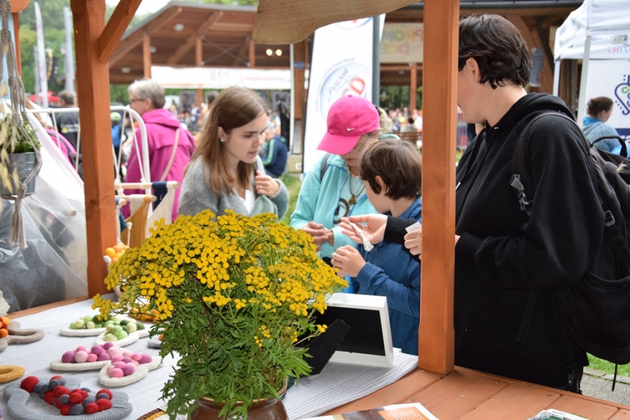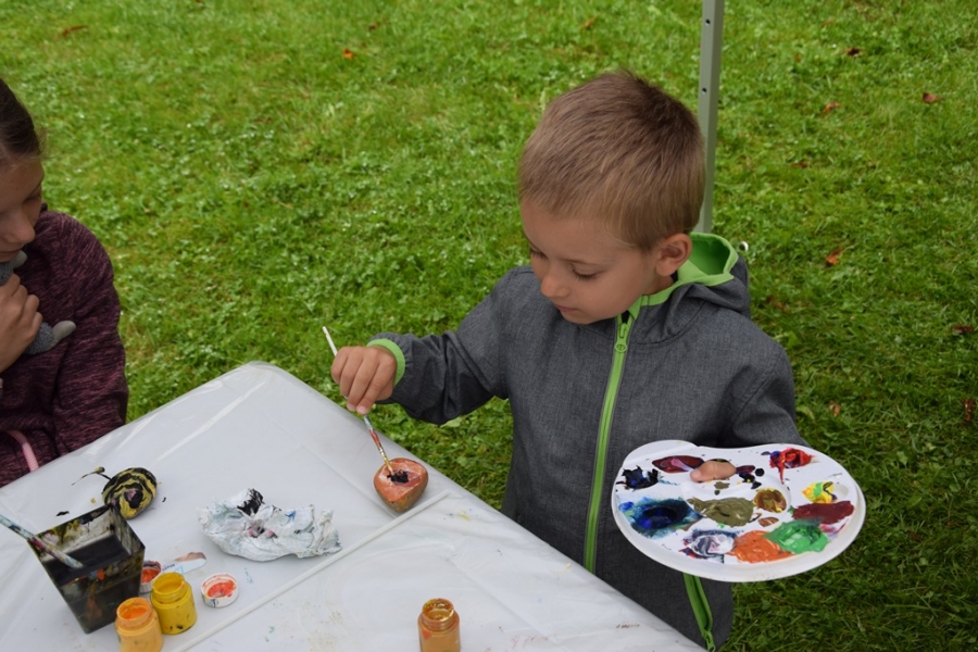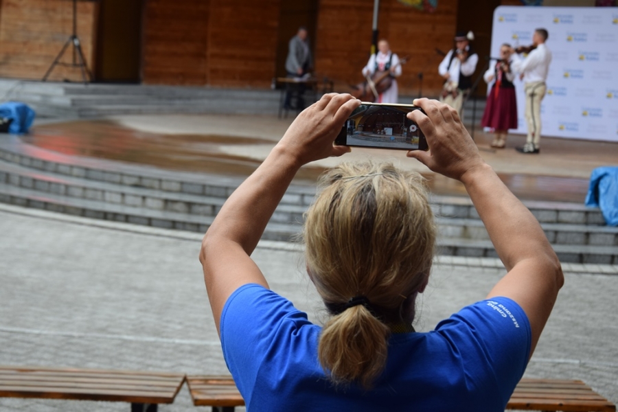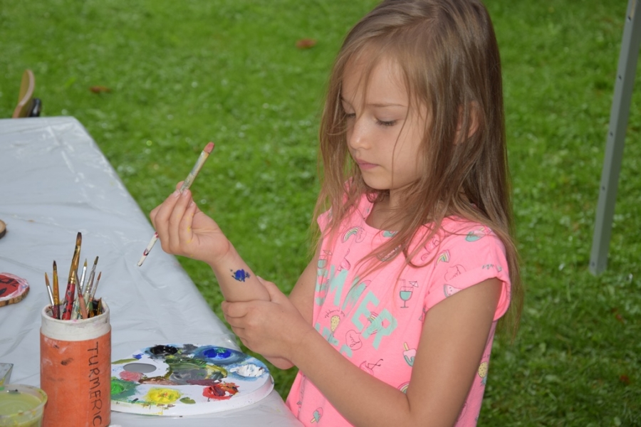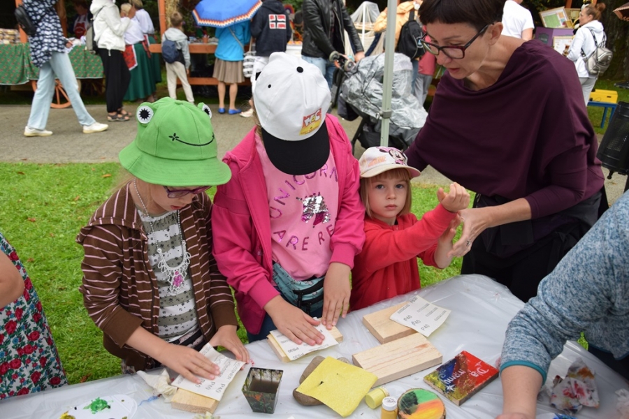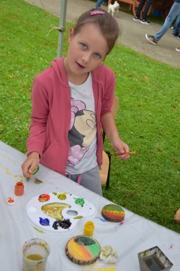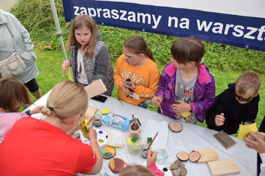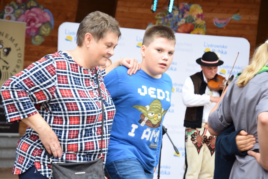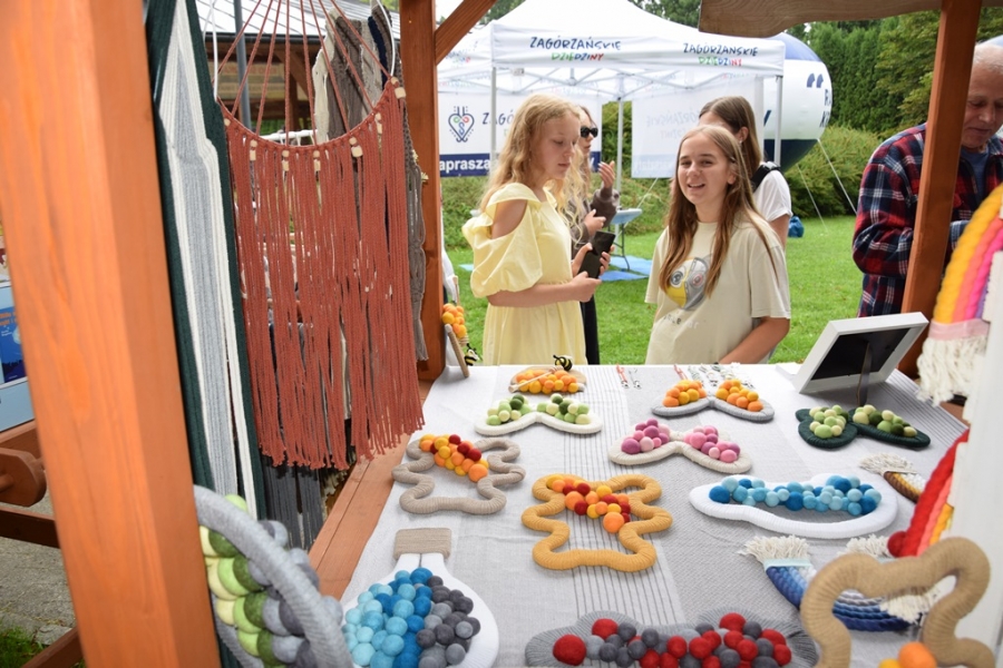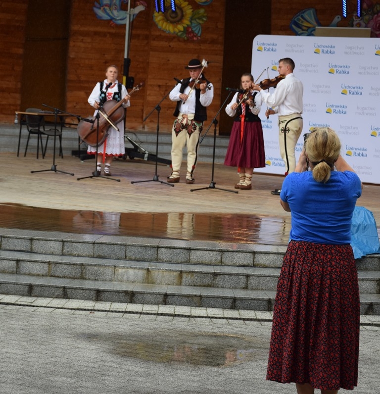 Nie jest dla nikogo zaskoczeniem, że największą popularnością cieszyły się warsztaty „Cosik zmalowane”, podczas których ich uczestnicy własnoręcznie wykonywali sobie pamiątki z pobytu w Rabce. Adepci malowania na desce czy kamieniu tak zaangażowali prowadzącą tę aktywność Dorotkę Kościelniak ze Stowarzyszenia Miłośników Kultury Góralskiej Pod Cyrlom z Olszówki, że jej występ na scenie trzeba było nieco przesunąć…. Tam, w towarzystwie swojego rodzeństwa – całego składu kapeli Kościelnioki - dała popis swoich talentów wokalnych, muzycznych i tanecznych. W amfiteatrze bowiem, w ramach warsztatów „Pieca zadym nie troncojcie” ze Znakiem Promocyjnym ZAGÓRZAŃSKIE DZIEDZINY uczyła kroków „Konia”, regionalnego tańca.