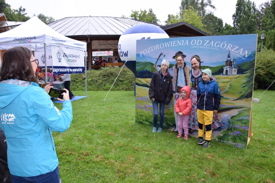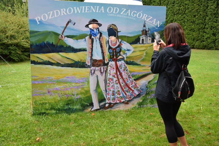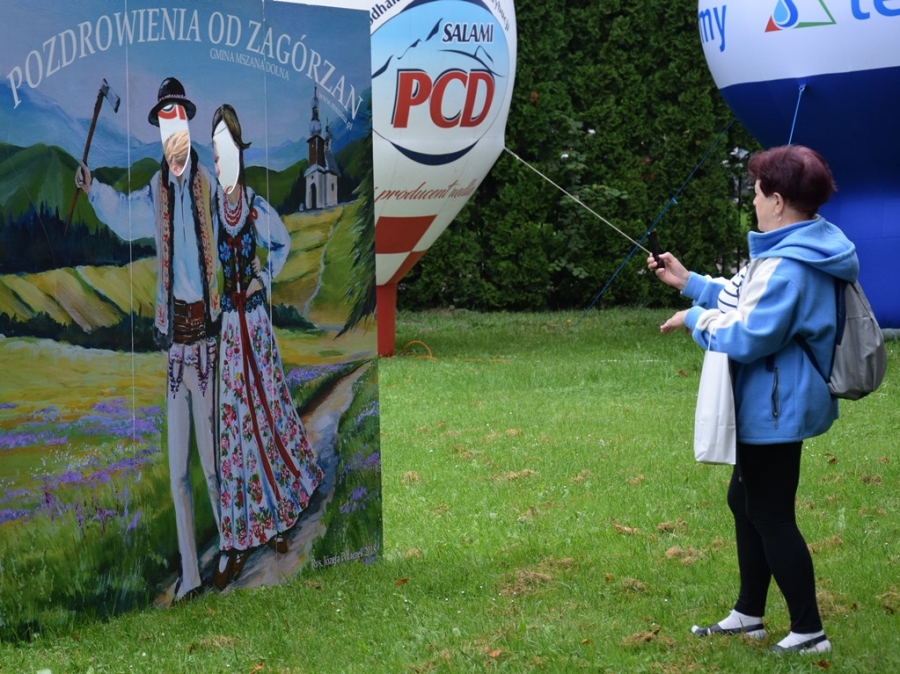 Na imprezie każdy mógł „przymierzyć” strój zagórzański w niezawodnym monidle. Te osobliwe pocztówki, z których uśmiechają się znajome twarze osadzone w regionalnym pejzażu, powędrowały w świat…