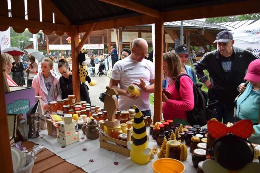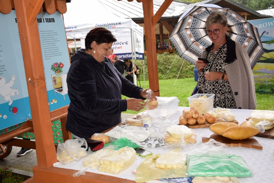 Faktem jest, że wpływy zagórzańskie w Rabce są, a pokrewieństwo dusz czuć za każdym razem, gdy Zagórzańskie Dziedziny się pojawią w uzdrowisku. No właśnie, uzdrowisko, to tym razem słowo – klucz. Na zaproszenie bowiem Uzdrowiska Rabka, organizatora Święta Rabczańskiej Solanki, kreatorzy i partnerzy zagórzańskiej marki lokalnej mogli zaprezentować swoją bogatą ofertę gościom przebywającym w Rabce w sanatoriach. Przy barwnych stoiskach Zagórzańskich Dziedzin nie zabrakło jednak również rdzennych rabczan. A padający z nieba raz po raz rzęsisty deszcz sprzyjał tylko zacieśnianiu więzi i nawiązywaniu serdecznych kontaktów.