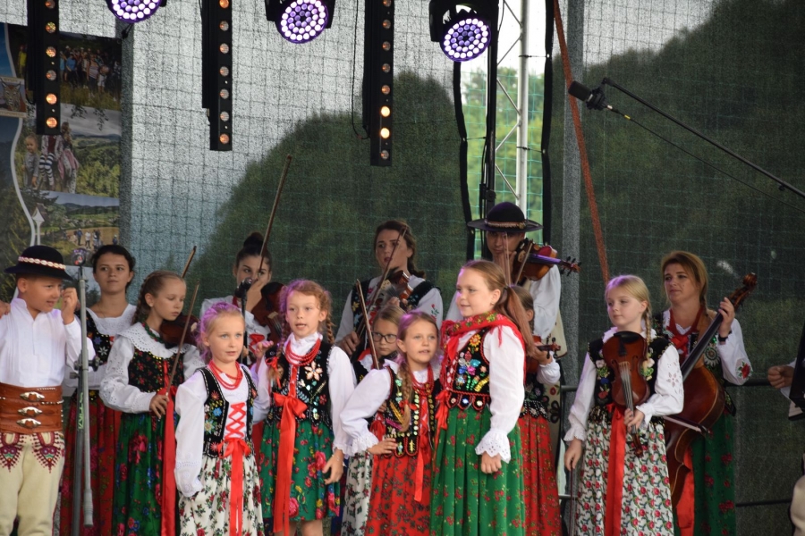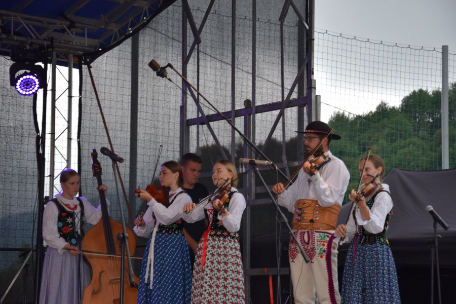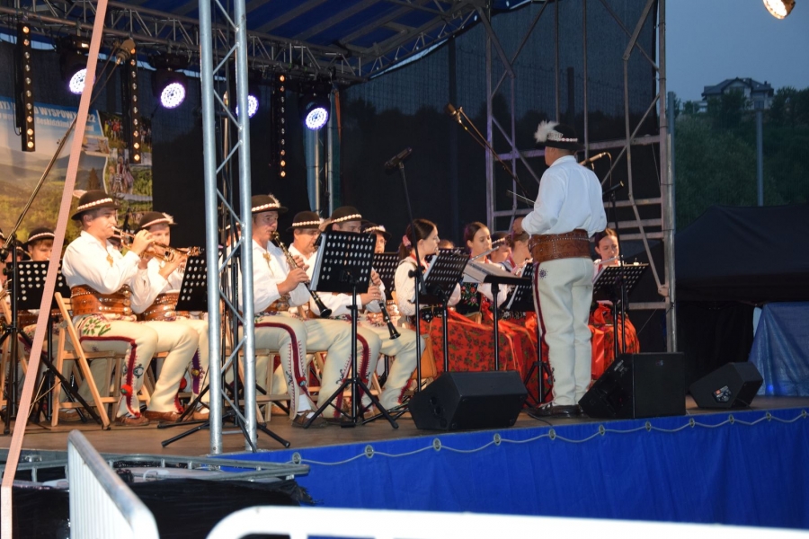 Jako pierwsi wystąpili „Mali Łostowianie”, którzy tańcem i śpiewem wprowadzili gości w wesoły nastrój. Następnie sceną zawładnęła rodzinna kapela „Kościelnioki” z Olszówki, działająca przy Stowarzyszeniu Miłośników Kultury Góralskiej „Pod Cyrlom”. Kapelę tworzy rodzeństwo: Dorota, Marianna, Adrian i Grzegorz Kościelniakowie, od kilku lat współtworzą markę lokalną „Zagórzańskie Dziedziny”. Po występie Dorota Kościelniak poprowadziła warsztaty taneczno-muzyczne „Pieca zadem nie troncojcie”, które cieszyły się dużym zainteresowaniem. W dalszej części festiwalu na scenę wkroczyli gospodarze – „Dolina Mszanki” z Mszany Górnej, pod przewodnictwem Patryka Grzędziaka. Zespół zaprezentował taniec i śpiew, zarówno w wykonaniu grupy młodzieżowej, jak i dorosłej.