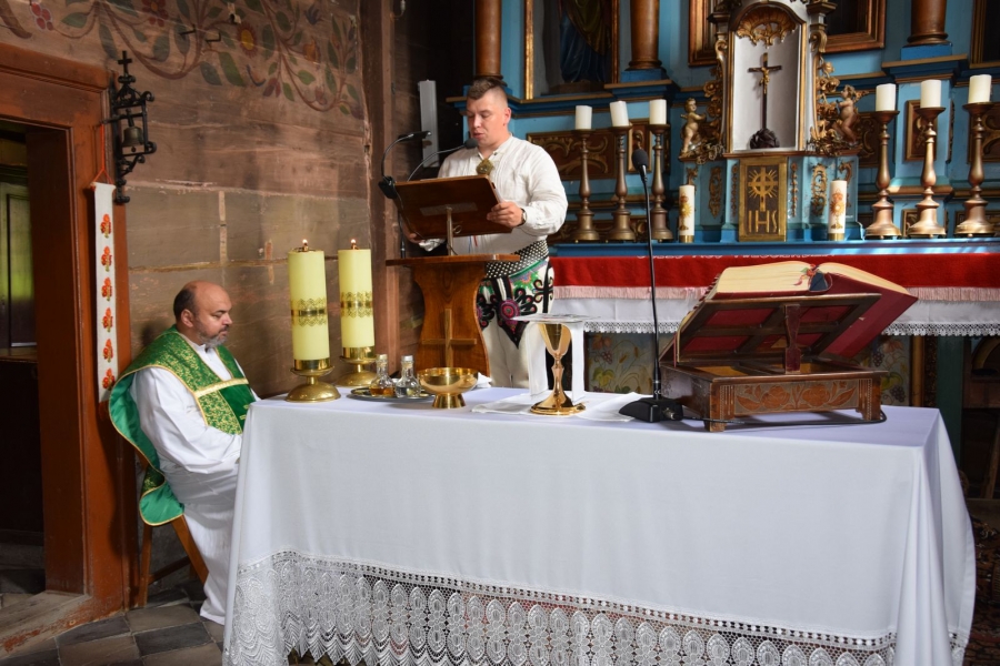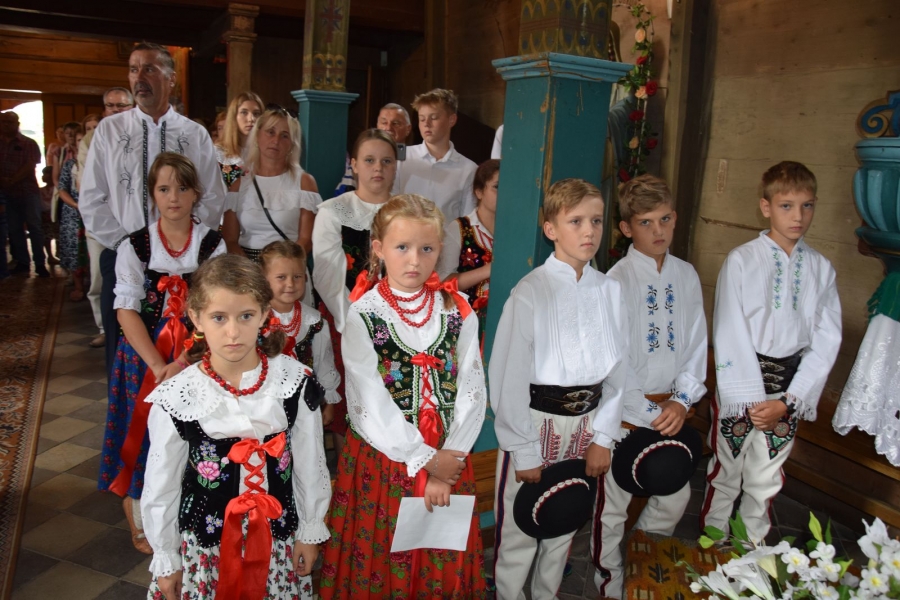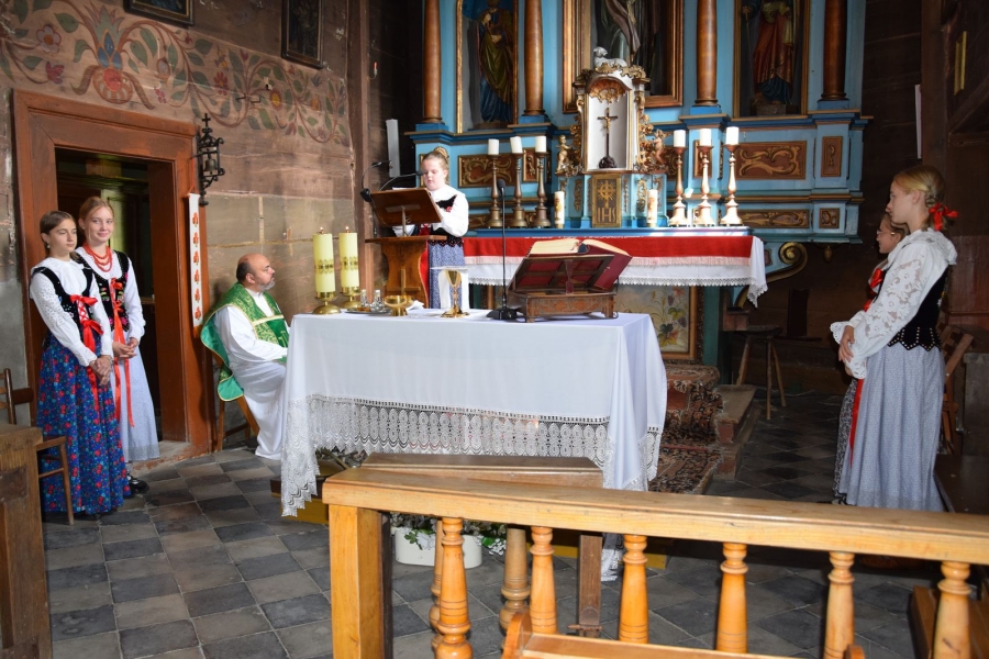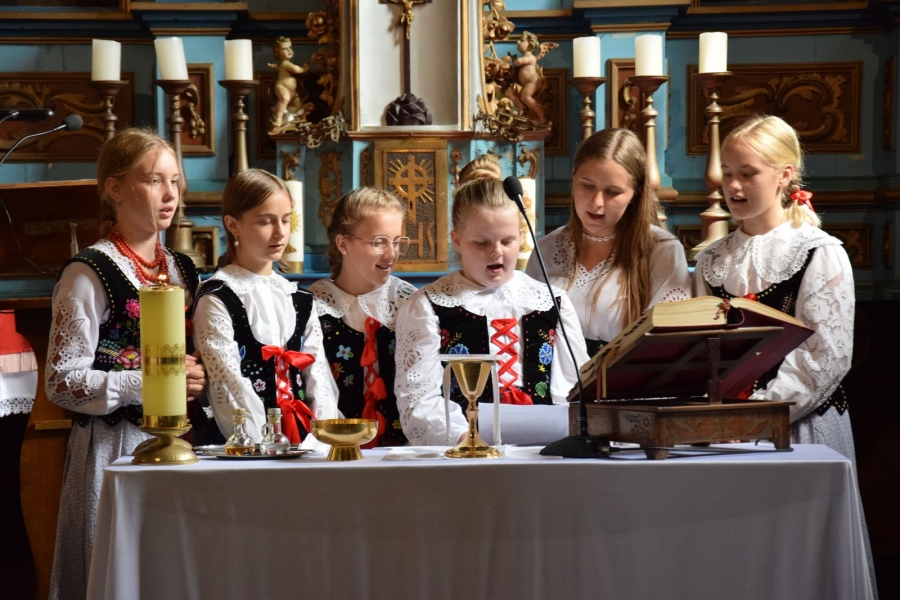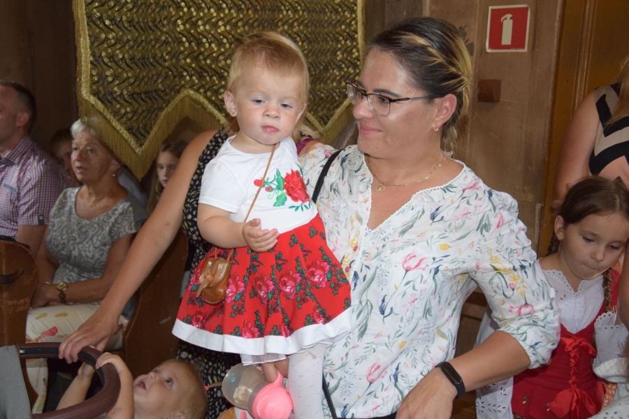 I tym razem, mimo prawdziwego wysypu imprez w okolicy, wnętrza drewnianej świątyni były pełne i radosne. A to za sprawą Zespołu Łętowianie. Jego młodzi członkowie ze swadą pociągający na smykach i ile sił w płucach wyśpiewujący nabożne pieśni skupili na sobie całą uwagę uczestników wydarzenia. W ruch poszły kamery utrwalające te piękne, ulotne chwile. Wzrok przyciągały najmłodsze pociechy wystrojone jak przystało na tę okoliczność; nie do końca jeszcze świadome tego, co się wokół nich dzieje, chłonące jednak tradycje i kulturę swoich przodków.