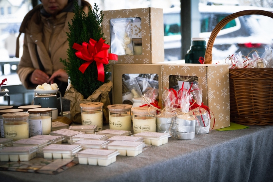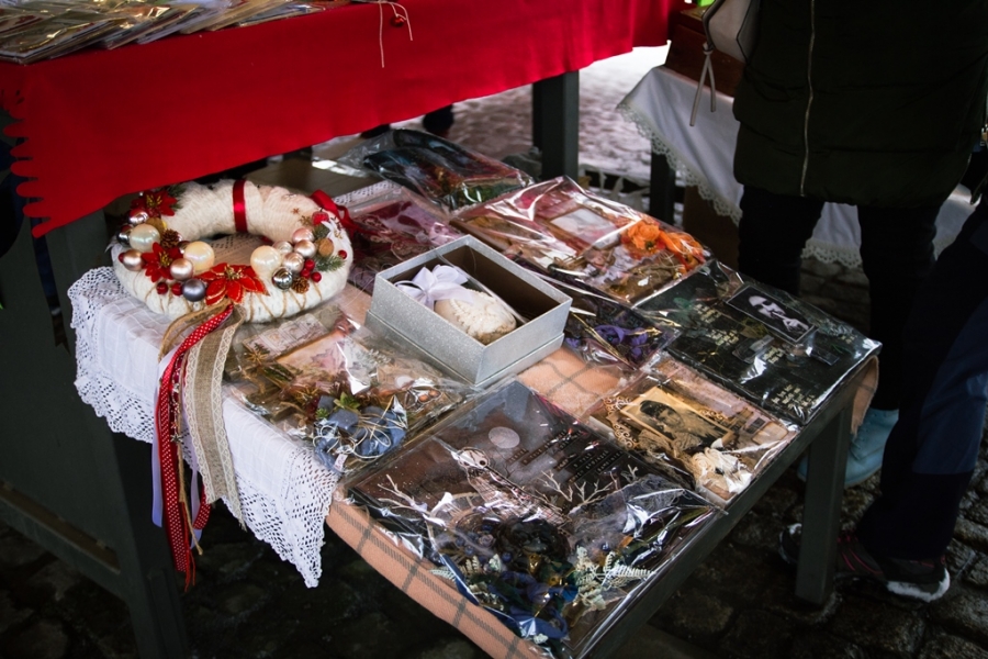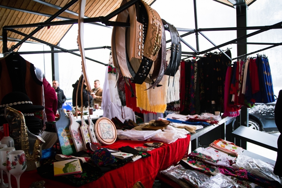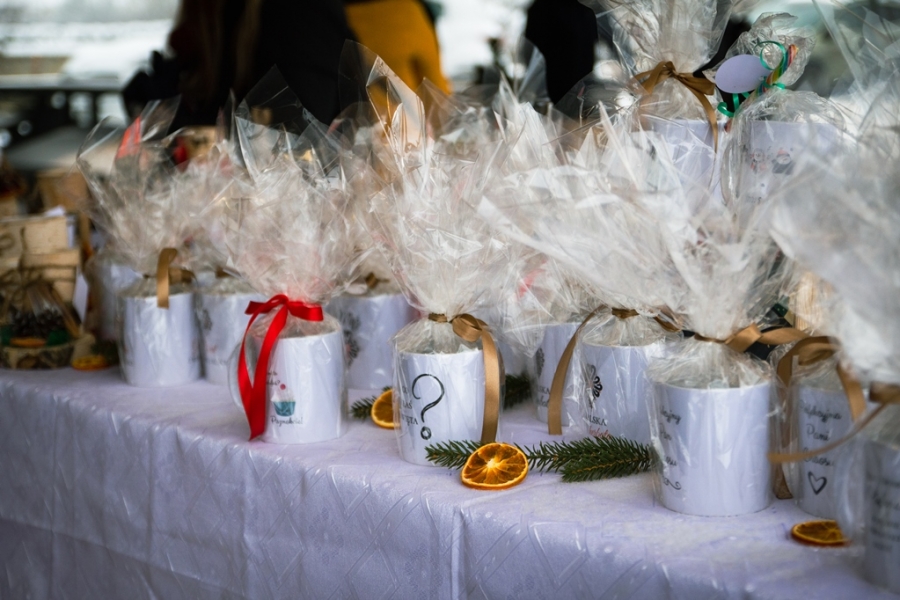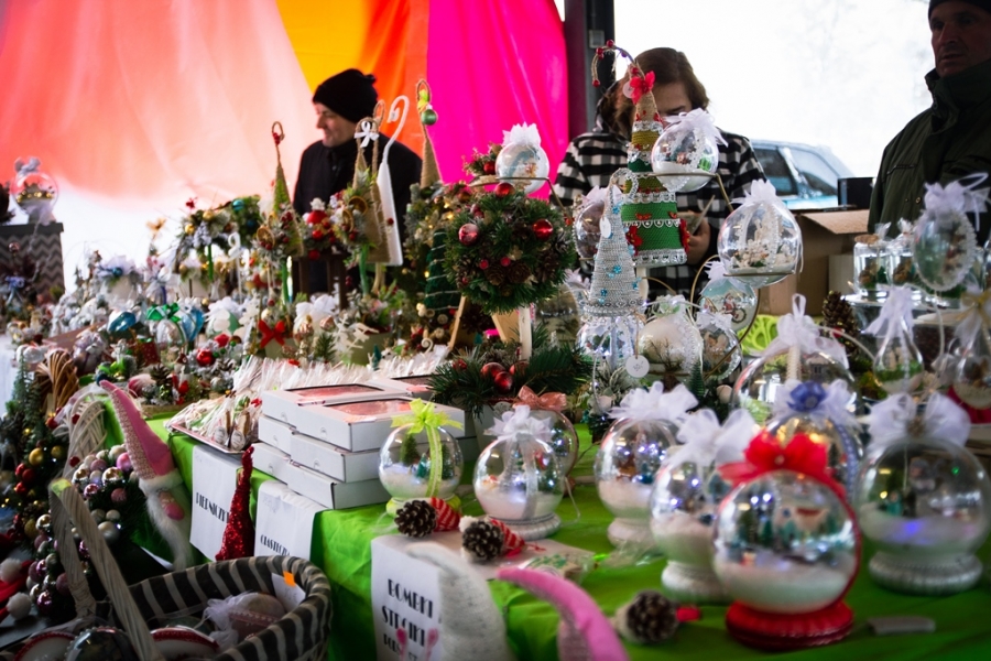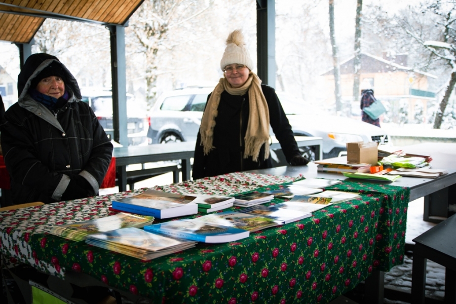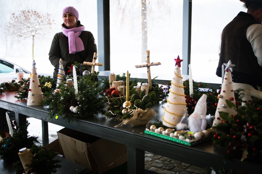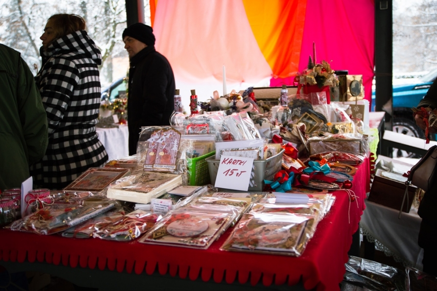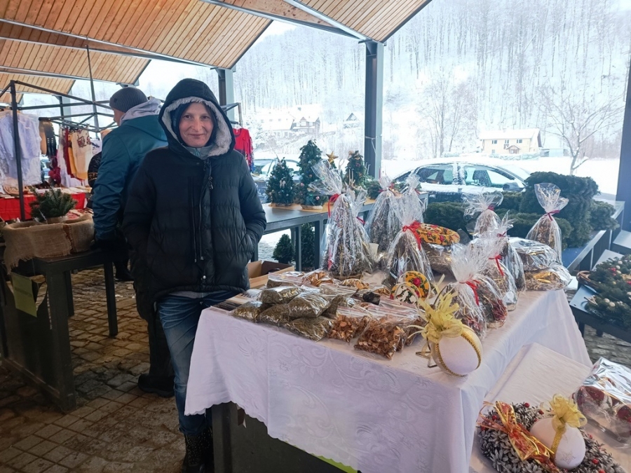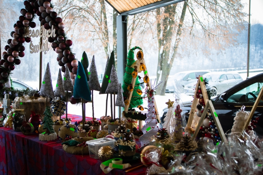 Przewidywania i prognozy pogody sprawdziły się; biały puch otulił cały świat, a jak zaczął sypać - to końca nie było widać... Nie wszyscy, którzy zgłosili się do udziału dotarli na miejsce. Żałujemy bardzo, ale rozumiemy, że warunki nie pozwoliły wyjechać z domu. Kto jednak przyszedł na mszański plac targowy mógł skorzystać z różności, które zapewniało każde ze świątecznych stanowisk. A było ich ponad dwadzieścia - od stoisk ze stroikami, wianuszkami, bombkami, po drobniejsze dekoracyjne świąteczne ozdoby, ozdóbki, kartki świąteczne i zioła… Stroje góralskie, dodatki konfekcyjne ale i ciepłe skarpety również zapraszały do siebie. Zapachami otulało nas stoisko ze świecami, nie zabrakło również pysznych smakołyków: pierniczków, ciasteczek, miodów, serów, a jak ktoś miał szczęście to i smalczyk udało mu się zakupić, choć szybko zniknął... Cieszymy się również, że poszerzyliśmy listę wystawców o nowe propozycje, tym bardziej, że nasze „nabytki” to są lokalni artyści, którzy na kiermasz przywieźli piękne bransoletki, ceramikę, kolorowe czapki i rękawiczki, rzeźbione na zamówienie obrazy, czy artystyczne fotografie przeniesione na płótno. Prężnie działające Stowarzyszenie „Spod Ćwilina” przyjechało do Mszany Dolnej z całą ciężarówką rękodzieła! Można było nabyć również książki lokalnej pisarki i poetki, Władysławy Anny Jamróz, a wszelkie publikacje turystyczne i promujące nasz region rozdawał Powiat Limanowski.