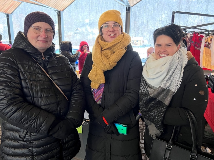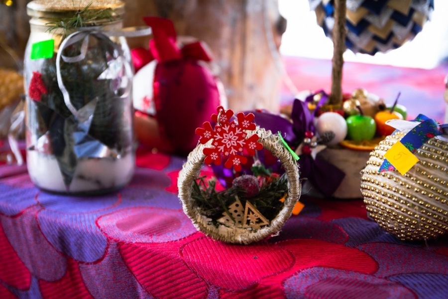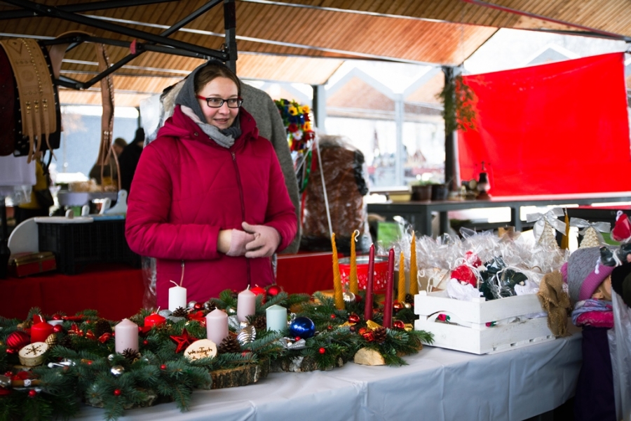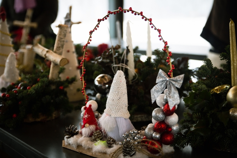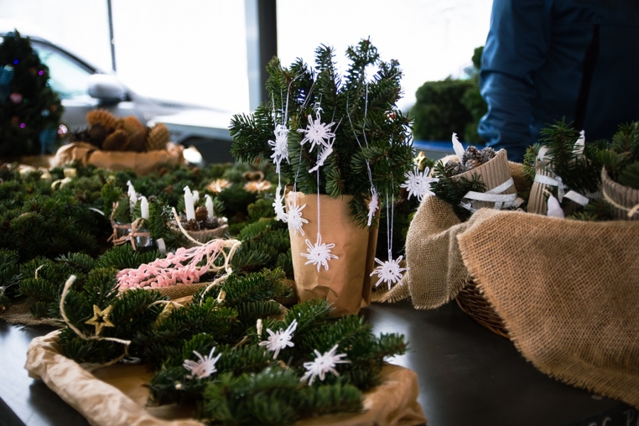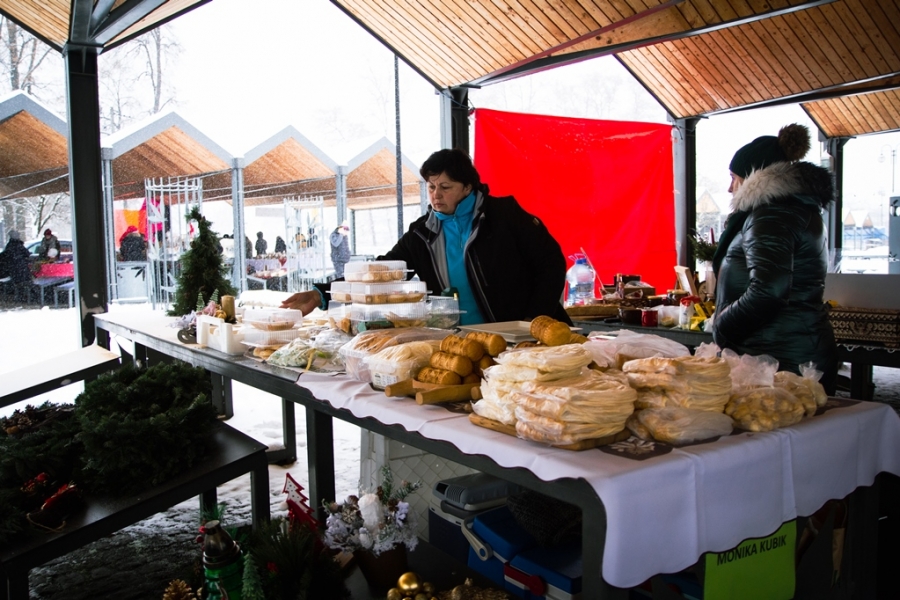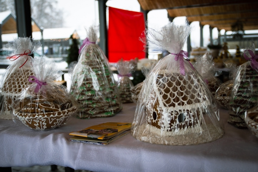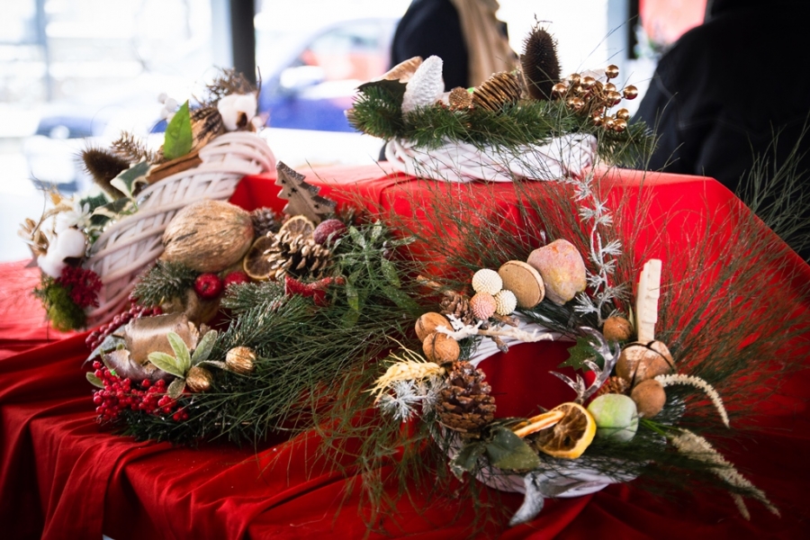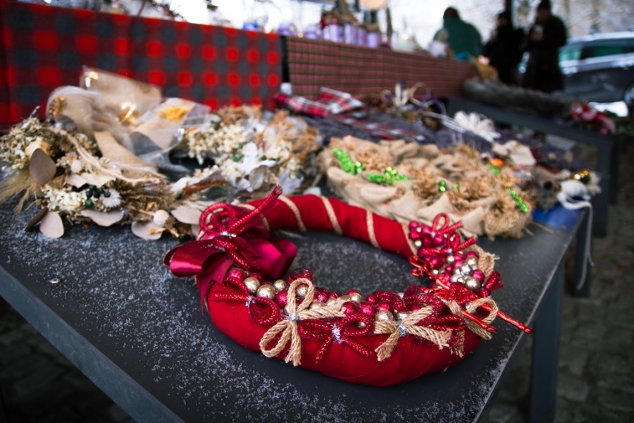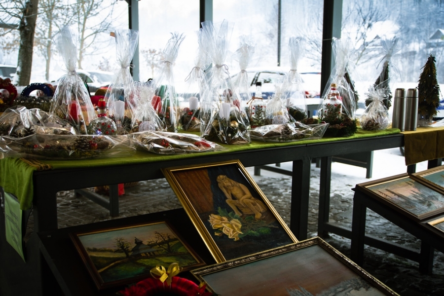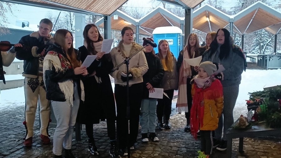 Przewidywania i prognozy pogody sprawdziły się; biały puch otulił cały świat, a jak zaczął sypać - to końca nie było widać... Nie wszyscy, którzy zgłosili się do udziału dotarli na miejsce. Żałujemy bardzo, ale rozumiemy, że warunki nie pozwoliły wyjechać z domu. Kto jednak przyszedł na mszański plac targowy mógł skorzystać z różności, które zapewniało każde ze świątecznych stanowisk. A było ich ponad dwadzieścia - od stoisk ze stroikami, wianuszkami, bombkami, po drobniejsze dekoracyjne świąteczne ozdoby, ozdóbki, kartki świąteczne i zioła… Stroje góralskie, dodatki konfekcyjne ale i ciepłe skarpety również zapraszały do siebie. Zapachami otulało nas stoisko ze świecami, nie zabrakło również pysznych smakołyków: pierniczków, ciasteczek, miodów, serów, a jak ktoś miał szczęście to i smalczyk udało mu się zakupić, choć szybko zniknął... Cieszymy się również, że poszerzyliśmy listę wystawców o nowe propozycje, tym bardziej, że nasze „nabytki” to są lokalni artyści, którzy na kiermasz przywieźli piękne bransoletki, ceramikę, kolorowe czapki i rękawiczki, rzeźbione na zamówienie obrazy, czy artystyczne fotografie przeniesione na płótno. Prężnie działające Stowarzyszenie „Spod Ćwilina” przyjechało do Mszany Dolnej z całą ciężarówką rękodzieła! Można było nabyć również książki lokalnej pisarki i poetki, Władysławy Anny Jamróz, a wszelkie publikacje turystyczne i promujące nasz region rozdawał Powiat Limanowski.