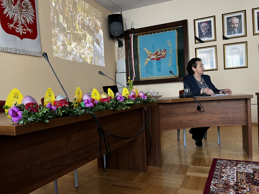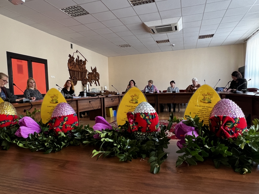 Drugą część spotkania kontynuowano w Urzędzie Miasta. Teofila Latoś przedstawiła odczyt na temat dawnych zwyczajów dot. Świąt Wielkiej Nocy.