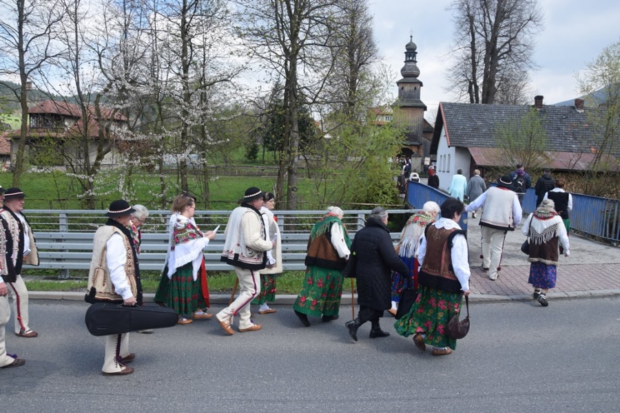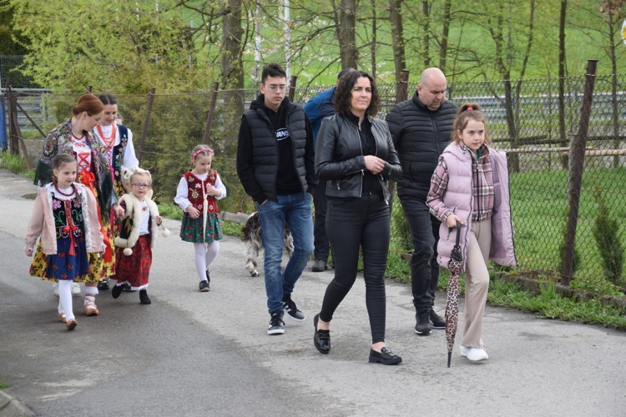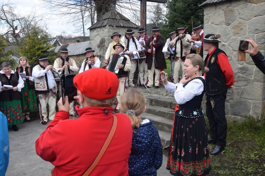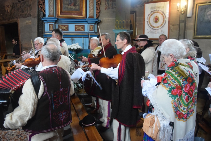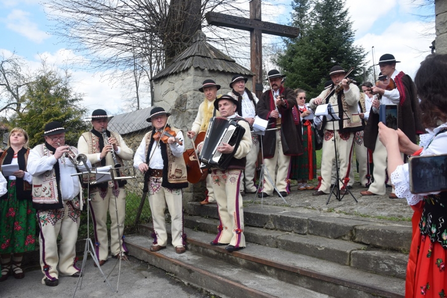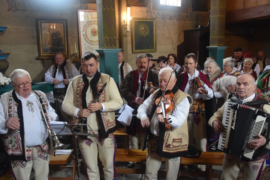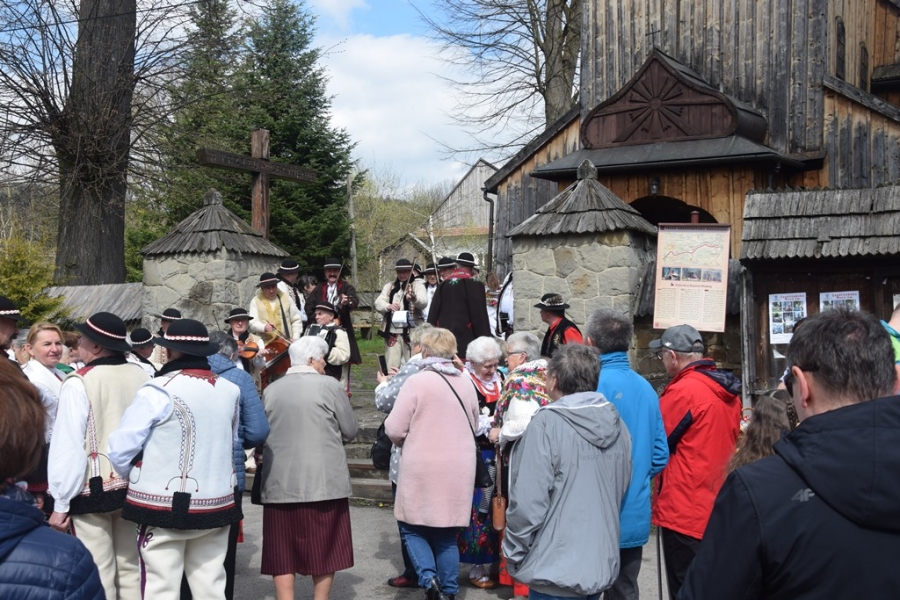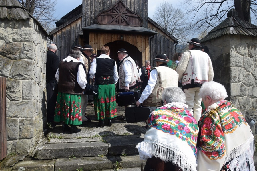 Jak to zwykle bywa – po wspólnej modlitwie grupa wyszła na niewielki plac przed kościół, aby jeszcze zagrać kilka bardziej żwawych melodii. Kto dobrze przyjrzał się Asyście Zagórzańskiej, mógł dokonać zaskakującego odkrycia – główny trzon stanowią osoby z bogatym doświadczeniem życiowym, ale mające w sobie tyle życia i ochoty do wspólnych działań, że nie przeszkadzają im w tym ograniczenia zdrowotne. Tym bardziej, że grają i śpiewają, a pary nie brakuje! Wzruszenie pojawiło się na twarzach naszych dziewczyn ze stowarzyszenia „Pod Cyrlom” kiedy patrzyły na muzyków i słychać było tylko ciche: „tak jak Dziadek, tak jak Dziadek”. To siła emocji, która najbardziej chwyta za serce, bo takie spotkania łączą ze sobą pokolenia. Taki był zamysł, tak zrodził się pomysł Zagórzańskiej Mszy św. - by przypomnieć sobie dawne pieśni, przyjść do kościoła w stroju zagórzańskim i spotkać się z innymi, tak na luzie i bez pośpiechu. I już pojawiły się rozmowy o majówkach i kolejnych planach na wiosenne miesiące. Nawet nasza, Zagórzańska, a jakże!, Asysta wracając do domu, jakby na przywołanie tematu do którego podczas Mszy św. nawiązał celebrans „zaczyna się miesiąc wielbienia Matki Bożej” – zaczęła już umawiać się na majówki…