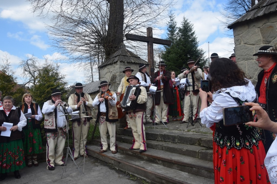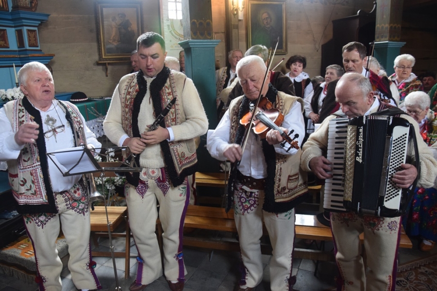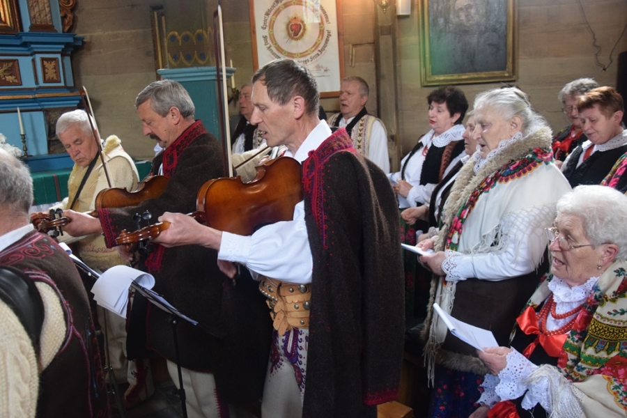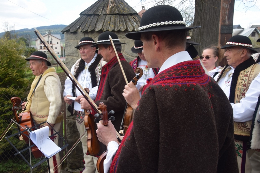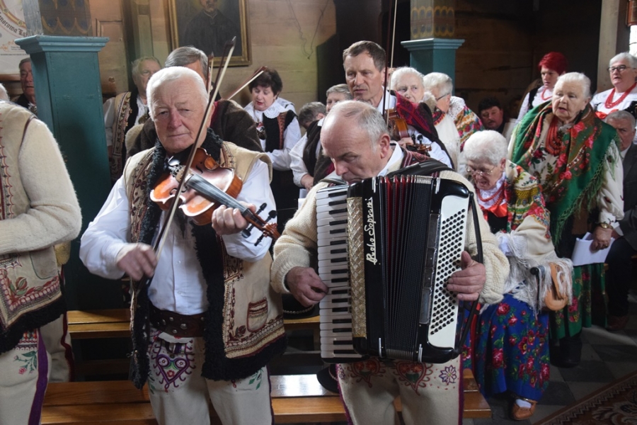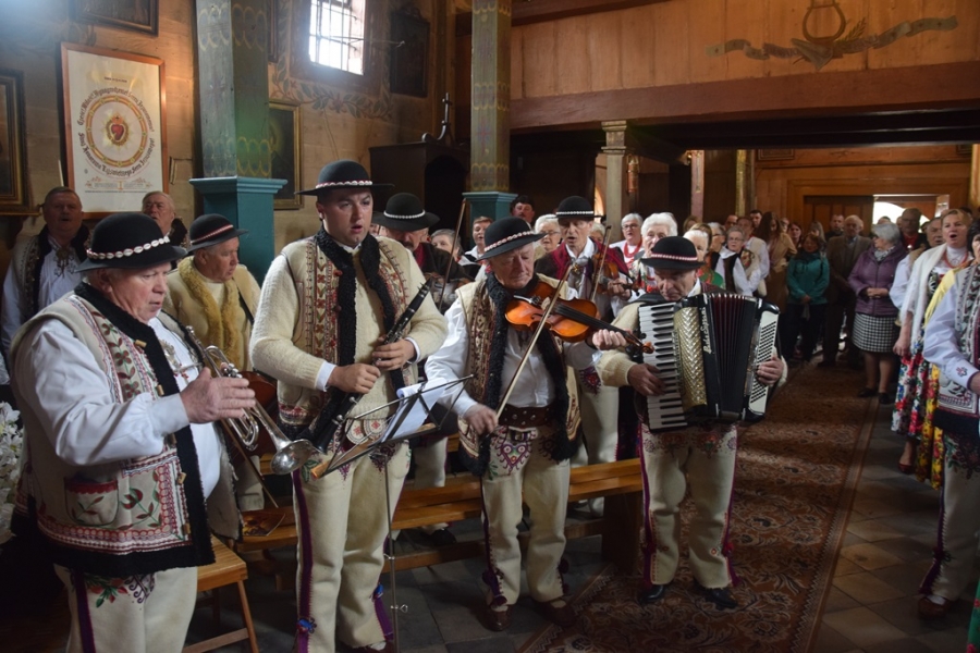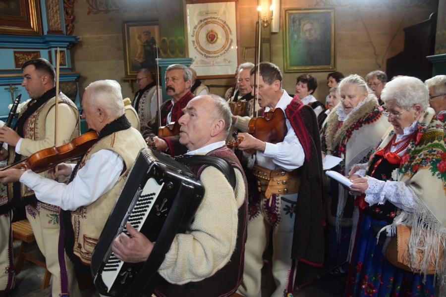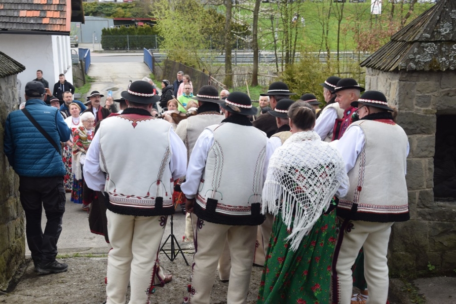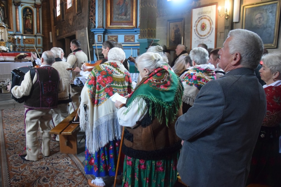 Jak to zwykle bywa – po wspólnej modlitwie grupa wyszła na niewielki plac przed kościół, aby jeszcze zagrać kilka bardziej żwawych melodii. Kto dobrze przyjrzał się Asyście Zagórzańskiej, mógł dokonać zaskakującego odkrycia – główny trzon stanowią osoby z bogatym doświadczeniem życiowym, ale mające w sobie tyle życia i ochoty do wspólnych działań, że nie przeszkadzają im w tym ograniczenia zdrowotne. Tym bardziej, że grają i śpiewają, a pary nie brakuje! Wzruszenie pojawiło się na twarzach naszych dziewczyn ze stowarzyszenia „Pod Cyrlom” kiedy patrzyły na muzyków i słychać było tylko ciche: „tak jak Dziadek, tak jak Dziadek”. To siła emocji, która najbardziej chwyta za serce, bo takie spotkania łączą ze sobą pokolenia. Taki był zamysł, tak zrodził się pomysł Zagórzańskiej Mszy św. - by przypomnieć sobie dawne pieśni, przyjść do kościoła w stroju zagórzańskim i spotkać się z innymi, tak na luzie i bez pośpiechu. I już pojawiły się rozmowy o majówkach i kolejnych planach na wiosenne miesiące. Nawet nasza, Zagórzańska, a jakże!, Asysta wracając do domu, jakby na przywołanie tematu do którego podczas Mszy św. nawiązał celebrans „zaczyna się miesiąc wielbienia Matki Bożej” – zaczęła już umawiać się na majówki…