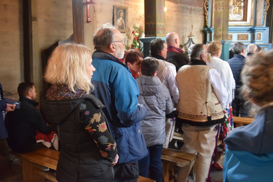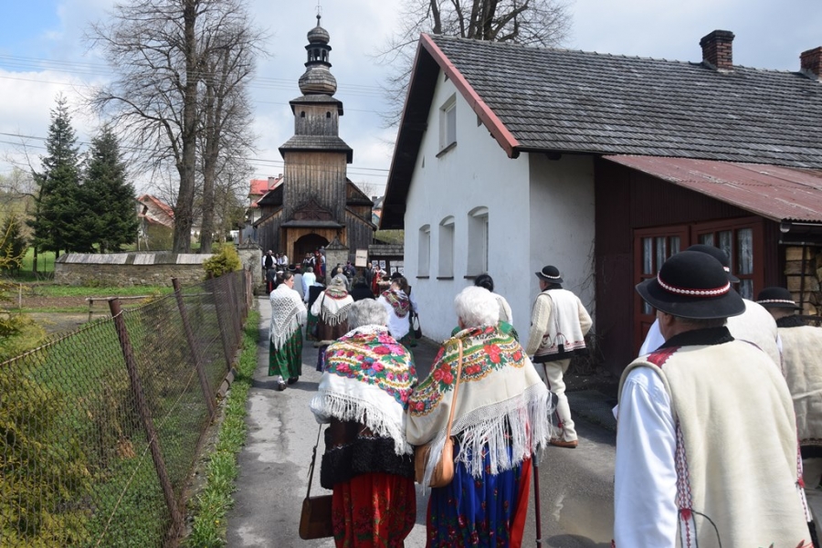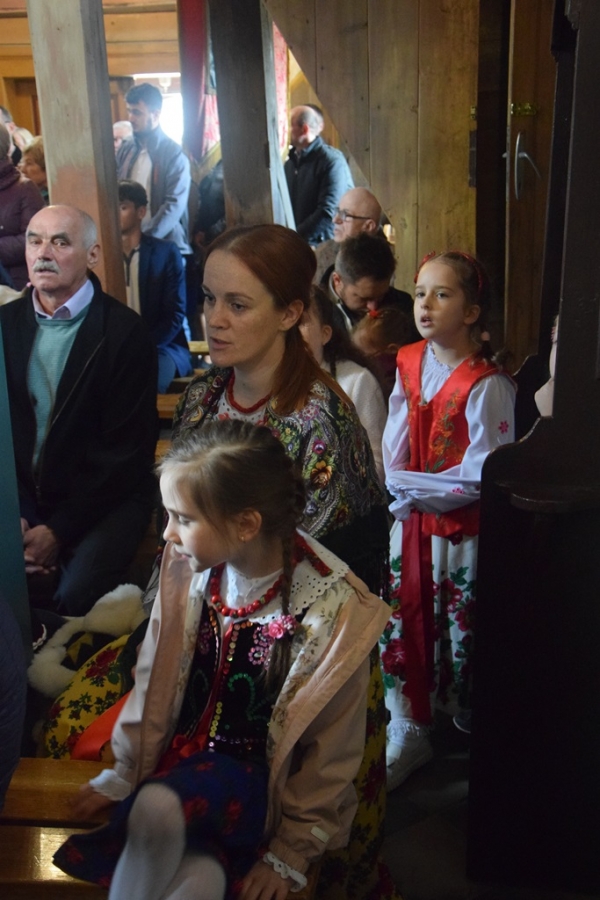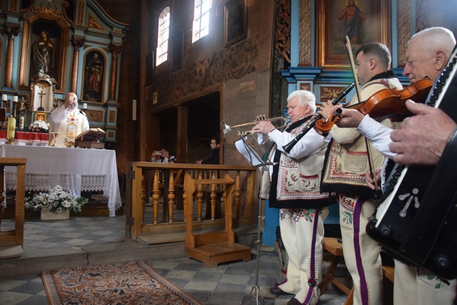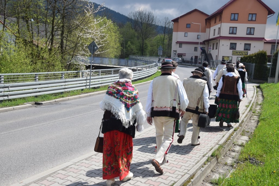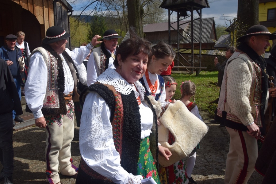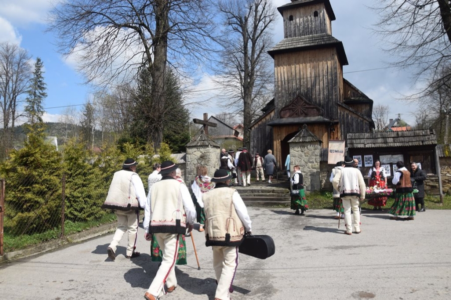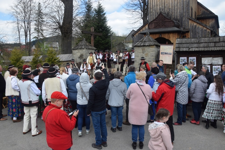Jak to zwykle bywa – po wspólnej modlitwie grupa wyszła na niewielki plac przed kościół, aby jeszcze zagrać kilka bardziej żwawych melodii. Kto dobrze przyjrzał się Asyście Zagórzańskiej, mógł dokonać zaskakującego odkrycia – główny trzon stanowią osoby z bogatym doświadczeniem życiowym, ale mające w sobie tyle życia i ochoty do wspólnych działań, że nie przeszkadzają im w tym ograniczenia zdrowotne. Tym bardziej, że grają i śpiewają, a pary nie brakuje! Wzruszenie pojawiło się na twarzach naszych dziewczyn ze stowarzyszenia „Pod Cyrlom” kiedy patrzyły na muzyków i słychać było tylko ciche: „tak jak Dziadek, tak jak Dziadek”. To siła emocji, która najbardziej chwyta za serce, bo takie spotkania łączą ze sobą pokolenia. Taki był zamysł, tak zrodził się pomysł Zagórzańskiej Mszy św. - by przypomnieć sobie dawne pieśni, przyjść do kościoła w stroju zagórzańskim i spotkać się z innymi, tak na luzie i bez pośpiechu. I już pojawiły się rozmowy o majówkach i kolejnych planach na wiosenne miesiące. Nawet nasza, Zagórzańska, a jakże!, Asysta wracając do domu, jakby na przywołanie tematu do którego podczas Mszy św. nawiązał celebrans „zaczyna się miesiąc wielbienia Matki Bożej” – zaczęła już umawiać się na majówki…