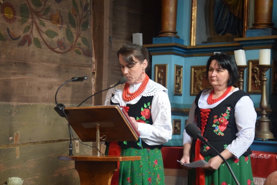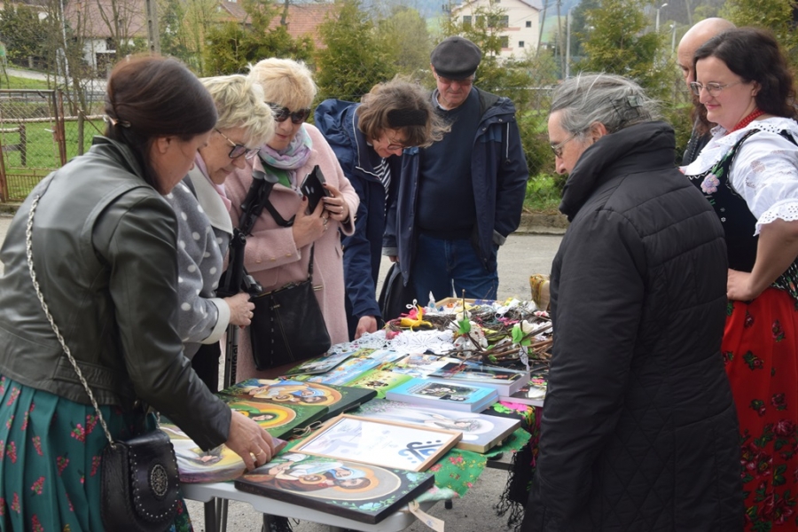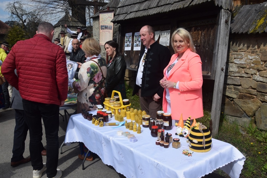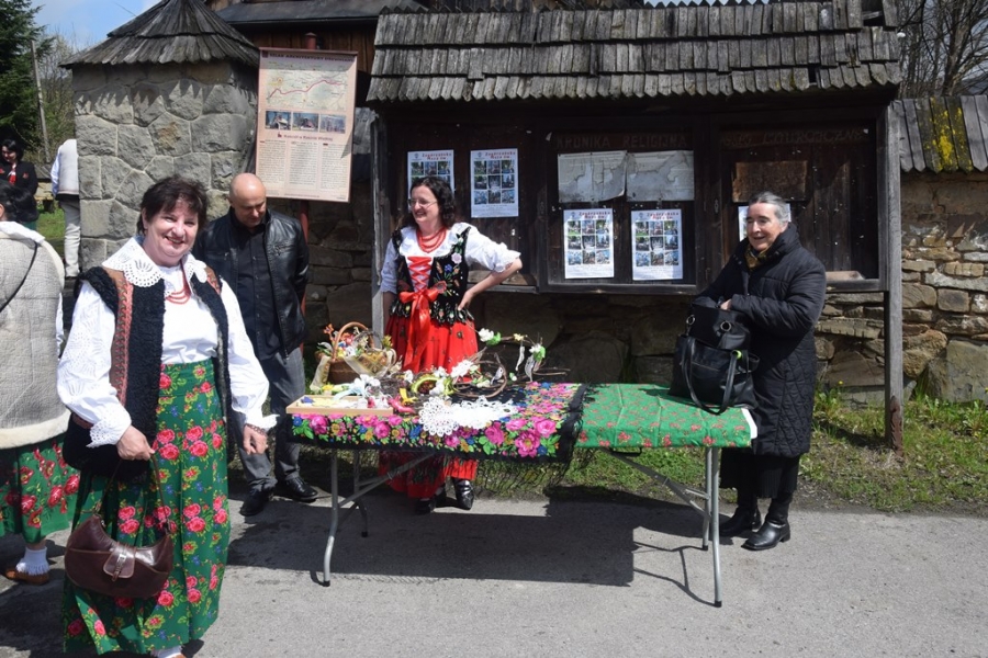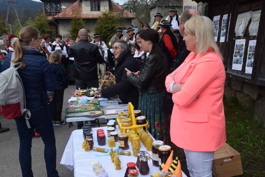 Na zakończenie nie sposób pominąć stoiska, które jak zawsze towarzyszy temu wydarzeniu. Tym razem była to Maria Knapczyk ze swoim i swojej siostry -Urszuli Kołodziej - delikatnym i koronkowym rękodziełem, Władysława Anna Jamróz z regionalnymi publikacjami, które wyszły spod jej pióra oraz -świeżo po otrzymaniu certyfikatu Znaku Promocyjnego Zagórzańskie Dziedziny: Józefa Potaczek i jej piękne malarskie prace – Drzewiane łobrozki, a także Monika i Piotr Woźniakowie z Pasieki u Piotra Woźniaka z Koniny z miodami i pszczelimi produktami.