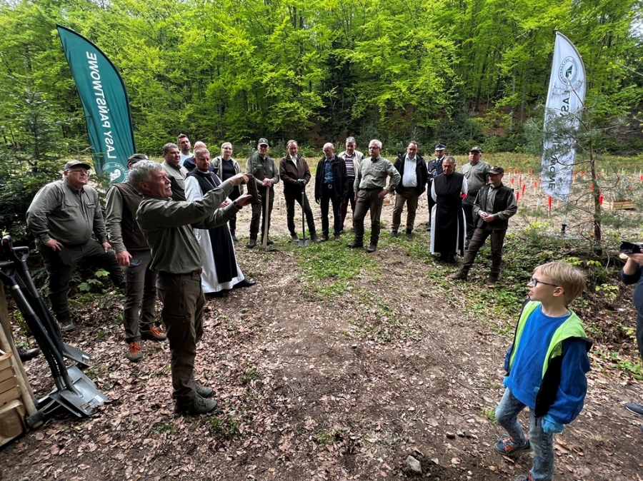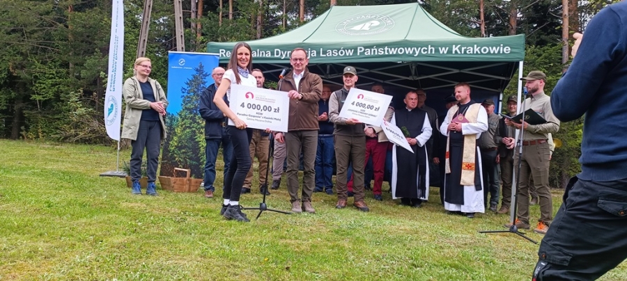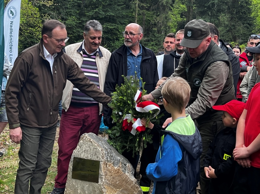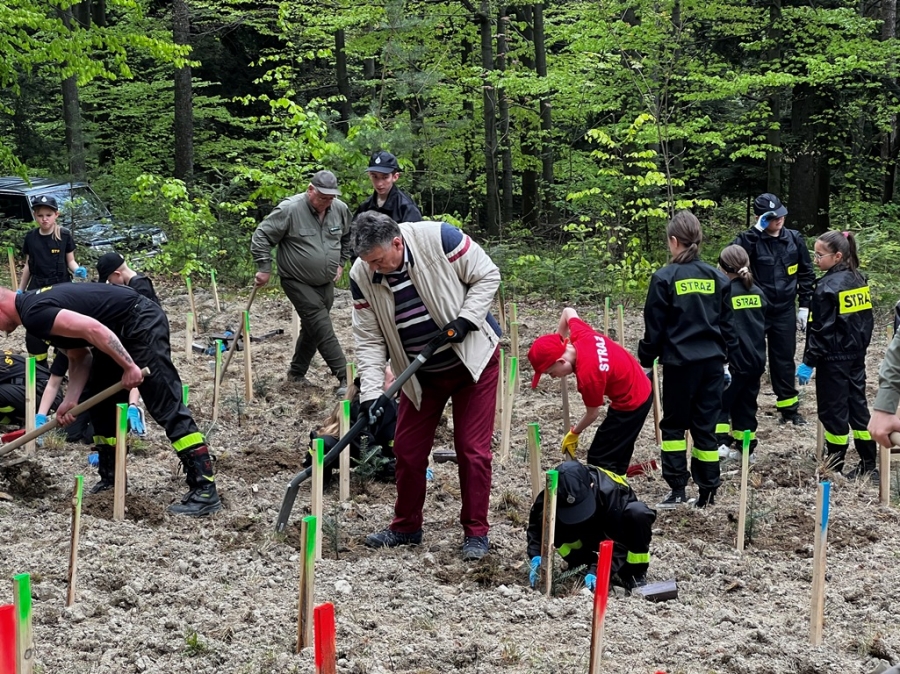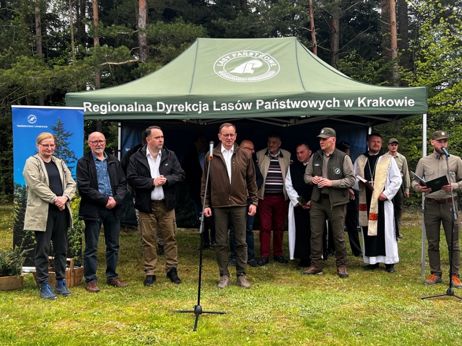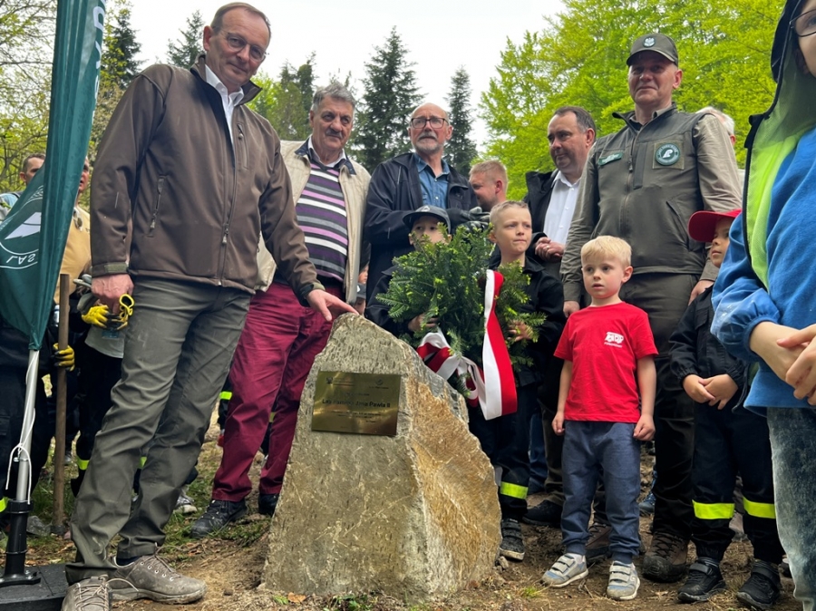 Anna Pękała, Burmistrz Miasta Mszana Dolna oraz Bolesław Żaba, Wójt Gminy Mszana Dolna, posadzili kilka wiązów na wejściu do tego młodego jeszcze lasu, w pobliżu obelisku z pamiątkową tablicą, a Monika i Marianna Kościelniak ze Stowarzyszenia Miłośników Kultury Góralskiej Pod Cyrlom z Olszówki (ta druga to również aktywna uczennica Zespołu Szkół Techniczno – Informatycznych w Mszanie Dolnej) całą alejkę jodeł. Sadzonki jodeł, lip, czereśni i wiązów, z których wyrośnie bioróżnorodny las mieszany, sadzili leśnicy wspólnie z przedstawicielami wielu partnerów społecznych, urzędów i instytucji oraz okoliczni pszczelarze i druhowie OSP.