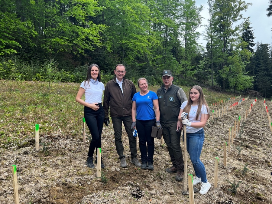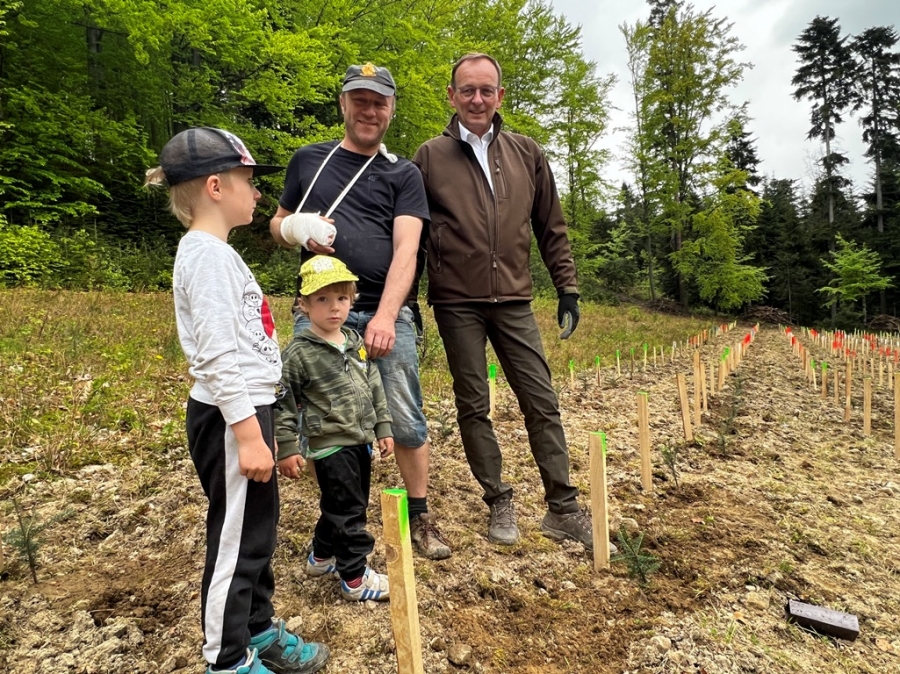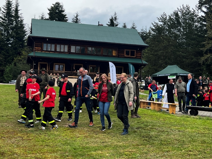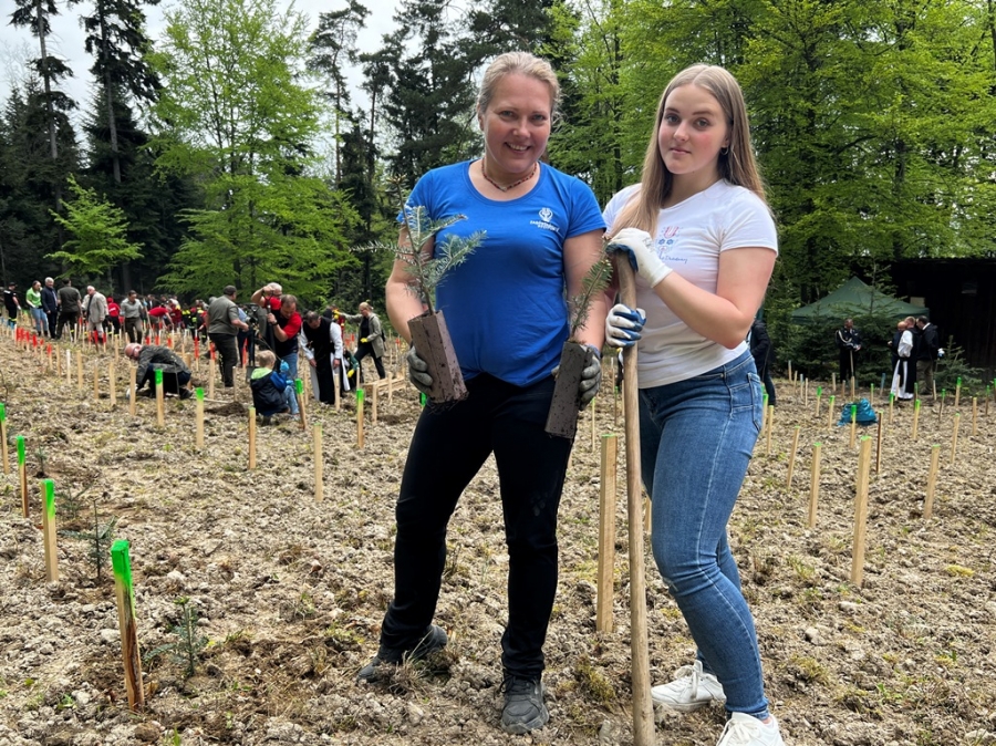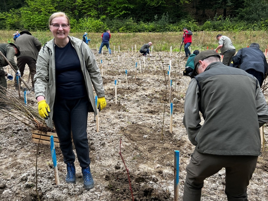 Anna Pękała, Burmistrz Miasta Mszana Dolna oraz Bolesław Żaba, Wójt Gminy Mszana Dolna, posadzili kilka wiązów na wejściu do tego młodego jeszcze lasu, w pobliżu obelisku z pamiątkową tablicą, a Monika i Marianna Kościelniak ze Stowarzyszenia Miłośników Kultury Góralskiej Pod Cyrlom z Olszówki (ta druga to również aktywna uczennica Zespołu Szkół Techniczno – Informatycznych w Mszanie Dolnej) całą alejkę jodeł. Sadzonki jodeł, lip, czereśni i wiązów, z których wyrośnie bioróżnorodny las mieszany, sadzili leśnicy wspólnie z przedstawicielami wielu partnerów społecznych, urzędów i instytucji oraz okoliczni pszczelarze i druhowie OSP.