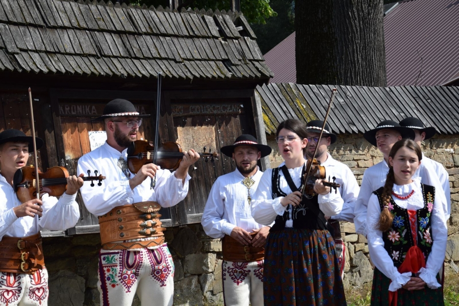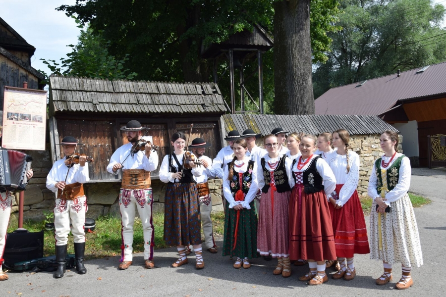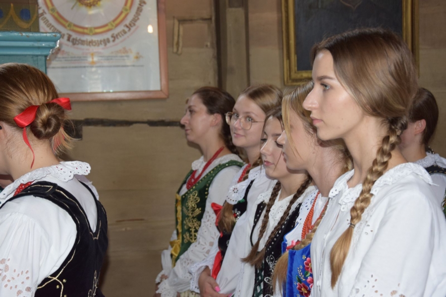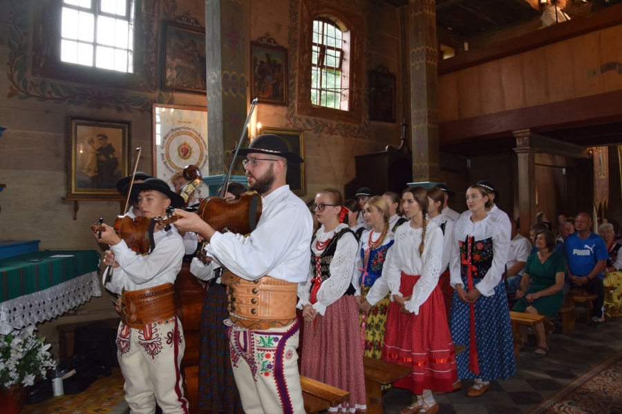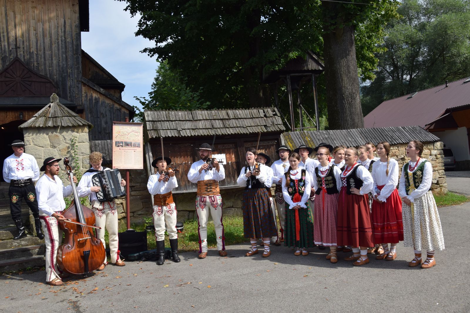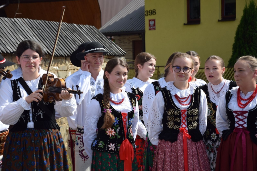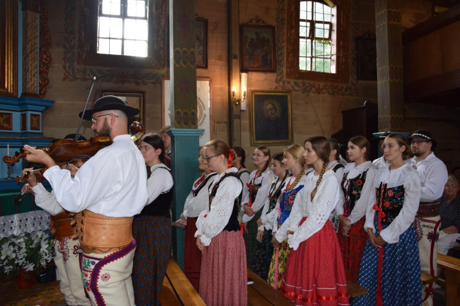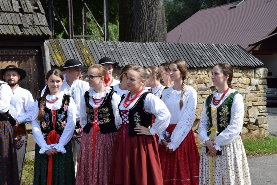 Młodzi, uśmiechnięci, wypoczęci i gotowi na edukacyjne wyzwania i obowiązki zaprezentowali się z najlepszej strony. Grupa prowadzona przez Patryka Grzędziaka i Tobiasza Krzysztofa zdobywa laury na przeróżnych konkursach i przeglądach prezentując nasz region i zagórzańską schedę. Jesteśmy z nich niezmiernie dumni! Uczestnicy regionalnej Eucharystii mieli okazję wysłuchać pięknej oprawy muzycznej i liturgicznej, jak również dodatkowego występu na placu przed kościołem. Tym razem, wyjątkowo nie było z nami lokalnych twórców i producentów, bo siły w tym dniu przeniesiono na Trusiówkę w Lubomierzu, gdzie odbywała się „Niedziela w Gorczańskim Parku Narodowym”.