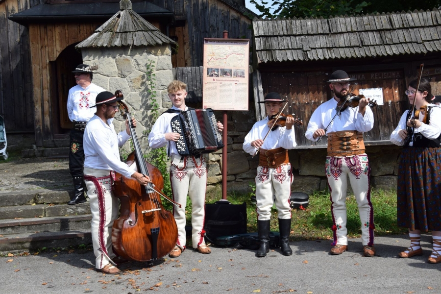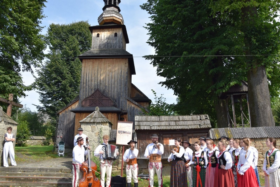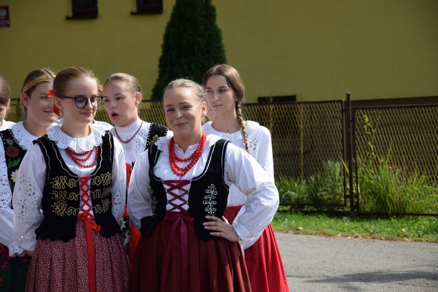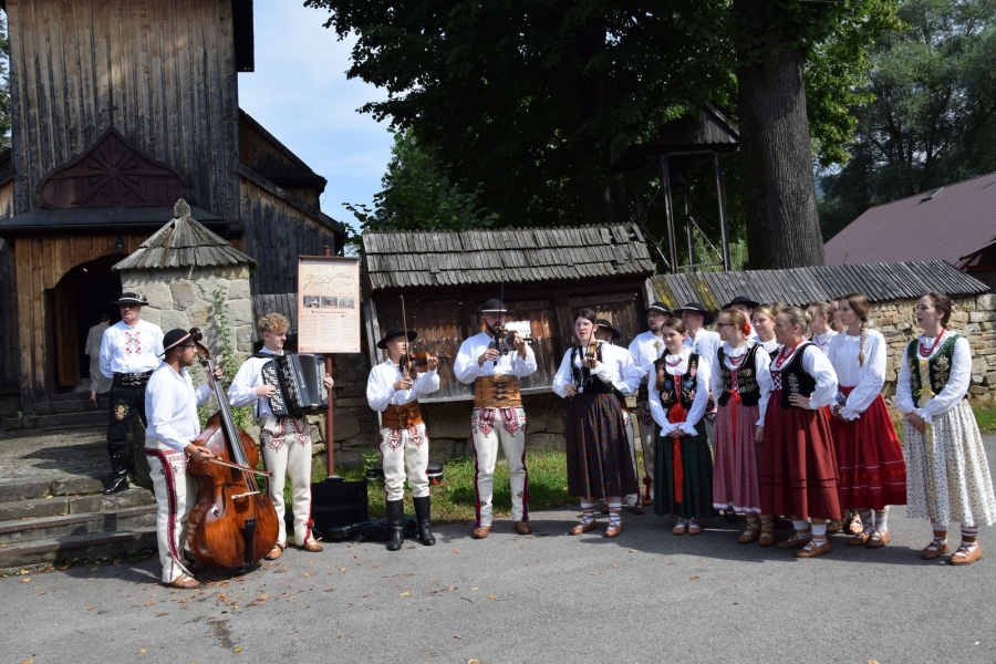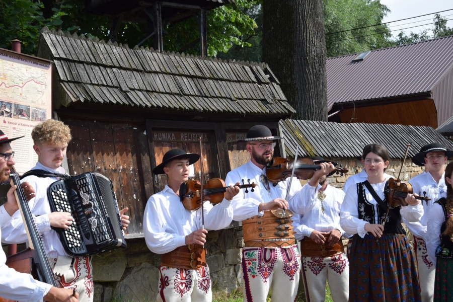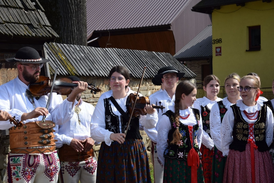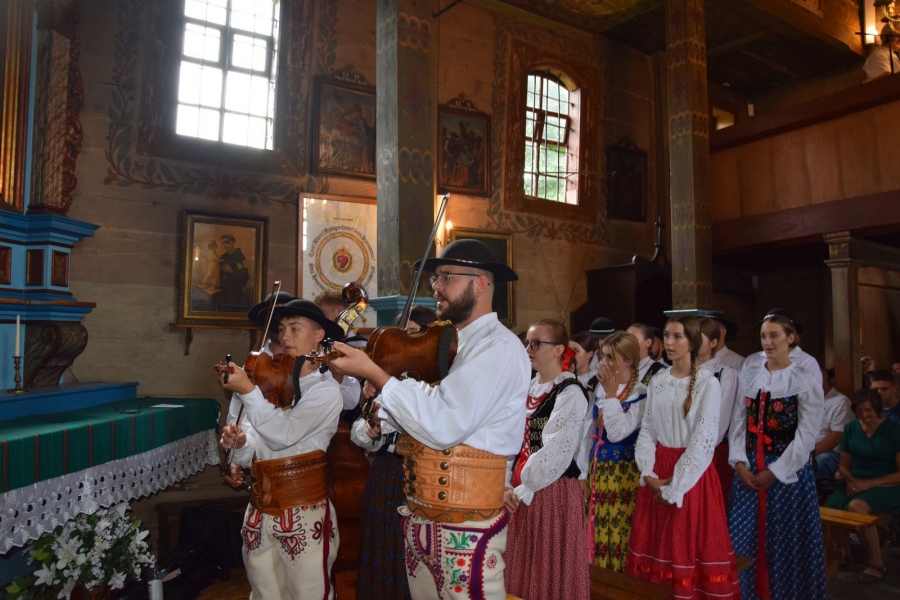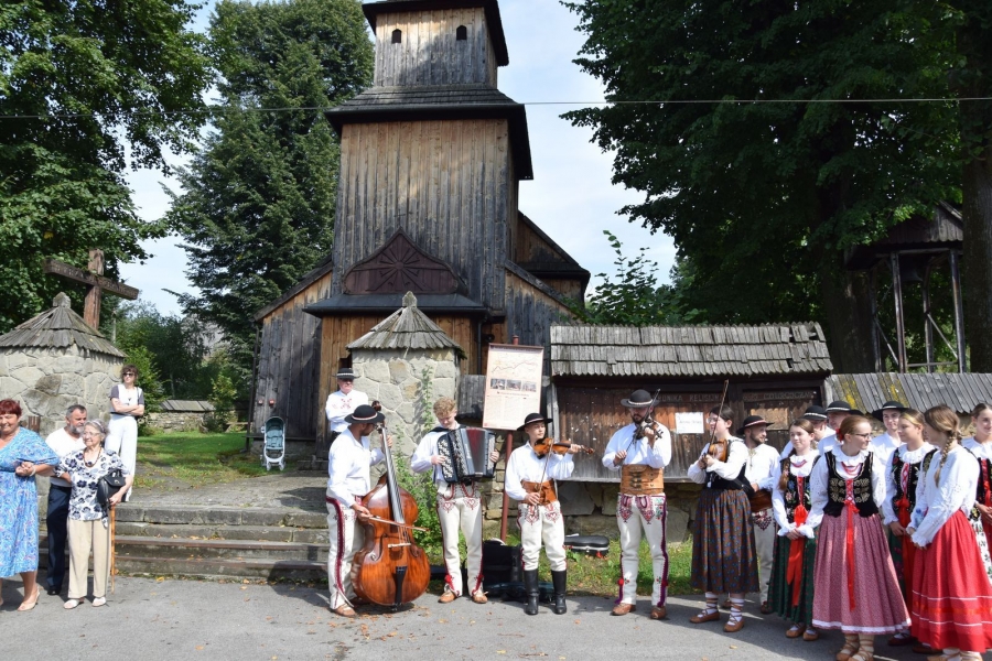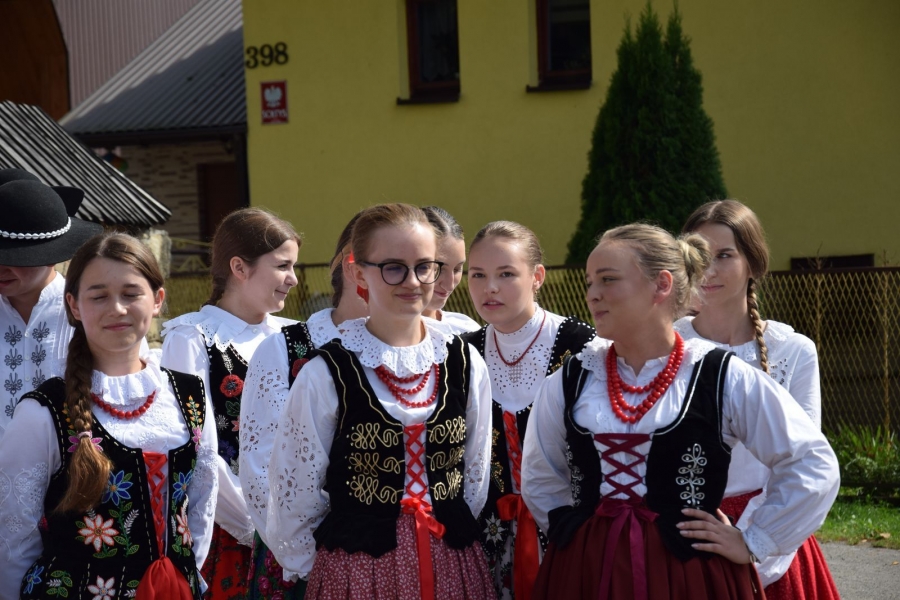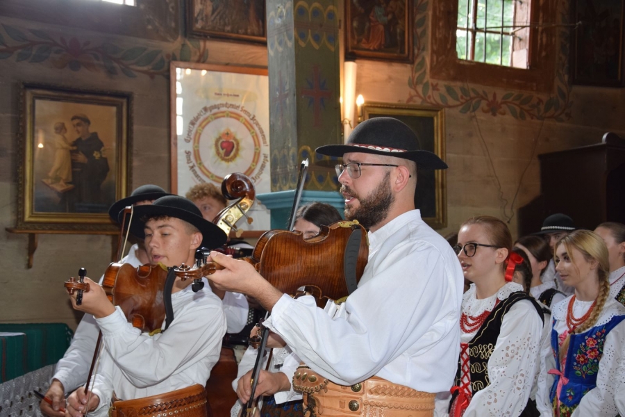 Młodzi, uśmiechnięci, wypoczęci i gotowi na edukacyjne wyzwania i obowiązki zaprezentowali się z najlepszej strony. Grupa prowadzona przez Patryka Grzędziaka i Tobiasza Krzysztofa zdobywa laury na przeróżnych konkursach i przeglądach prezentując nasz region i zagórzańską schedę. Jesteśmy z nich niezmiernie dumni! Uczestnicy regionalnej Eucharystii mieli okazję wysłuchać pięknej oprawy muzycznej i liturgicznej, jak również dodatkowego występu na placu przed kościołem. Tym razem, wyjątkowo nie było z nami lokalnych twórców i producentów, bo siły w tym dniu przeniesiono na Trusiówkę w Lubomierzu, gdzie odbywała się „Niedziela w Gorczańskim Parku Narodowym”.