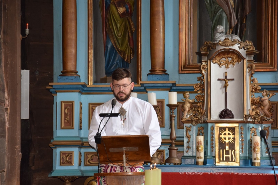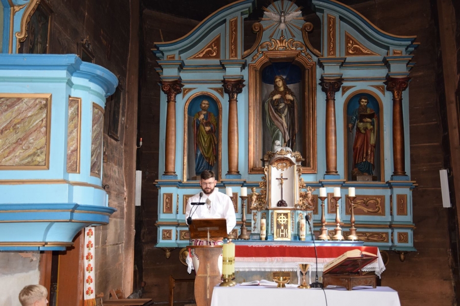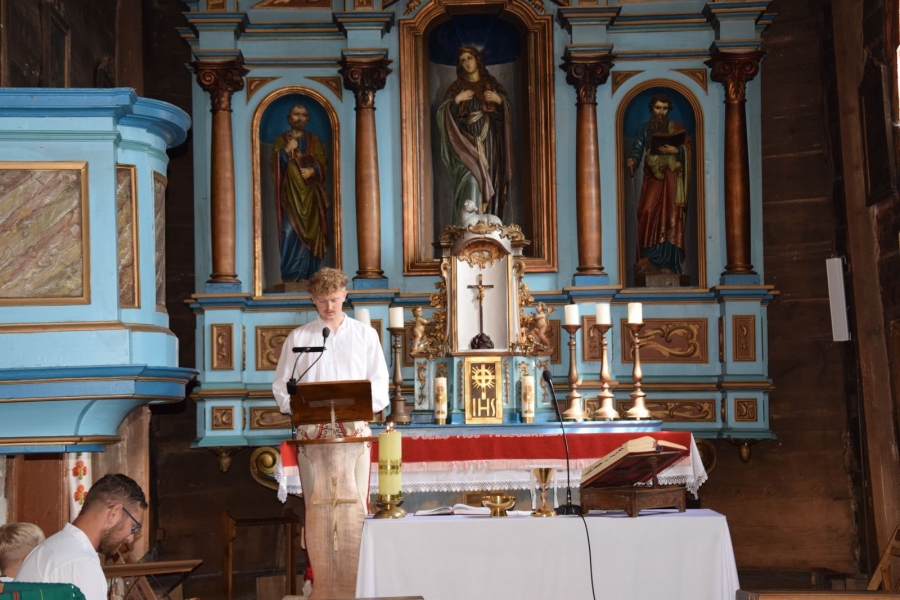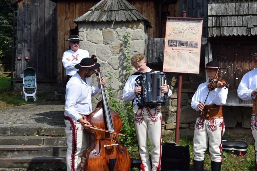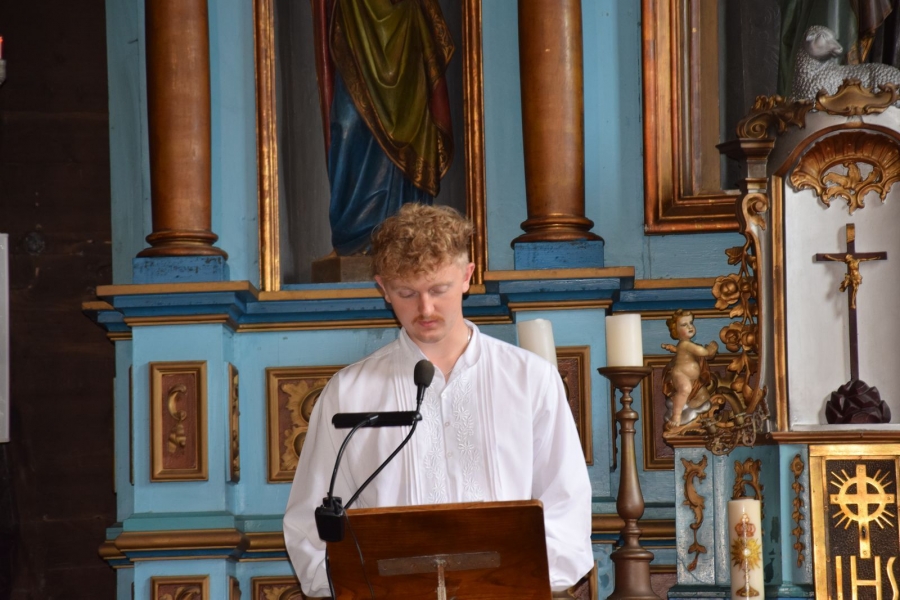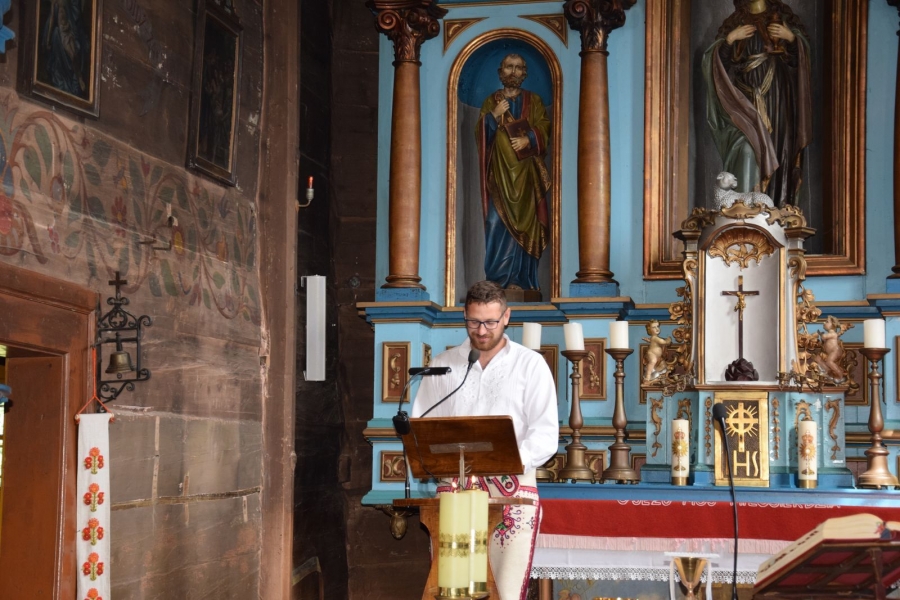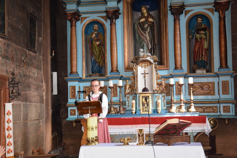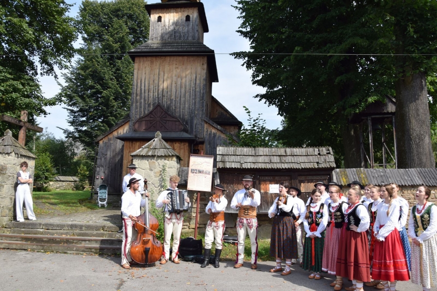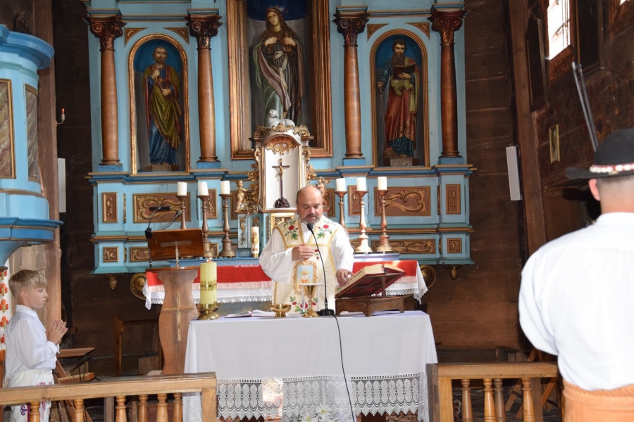 Młodzi, uśmiechnięci, wypoczęci i gotowi na edukacyjne wyzwania i obowiązki zaprezentowali się z najlepszej strony. Grupa prowadzona przez Patryka Grzędziaka i Tobiasza Krzysztofa zdobywa laury na przeróżnych konkursach i przeglądach prezentując nasz region i zagórzańską schedę. Jesteśmy z nich niezmiernie dumni! Uczestnicy regionalnej Eucharystii mieli okazję wysłuchać pięknej oprawy muzycznej i liturgicznej, jak również dodatkowego występu na placu przed kościołem. Tym razem, wyjątkowo nie było z nami lokalnych twórców i producentów, bo siły w tym dniu przeniesiono na Trusiówkę w Lubomierzu, gdzie odbywała się „Niedziela w Gorczańskim Parku Narodowym”.