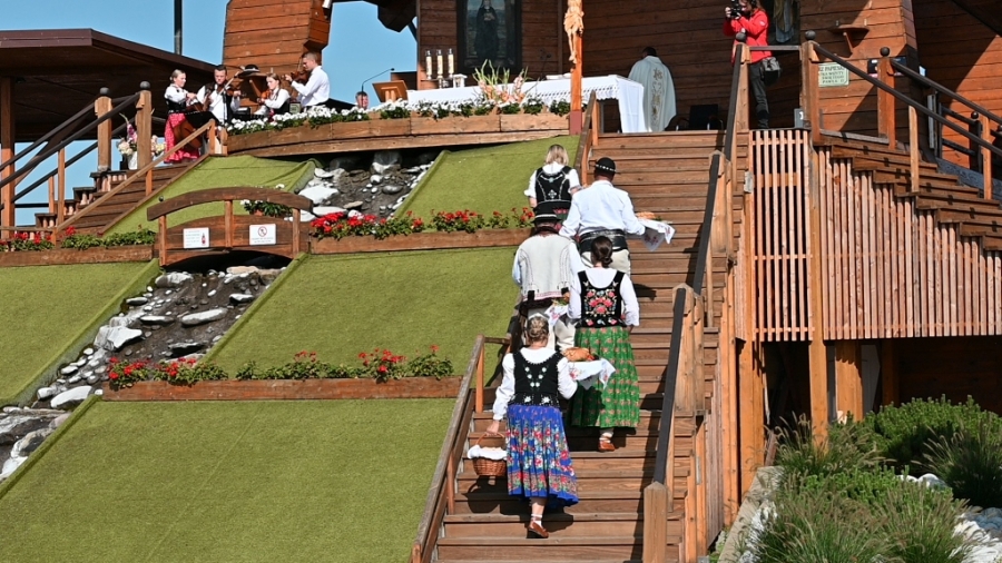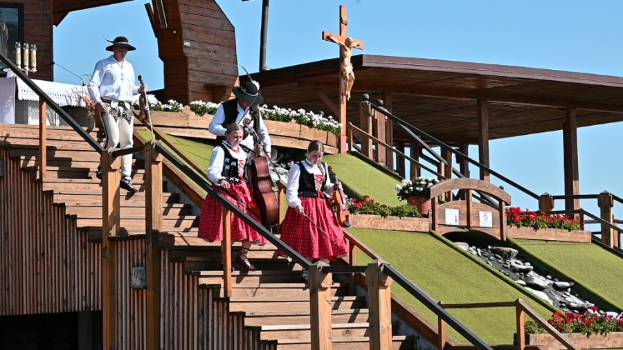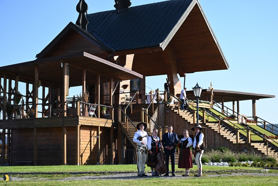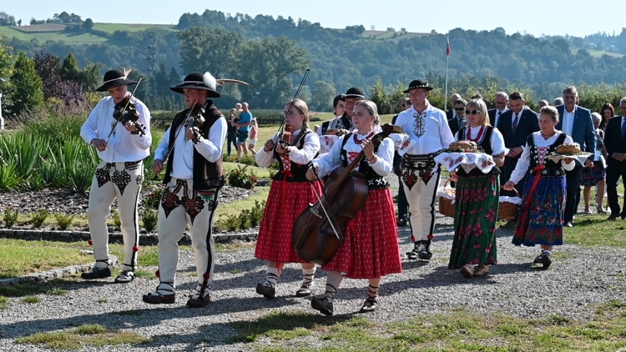 Wydarzenie zainaugurowano Mszą św. sprawowaną na papieskim ołtarzu polowym. Od zeszłego roku bowiem miejsce Agropromocji to Diecezjalne Centrum Pielgrzymowania im. Jana Pawła II, a gościny udziela wszystkim wystawcom i organizatorom Dyrektor DCP, ks. Paweł Broński. Oprawę Eucharystii zapewniła kapela Kościelniaków, a zagórzańska reprezentacja ustawiła się u stóp ołtarza, gdyż po złożeniu chlebów w darze ołtarza zaplanowano uroczyste przejście w korowodzie. Nie zabrakło przedstawicieli samorządów, i parlamentarzystów związanych z regionem oraz przedstawicieli instytucji działających na rzecz rolników, a nas wspierał osobiście Bolesław Żaba, Wójt Gminy Mszana Dolna, inicjator i koordynator marki lokalnej Zagórzańskie Dziedziny.