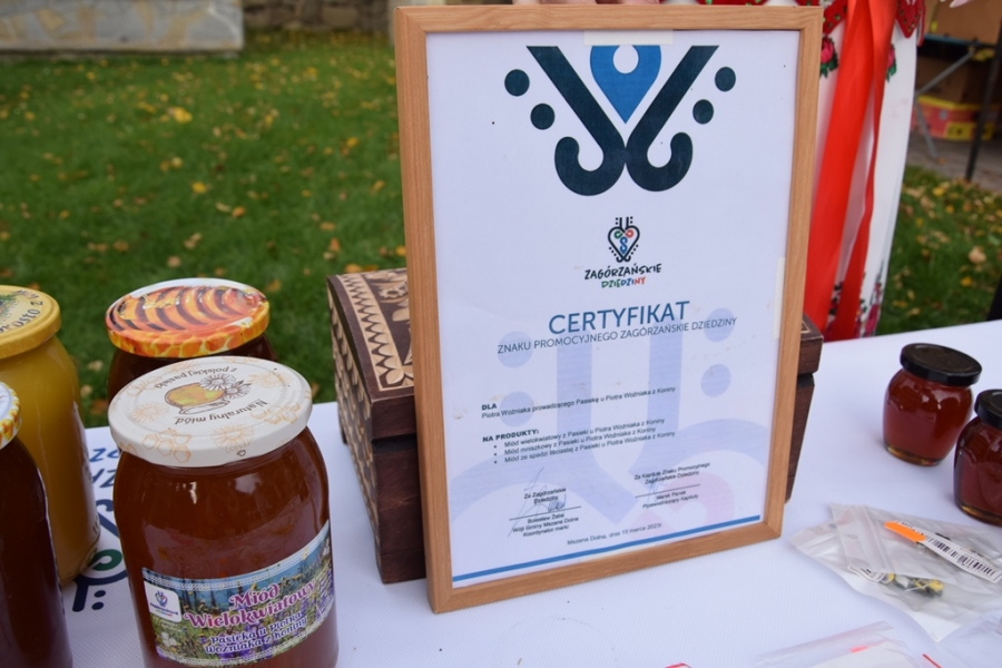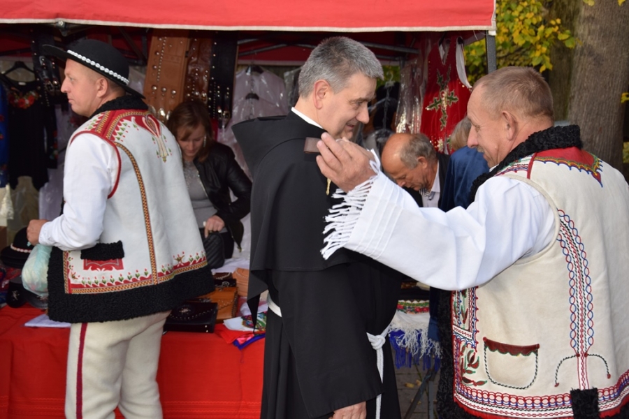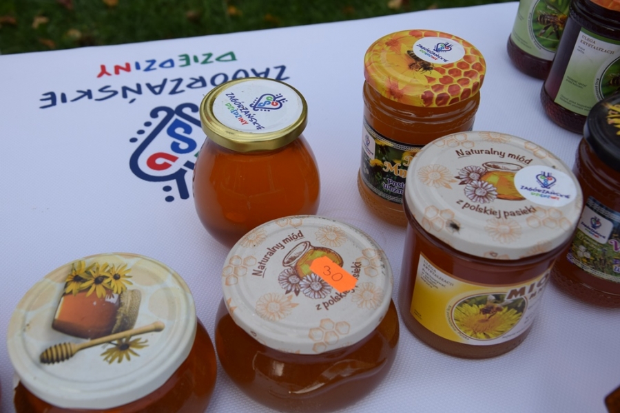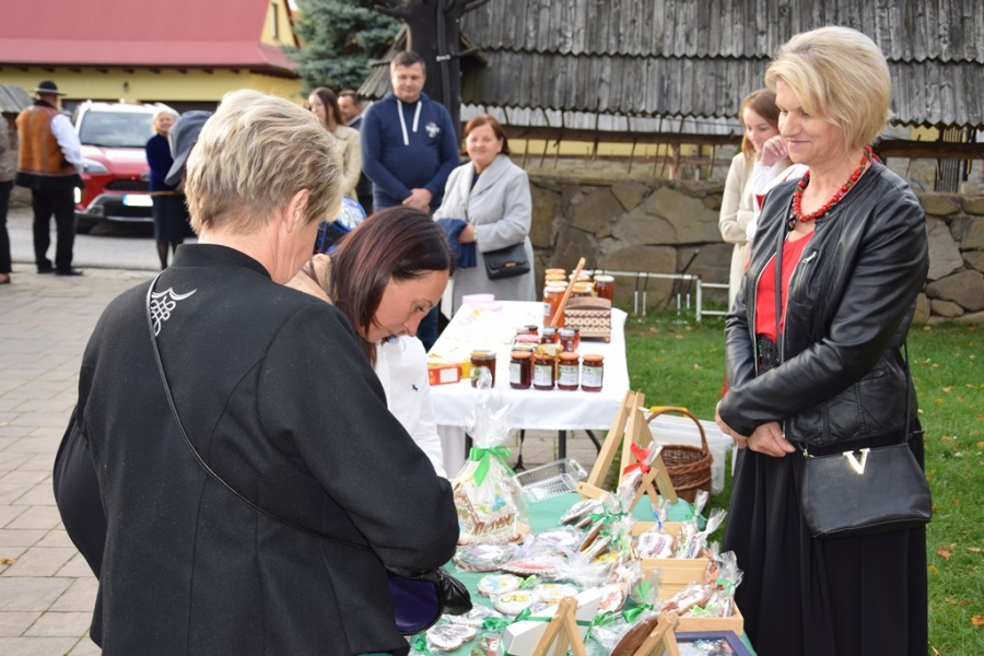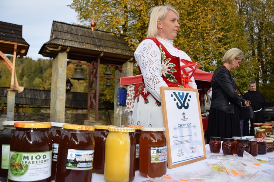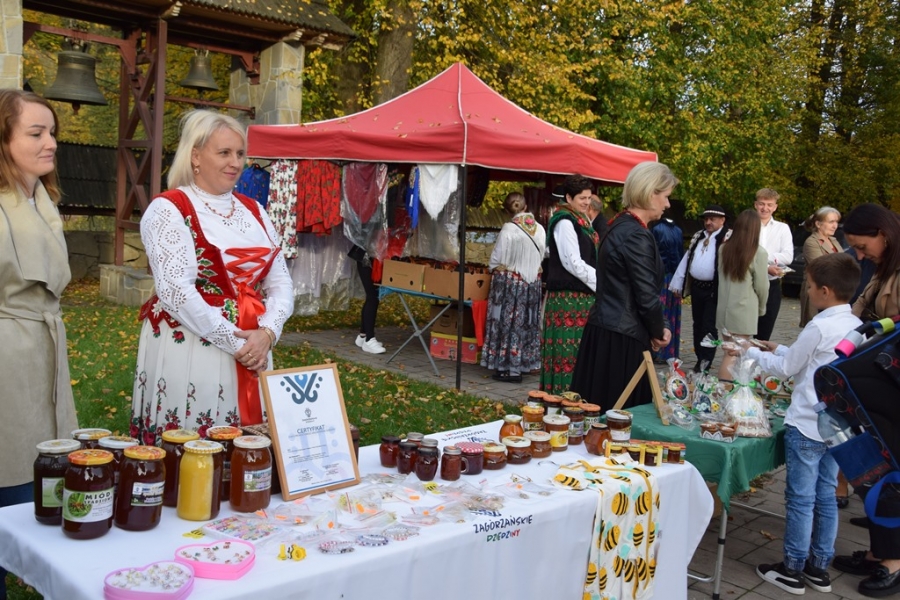 Na placu i tym razem nie zabrakło produktów lokalnych. Na okolicznościowym kiermaszu towarzyszącemu Zagórzańskiej Mszy św. można było kupić miody wyróżnione Znakiem Promocyjnym Zagórzańskie Dziedziny: wielokwiatowy, mniszkowy i ze spadzi liściastej z Pasieki u Piotra Woźniaka z Koniny oraz inne produkty pszczele z tej pasieki. Jakby komu słodkości było mało swoje ozdobne pierniczki misternie zdobione w zagórzańskie i nawiązujące do Ziemi Zagórzańskiej wzory rozłożyła mistrzyni lukrowanych ozdób, Małgorzata Suder. Niezmienna popularnością cieszy się stoisko Hafthan Konina, na którym zaopatrzyć się można w elementy stroju ludowego, aby już za miesiąc pięknie paradzić….