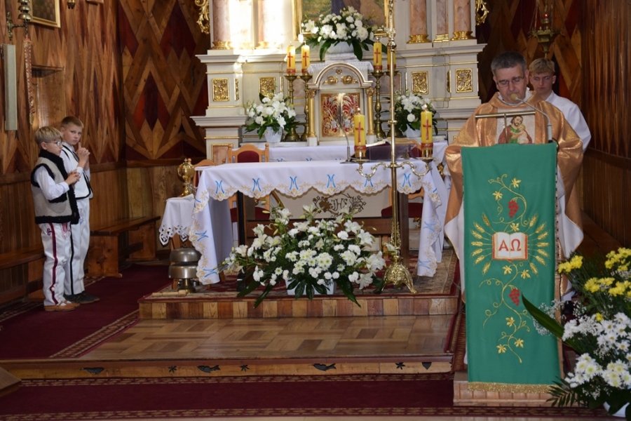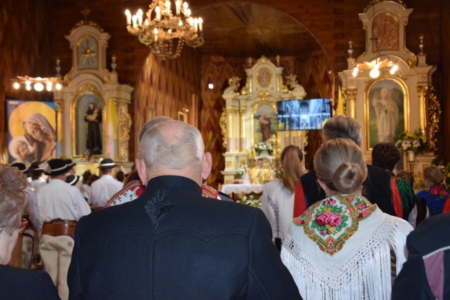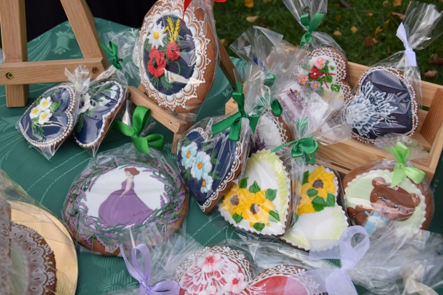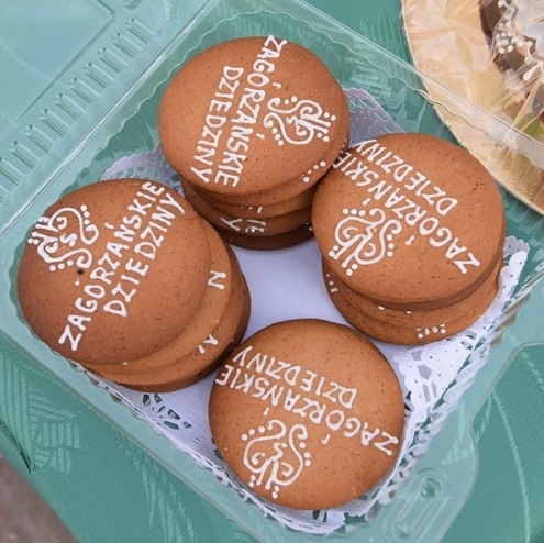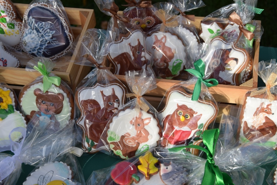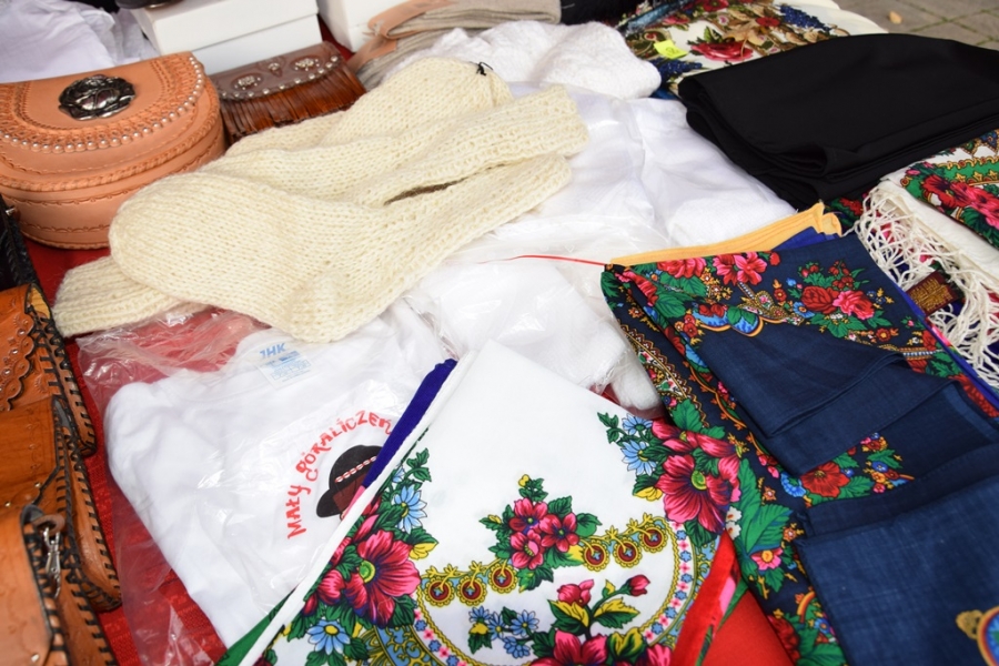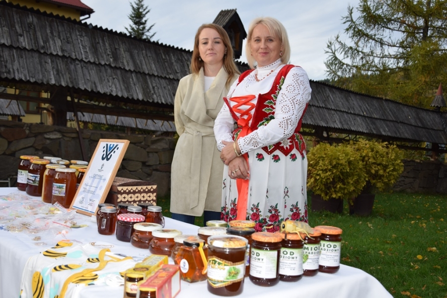 Na placu i tym razem nie zabrakło produktów lokalnych. Na okolicznościowym kiermaszu towarzyszącemu Zagórzańskiej Mszy św. można było kupić miody wyróżnione Znakiem Promocyjnym Zagórzańskie Dziedziny: wielokwiatowy, mniszkowy i ze spadzi liściastej z Pasieki u Piotra Woźniaka z Koniny oraz inne produkty pszczele z tej pasieki. Jakby komu słodkości było mało swoje ozdobne pierniczki misternie zdobione w zagórzańskie i nawiązujące do Ziemi Zagórzańskiej wzory rozłożyła mistrzyni lukrowanych ozdób, Małgorzata Suder. Niezmienna popularnością cieszy się stoisko Hafthan Konina, na którym zaopatrzyć się można w elementy stroju ludowego, aby już za miesiąc pięknie paradzić….