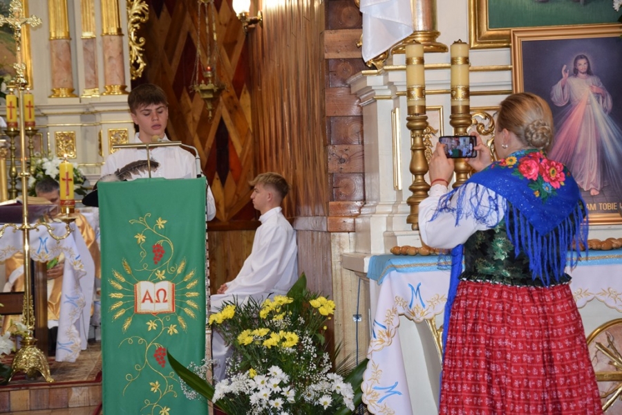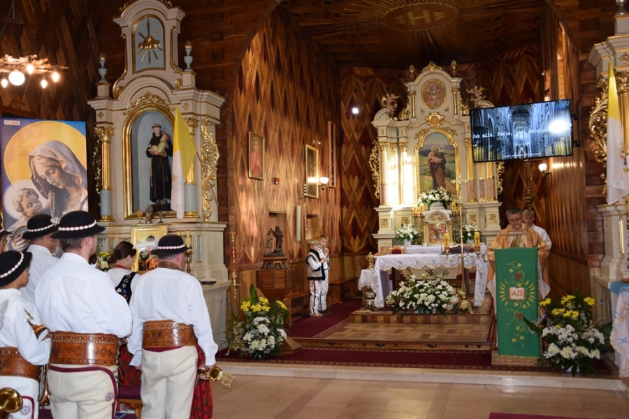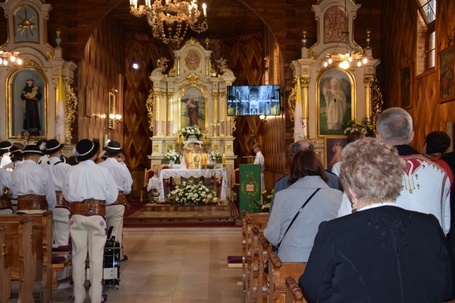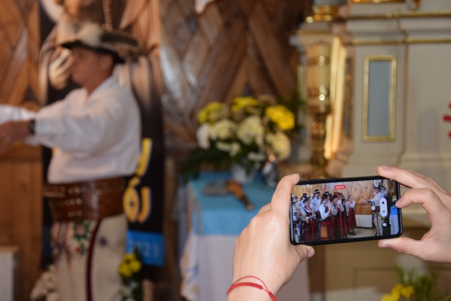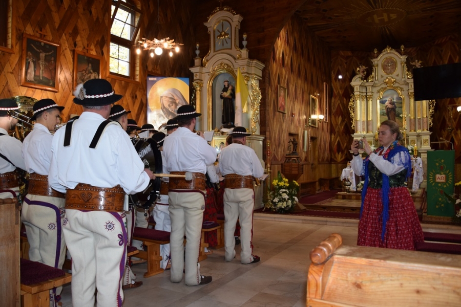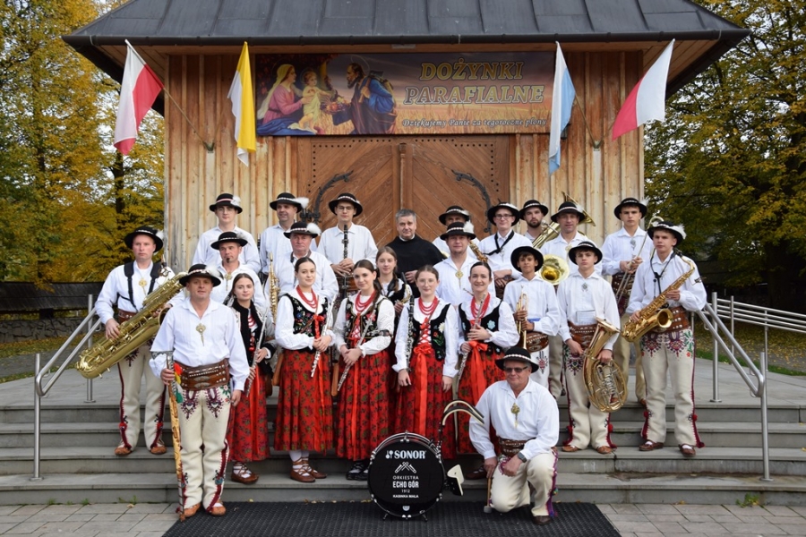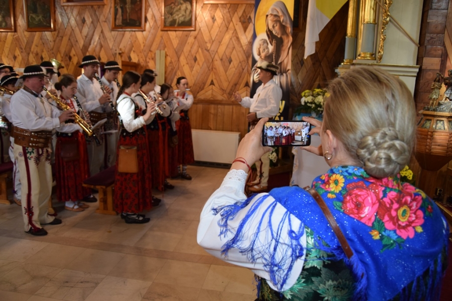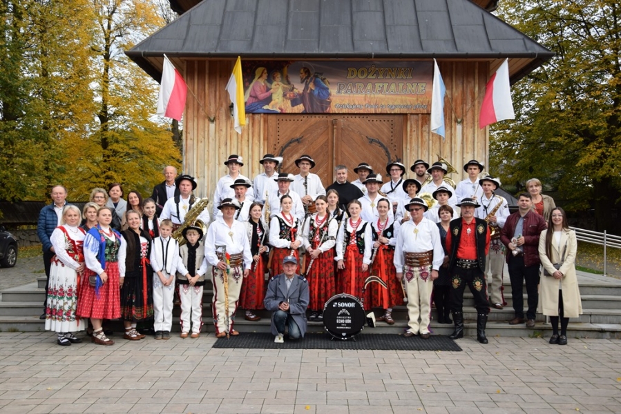 Dopełnieniem refleksji nad tajemnicą Eucharystii stały się dźwięki Orkiestry Dętej „Echo Gór” z Kasinki Małej. W murach świątyni wybrzmiała nastrojowa pieśń „Różańcowa Pani nieba, ziemi” oraz podniosły hymn „Laudate Dominum”. Na zakończenie spotkania orkiestranci dali krótki koncert przed kościołem, prezentując marsze i melodie góralskie.