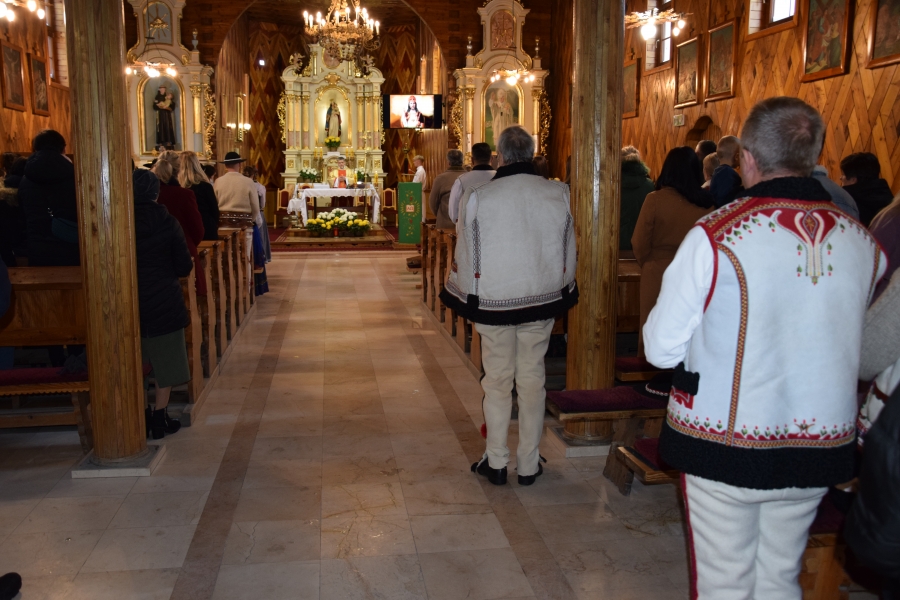 Paradnie i ciepło ubrani zjechali się do Lubomierza, aby podczas Zagórzańskiej Mszy św. dać wyraz swojej tradycji. Niezmiennie do niej nawiązuje w swoich homiliach O. Marek Kustroń, gazda lubomierskiej parafii. Nawołuje do kultywowania tego, czym obdarowali nas przodkowie i przekazywania wartości, w tym wiary naszych ojców, młodym. A tych nigdy na tej szczególnej Eucharystii nie brakuje. Wiernie służbę przy ołtarzu sprawują ministranci, u których dostrzec możemy elementy ludowego stroju Górali Zagórzańskich. Młodzieży, ubranej jak należy, po zagórzańsku, nie brakuje również w zespole, którego nazwa nawiązuje do rzeki malowniczo wijącej się po zagórzańskich miejscowościach. Rozśpiewana na całe gardła Dolina Mszanki, bo o niej mowa, sprawiła wiele radości tym, którzy mimo lekkiej zimowej zawieruchy w ostatnią niedzielę listopada zgromadzili się w drewnianej świątyni usytuowanej malowniczo na pograniczu Gorców i Beskidu Wyspowego. Jakaż to przyjemność słuchać tych mocnych głosów i zdecydowanych pociągnięć smyków… Okolicznościowy koncert, wykonany tym razem w kościele, wzmógł tylko apetyt na więcej i więcej. Niedosyt muzycznych uniesień będzie można nieco zaspokoić jeszcze w tym roku, 30 grudnia – tak, tak! w sylwestra – spotkamy się bowiem znowu w Lubomierzu podczas Zagórzańskiej Mszy św., jak zwykle o 14:00. Muzyczną ucztę zgotuje nam wtedy Związek Podhalan Oddział Lubomierz. Czyż to nie piękny sposób na pożegnanie starego roku? Spokojnie potem zdążymy na nasze wieczorne zabawy…