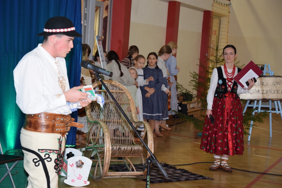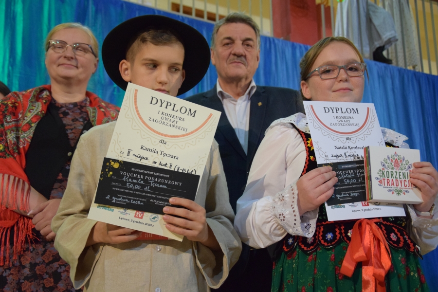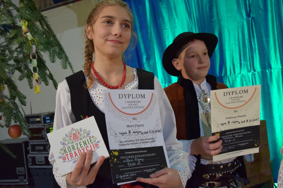 Kategorie konkursowe zgromadziły zarówno małych, jak i dorosłych. Najmłodsze pokolenie reprezentował czteroletni Franciszek Gawronek recytujący słowa „Konika”, tradycyjnej nuty zagórzańskiej. Komisja usłyszała także śpiew dziewczynek - Emilii Nowak oraz Aleksandry Dziedziny z Łostówki - w utworze „Hej grojze mi muzycko”, jak też „Paso jo se paso” w wykonaniu Jagody Farganus. Nie zabrakło i humorystycznych prezentacji, które dzieci opowiadały z swadą i zaangażowaniem. Było o kowalu, co diabłu duszę zaprzedał, o automobilu, dwóch braciach i biedzie, a i o tym „Jak na Koninie Franek Smrecok wygnoł stracha” autorstwa Jana Miechury z Podobina.