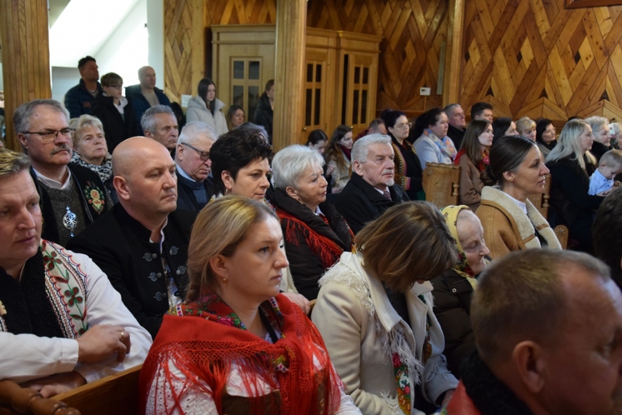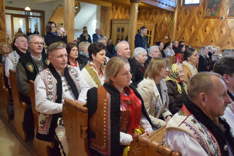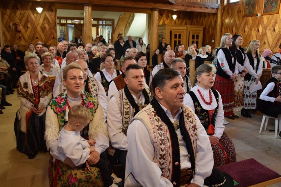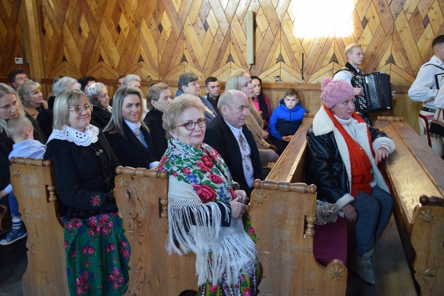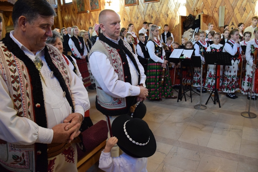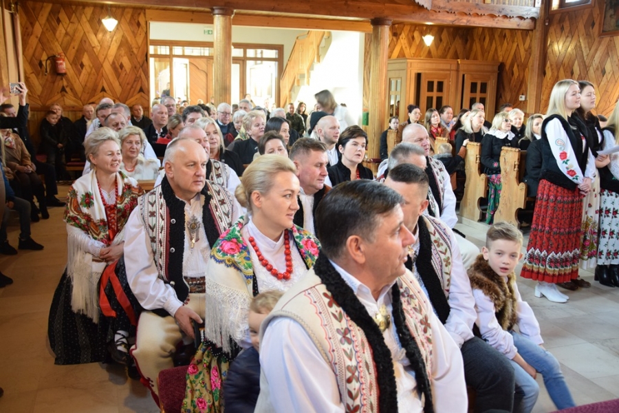 Smycki spod Kudłonia wypełniły swoimi dźwiękami wnętrze świątyni i poruszyły niejedną strunę w sercach uczestników uroczystości. Odświętnie ubrani Zagórzanie zadbali również o aktywny udział w liturgii słowa i sprawili swoimi barwnymi strojami nie lada radość gościom z Jasła, Dobczyc, Krakowa i Katowic, których wśród tej licznej rodziny nie zabrakło!
