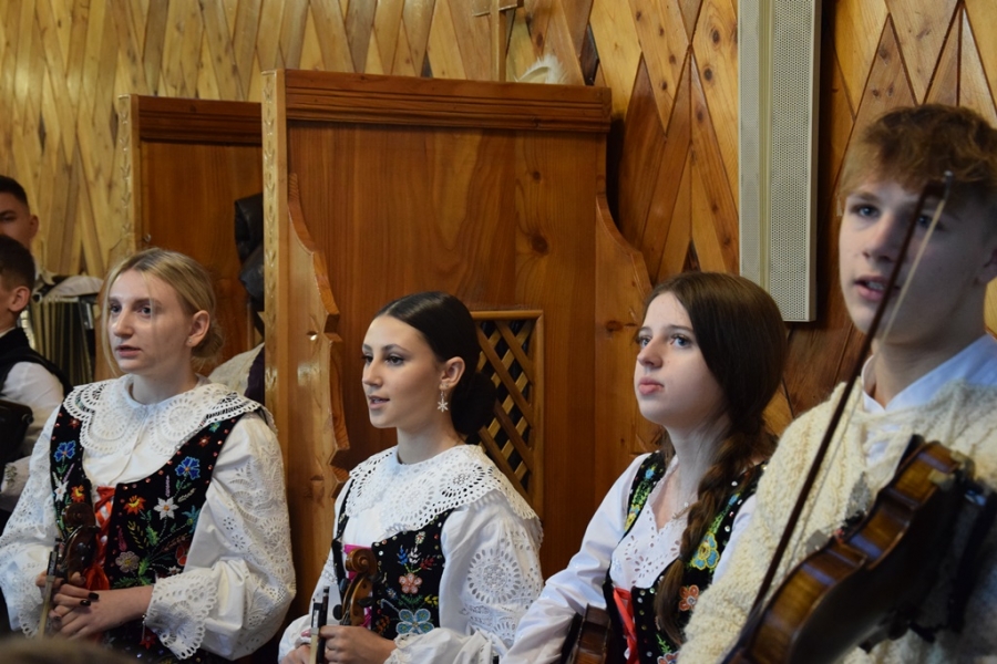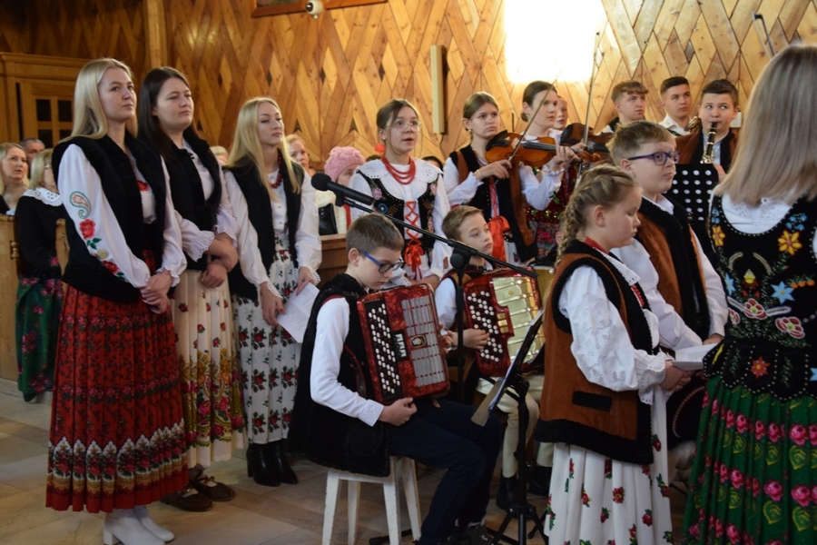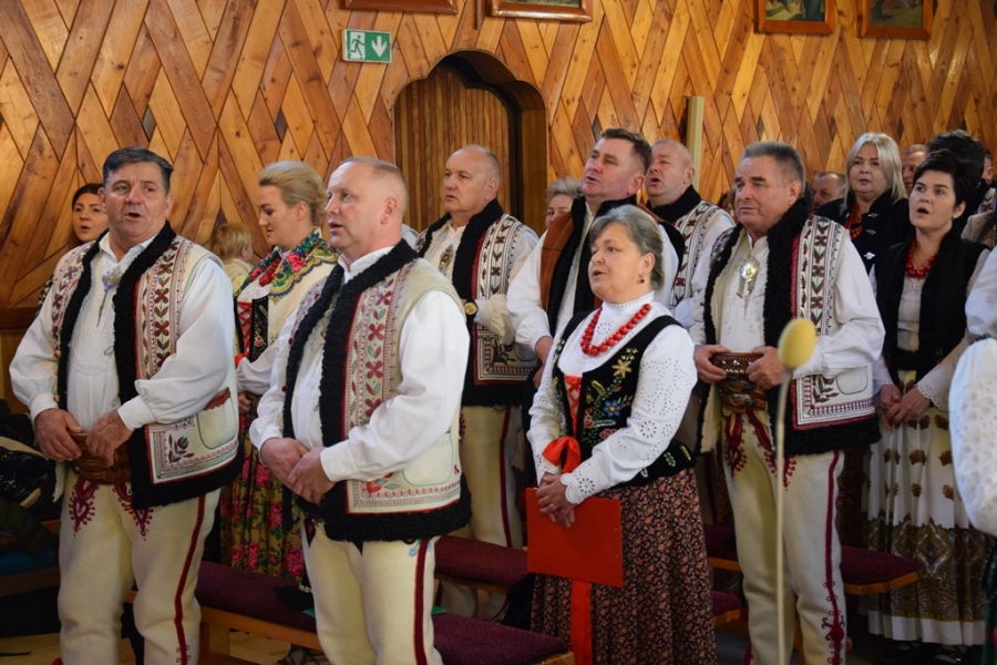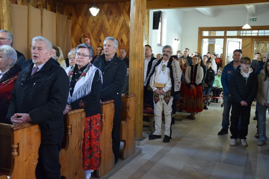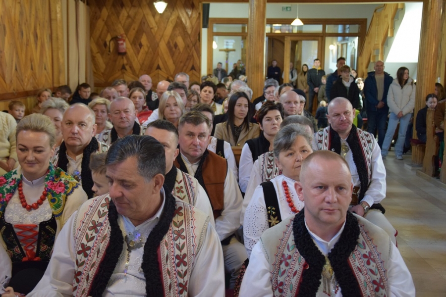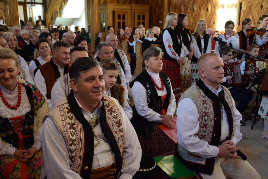 Smycki spod Kudłonia wypełniły swoimi dźwiękami wnętrze świątyni i poruszyły niejedną strunę w sercach uczestników uroczystości. Odświętnie ubrani Zagórzanie zadbali również o aktywny udział w liturgii słowa i sprawili swoimi barwnymi strojami nie lada radość gościom z Jasła, Dobczyc, Krakowa i Katowic, których wśród tej licznej rodziny nie zabrakło!