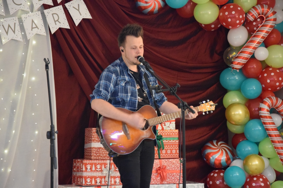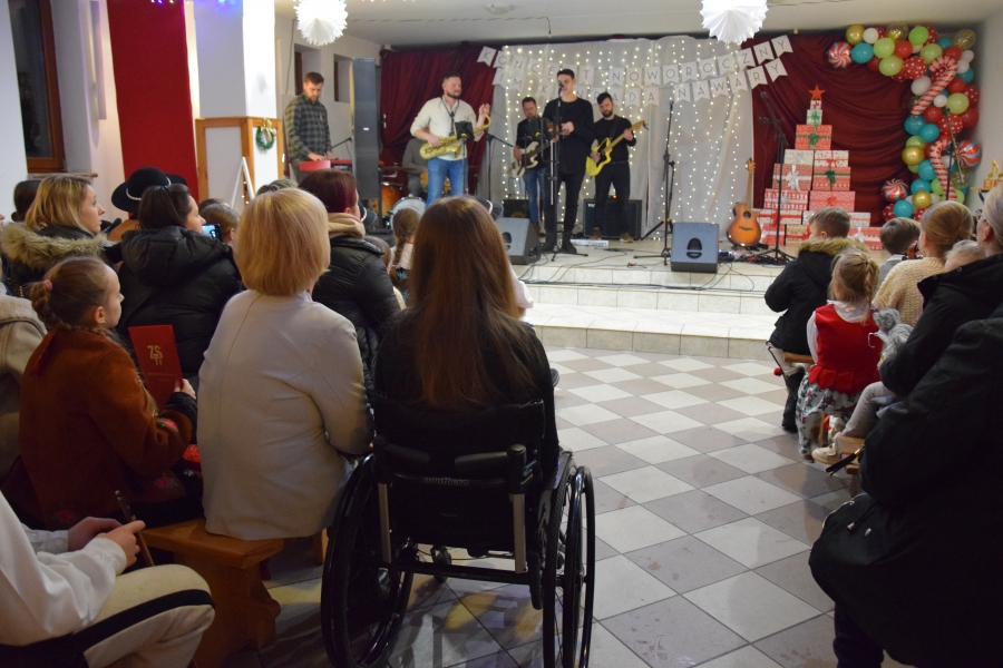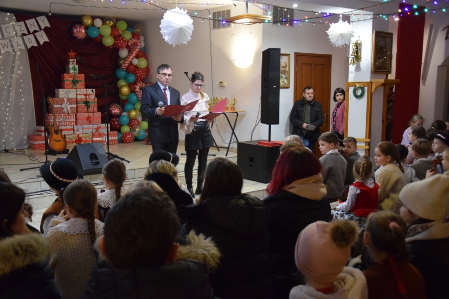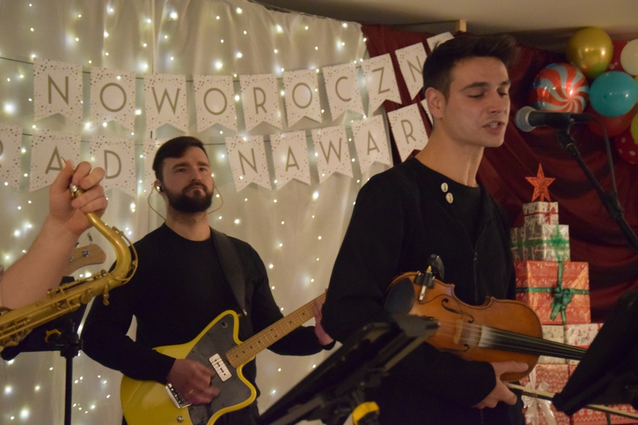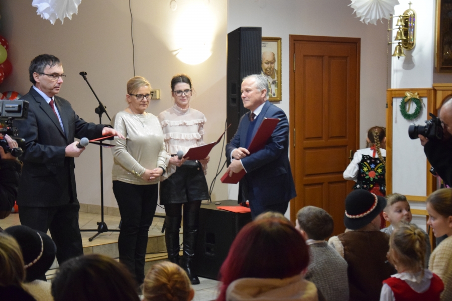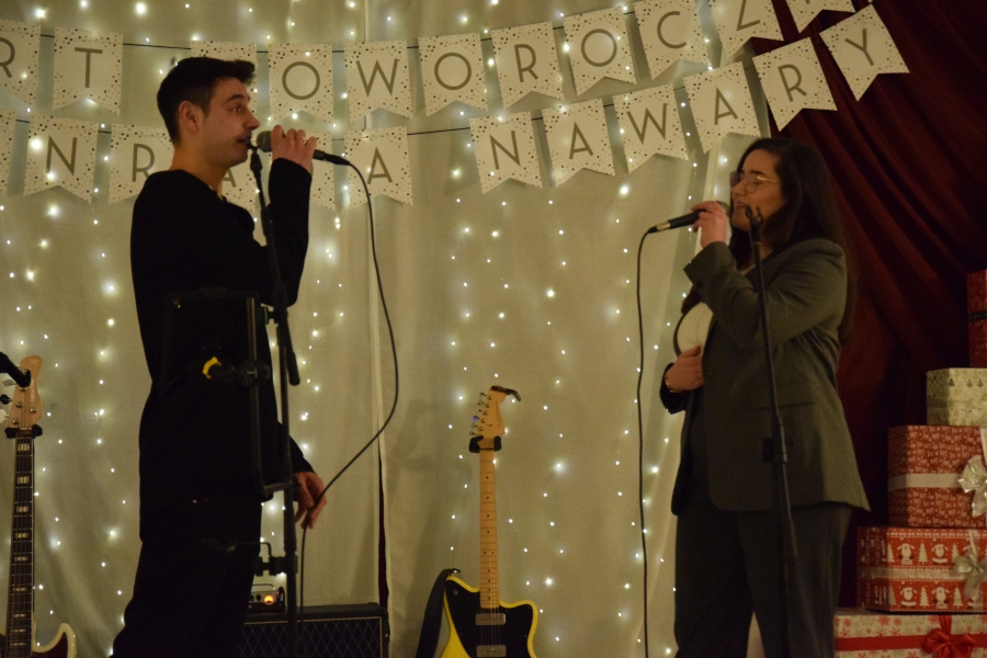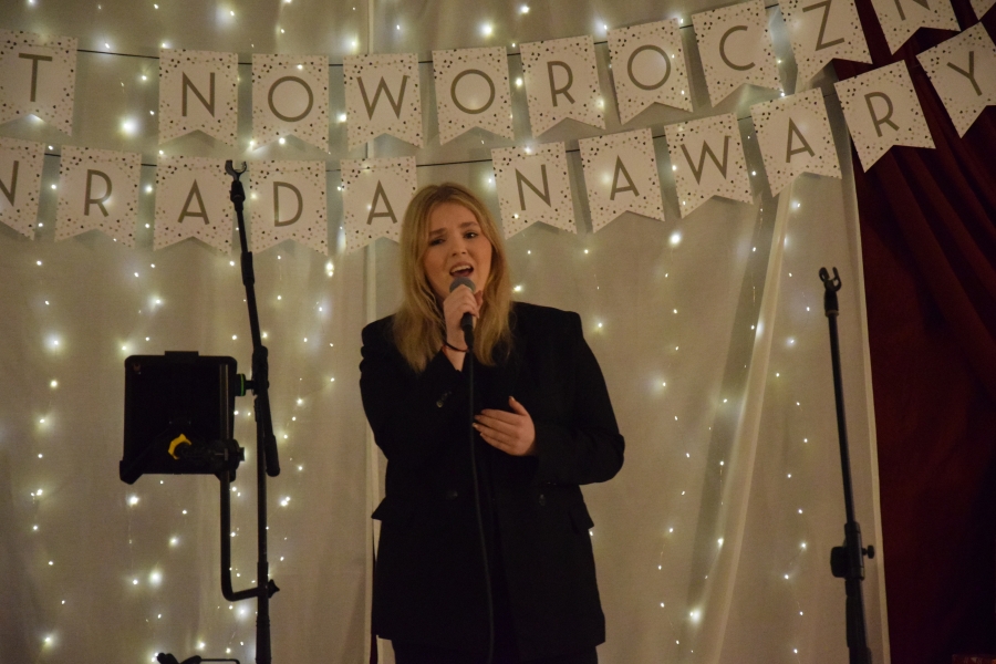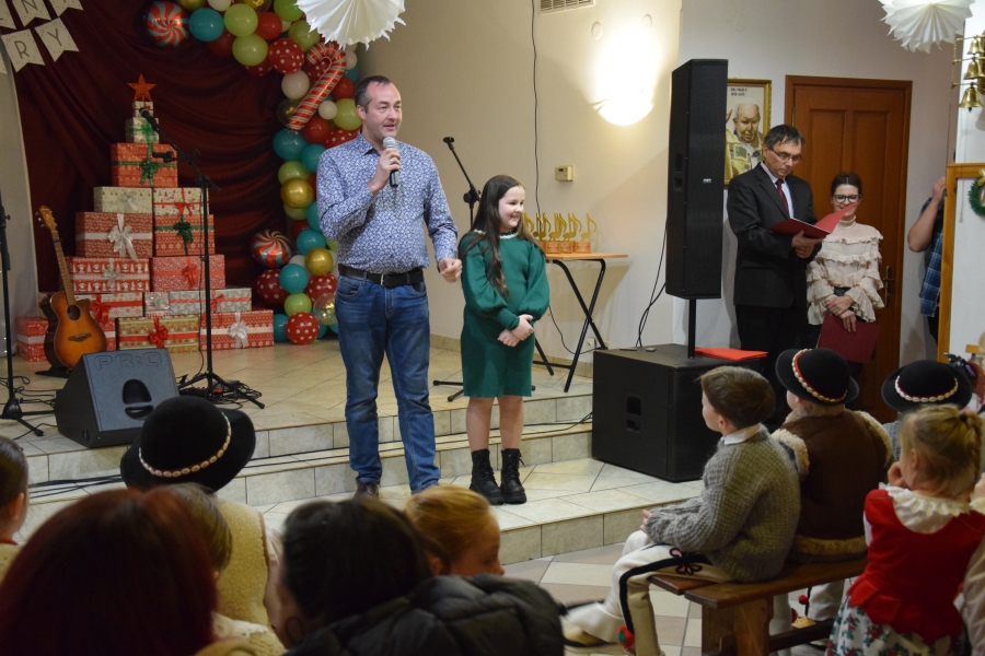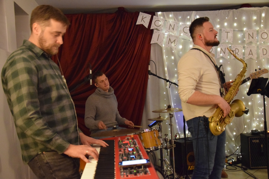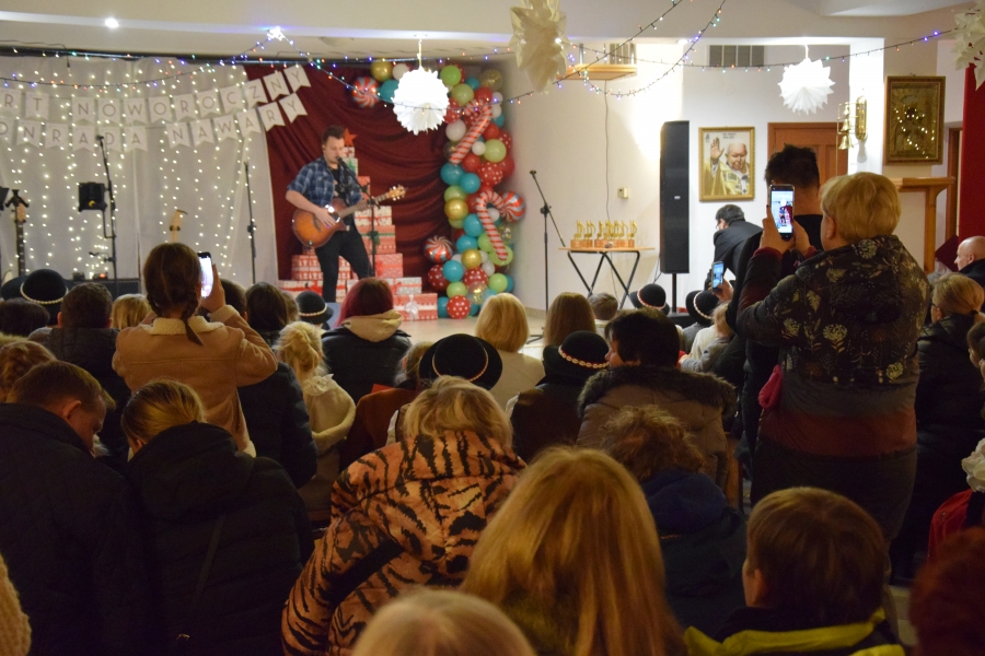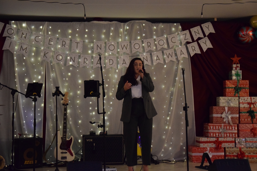 Następnym punktem muzycznego programu był koncert noworoczny i przegląd zespołów muzycznych w sali pod plebanią, któremu od 2020 roku patronuje Konrad Nawara, uzdolniony muzycznie absolwent szkoły. Ten Zagórzanin, któremu muzyka w duszy grała, rósł na naszych oczach, rozwijał swoje talenty i popularyzował kulturę ludową regionu, najpierw w kapeli „Olszowianie”, a potem również w reaktywowanym zespole regionalnym o tej samej nazwie. Do dzisiaj widzimy go w stroju ludowym, ze skrzypcami w rękach i ze śpiewem na ustach. Kilka lat temu zjednoczył nas wokół siebie, pokazał jak dzielić się swoim dobrem z innymi i udowodnił, że chcieć to móc. Pozostawił po sobie niezapisany testament, który wypełnić mają ludzie dotknięci chorobami. Chciał, aby nikt nigdy nie zawahał się walczyć o siebie; żeby chorzy się nie poddawali i odważnie podejmowali nowatorskie terapie, aby wykorzystali każdą szansę na powrót do zdrowia. I taką szansę na poprawę zdrowia potrzebującym tego Zagórzanom stworzyła społeczność szkolna mszańskiego „Instalu”, wespół z rodziną Konrada. Noworoczne koncerty, które początkowo odbywały się w szkolnych murach, połączono z bardzo wzniosłym przesłaniem: jest to jednocześnie akcja charytatywna i zbiórka pieniężna na wybrany cel. W tym roku postanowiono, że będzie to formą wsparcia Magdy Klimek z Kasinki Małej, absolwentki szkoły, która przechodzi kosztowną rehabilitację. W ten sposób licznie zgromadzona publiczność mogła przekazać datki do puszek, które krążyły na sali.