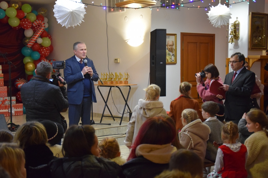 Nie zabrakło podziękowań, które wręczali prowadzący koncert nauczyciele: Agnieszka Biel-Habieda i Bogdan Schmidt. Każdy występujący na scenie otrzymał podziękowanie i pamiątkową statuetkę. Nie zapomniano również o smakowitym wsparciu, które uczestnikom koncertu zapewniły panie z Kasinki Małej – KG Paradne Gosposie. Podziękowania do skupionej wokół szkoły społeczności oraz wszystkich ludzi dobrej woli skierował również Adam Nieckula, tata Julki, (wspierany przez druga swoją córę – Olusię) dla której zorganizowano zbiórkę podczas ubiegłorocznego koncertu. Cieszymy się razem z nim z dobrych wiadomości o stanie zdrowia Julii. Wzruszającą chwilą było uhonorowanie Marii i Piotra Nawarów, rodziców Konrada, Lilią św. Antoniego, która jest najważniejszym wyróżnieniem przyznawanym przyjaciołom szkoły.