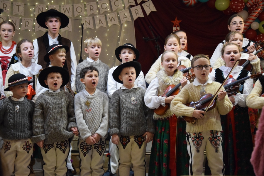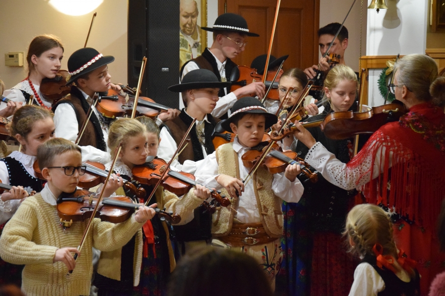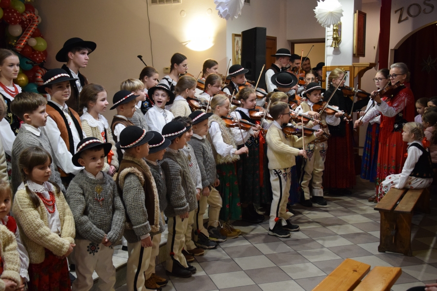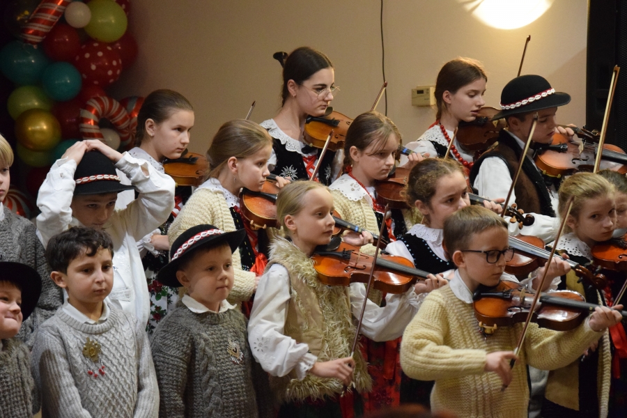 Duże emocje wzbudził występ zespołu regionalnego „Olszowianie”, którym kieruje Wioletta Kraus, gdyż najmłodsi artyści skradli serca widowni. Ich zaangażowanie w wykonanie każdego utworu to duma dla obserwujących występ rodziców, ale też dla zespołu. Wielkie brawa! Kapela Kościelnioki, również z Olszówki (a wszyscy z nich to uczniowie ZSTI – trójka absolwentów, najmłodsza, Marianna, jeszcze uczennica) to już doświadczeni stażem muzyczni „wyjadacze”. A nasze, zagórzańskie serca, jeszcze bardziej urosły z dumy, bo to nasza „topowa” reprezentacja marki lokalnej ze Stowarzyszenia Miłośników Kultury Góralskiej Pod Cyrlom.
