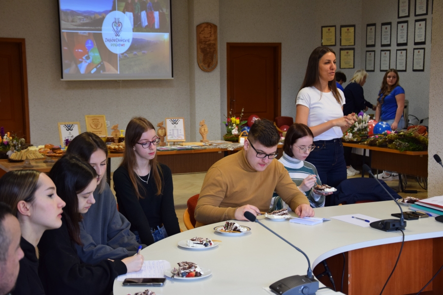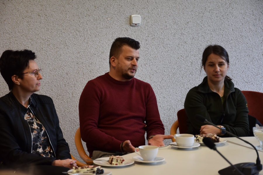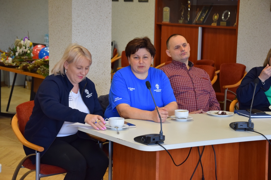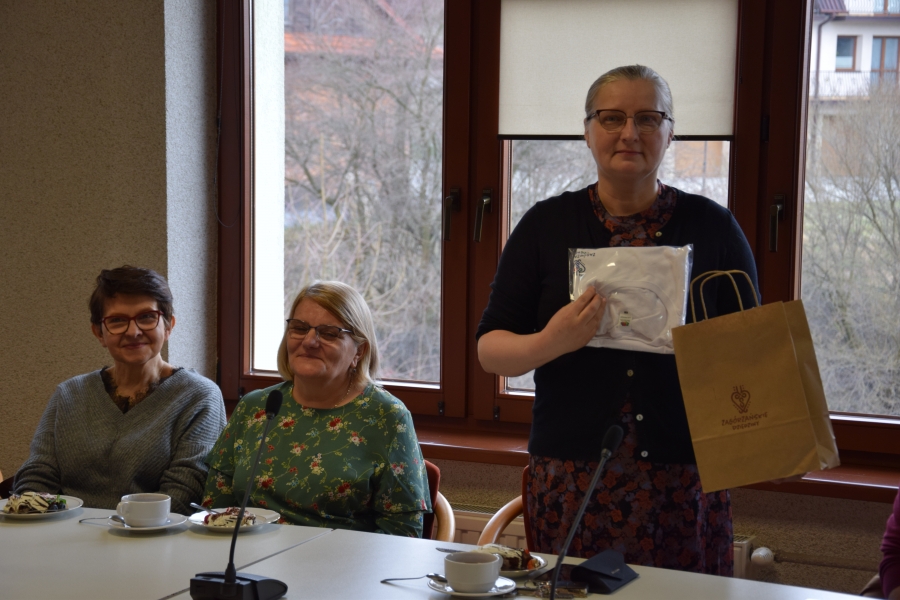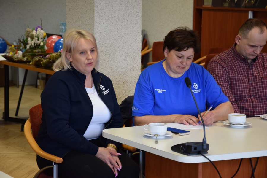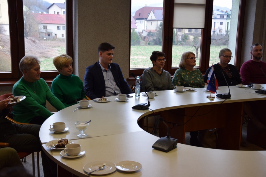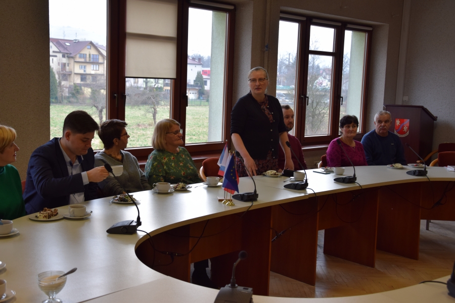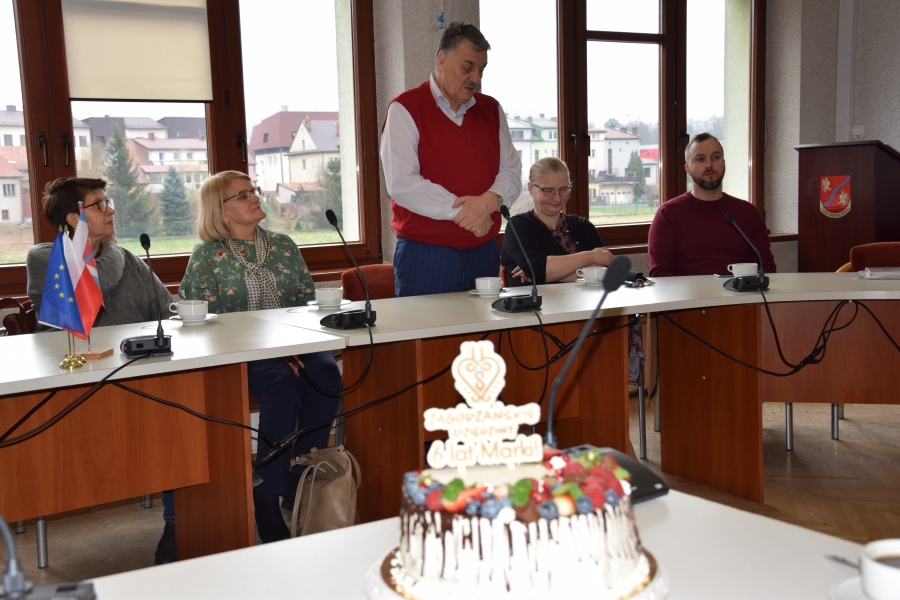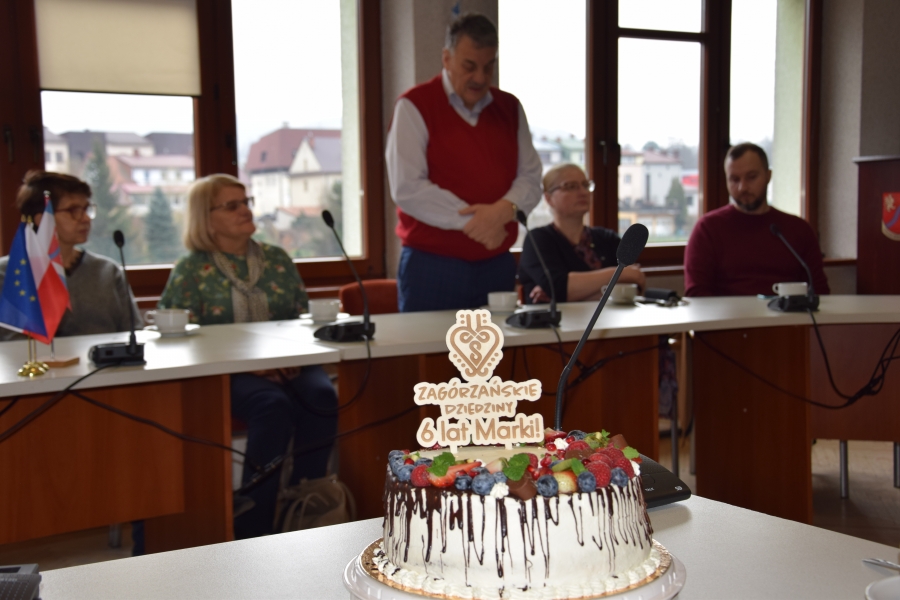 Spotkanie otworzył inicjator i koordynator marki, Bolesław Żaba; przywitał liczne grono, w którym można było dostrzec nowe twarze. Wójt Gminy Mszana Dolna przypomniał krótko wszystkie działania, które doprowadziły nas do tej małej uroczystości. Niespodziankę, w postaci pięknie ozdobionego i pysznego! tortu, wszystkim jubilatom zrobiło niezawodne Stowarzyszenie Miłośników Kultury Góralskiej Pod Cyrlom z Olszówki, które „po rodzinie” ma uzdolnionych cukierniczo członków również zaangażowanych w proces kreacji marki lokalnej na Ziemi Zagórzańskiej. Spotkanie w przeddzień urodzin Zagórzańskich Dziedzin (te wypadają dokładnie 8 marca), stało się okazją do prezentacji naszych „dziedzin”. Grono użytkowników Znaku Promocyjnego Zagórzańskie Dziedziny oraz kreatorów poszerzyło się bowiem w ostatnim czasie. Pierwsze lody przełamała Burmistrz Miasta Mszana Dolna, Anna Pękała, która podkreśliła wspólne partnerstwo i działania na rzecz promocji regionu, w tym organizację m.in. jarmarków świątecznych. Okazało się, że Pani Burmistrz również aktywnie uczestniczy w dziedzinnych konkursach i przy miłej okazji spotkania otrzymała nagrodę za prawidłową odpowiedź na nasze pytanie dot. witraża nad drzwiami mszańskiej fary. „Starzy” dziedzinni wyjadacze, czyli użytkownicy marki z ostatnich dwóch lat, dobrze wiedzą, jak ważna jest wspólna identyfikacja wizualna, stąd wokół stołu królowały niebieskie, zielone i białe koszulki z naszą markową parzenicą. Jednak oczy skierowaliśmy na nowe twarze w tym towarzystwie; ciekawi bardzo wsłuchiwaliśmy się w prezentacje osób, które po raz pierwszy pojawiły się na spotkaniu. Tutaj „worek rozwiązał” Piotr Miechur z Podobina, który prowadzi pasiekę, a swojej ofercie ma miody spadziowe. Doceniamy mocno obecność Pelagiusza Swata z mszańskiej piekarni SWAT – którą wszyscy kojarzą jako dawną piekarnię GS z tradycjami i doskonałym pieczywem. Okazało się, że nasze pomysły na dalszą współpracę idą tym samym torem, a propozycja przedstawiona na spotkaniu przez właściciela sklepu spożywczego SWAT w Sezamie jest wprost wyjęta z naszych planów! Jak najszybciej chcemy podjąć wspólne kroki w celu jej realizacji, aby niedługo przedstawić Wam nową dziedzinną ofertę. Światło dzienne mogą również ujrzeć nasze pomysły na tradycyjne wypieki, takie jak kołacze i podpłomyki… Jak to mówią specjaliści: „z tej mąki będzie chleb”. Zrobiliśmy Wam smaki? To jeszcze nie koniec!