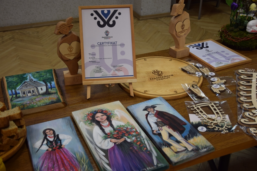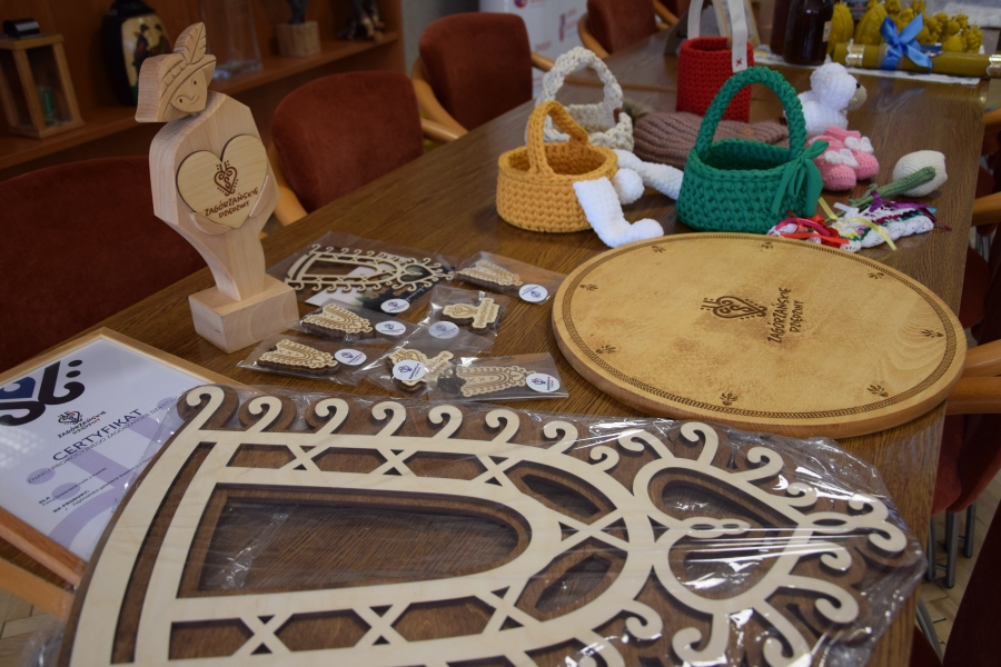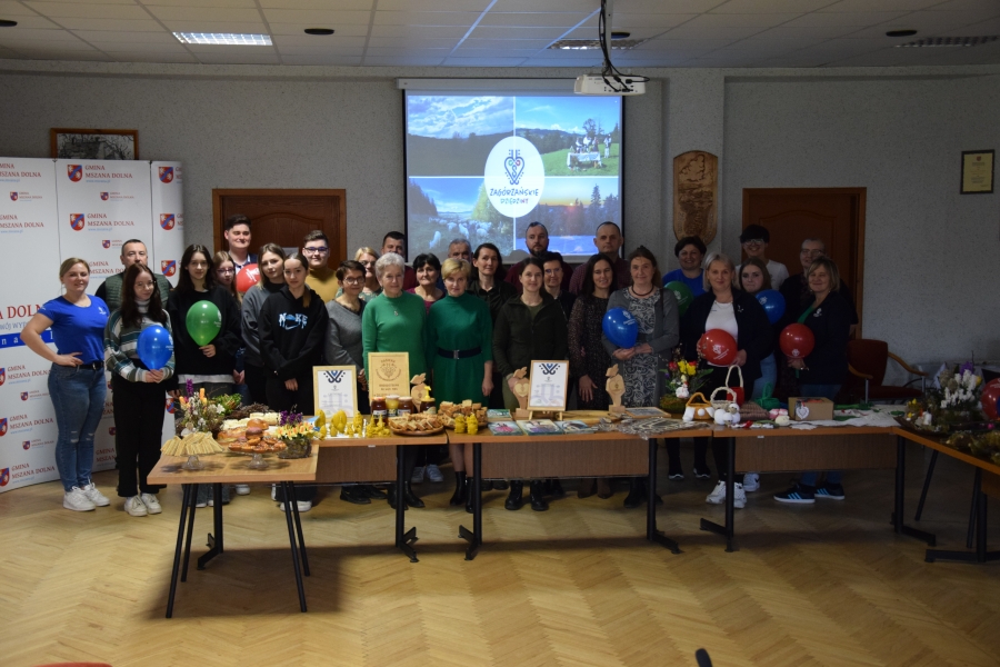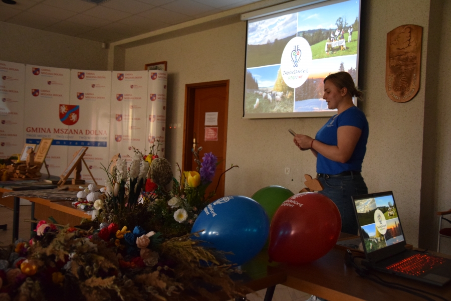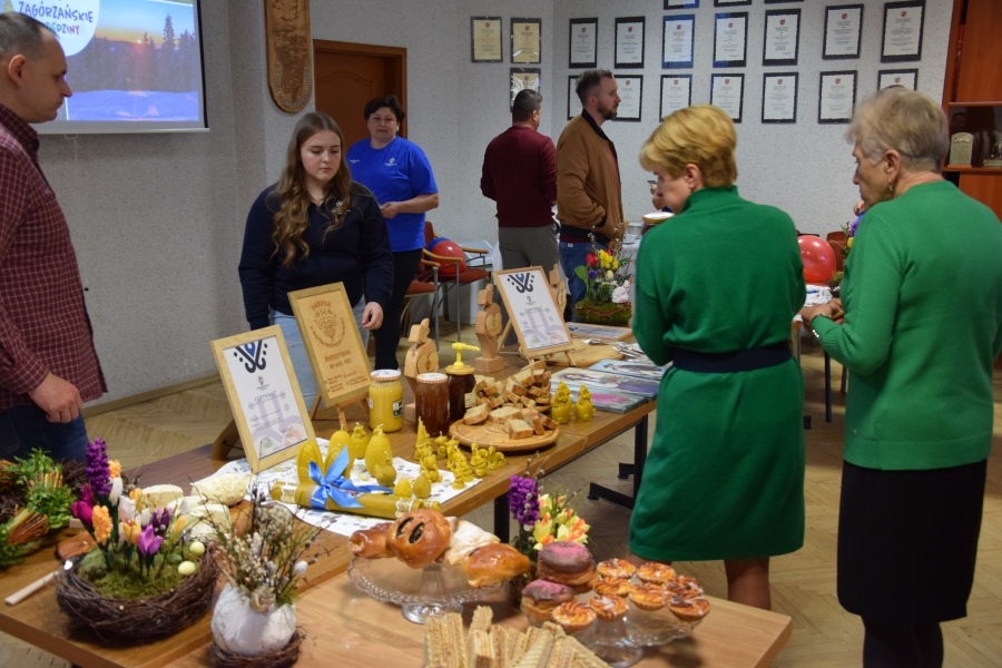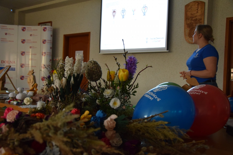 Okazuje się, że Zagórzańskie Dziedziny poszerzają swoje granice działania; do naszego zespołu dołączyła koronczarka, Zofia Piętoń z Półrzeczek, która swój debiut miała na Zagórzańskim Jarmarku Bożonarodzeniowym, gdzie po raz pierwszy prezentowała swoje prace. Podobny przypadek debiutu ma za sobą Maria Nawara z Olszówki, która (jako pierwsza w tym roku) zgłosiła się na Zagórzański Jarmark Wielkanocny z pięknymi ekostroikami i wiankami. Na spotkanie do Urzędu Gminy przyjechała z mężem Janem – i – tu niespodzianka dla wszystkich - okazało się, że mamy do czynienia z prawdziwym specjalistą w dziedzinie tradycyjnego, zagórzańskiego kolędowania! Nie wiemy tylko jak im się udało przywieźć te wszystkie rzeczy, ale stoły zapełniły się przepięknymi stroikami, palmami i wiankami z wiosennymi motywami. Prosto spod Lubonia Wielkiego przyjechał do nas Adam Mydlarz, właściciel „Wisilasu nad Sercowym Potokiem” – czyli nowoczesnej wersji kampingu w naturze. Glamping rozpowszechnia się powoli w różnych formach, w tym przypadku jest to forma namiotów przytwierdzonych do pni drzewa. Okazuje się, że i u nas, w takich leśnych kokonach można spać oddając się całkowitemu relaksowi i obcowaniu z przyrodą. I co najważniejsze, bardzo niedaleko!